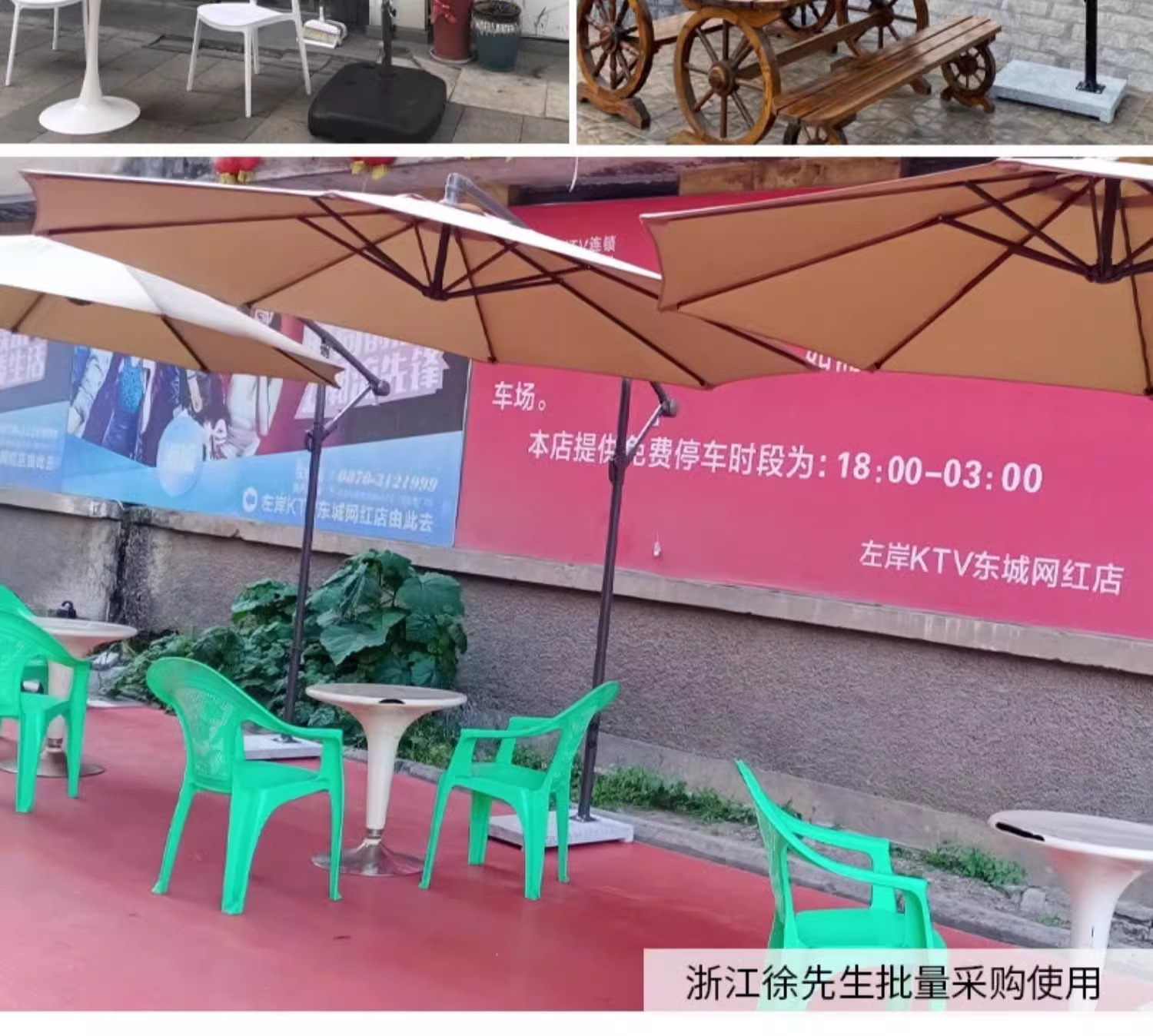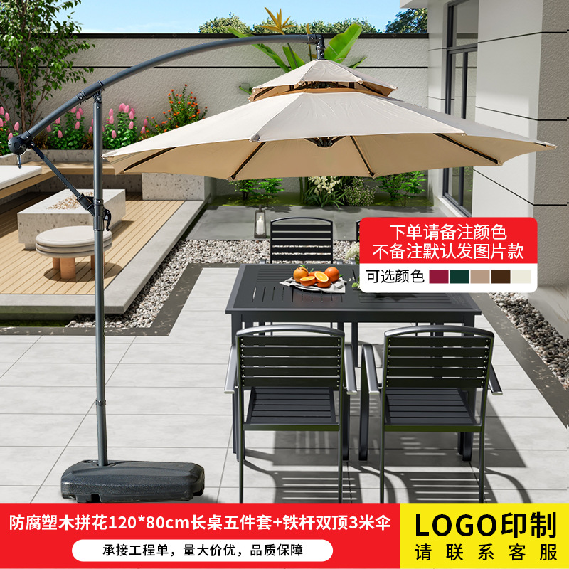 • 부식 방지 플라스틱 나무 쪽모이 세공 120*80cm 긴 테이블 5종 세트 + 철제 이중 상판 3m 우산