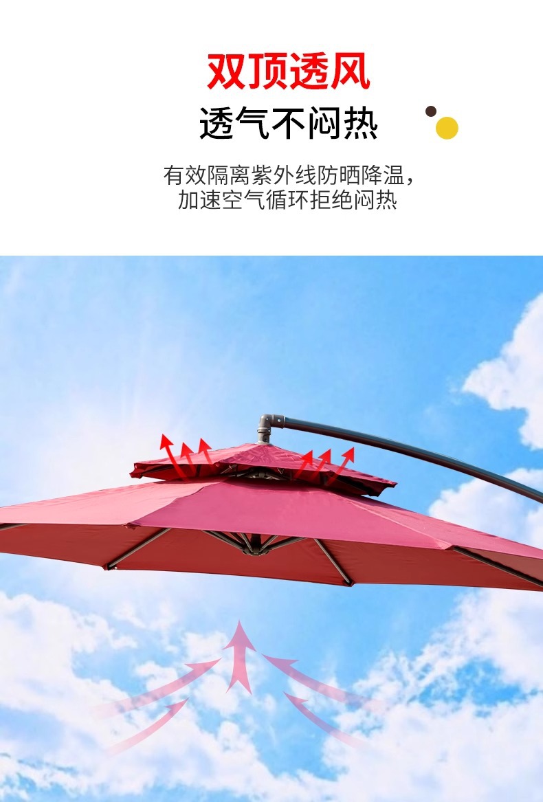 • 철제 이중 지붕 - 직경 3m 바나나 우산 + 80kg 물과 모래 채우기 베이스