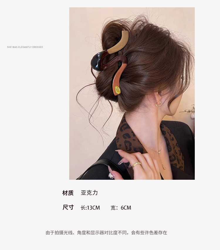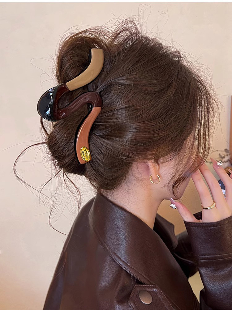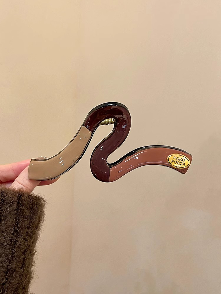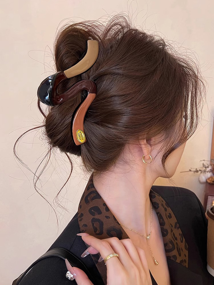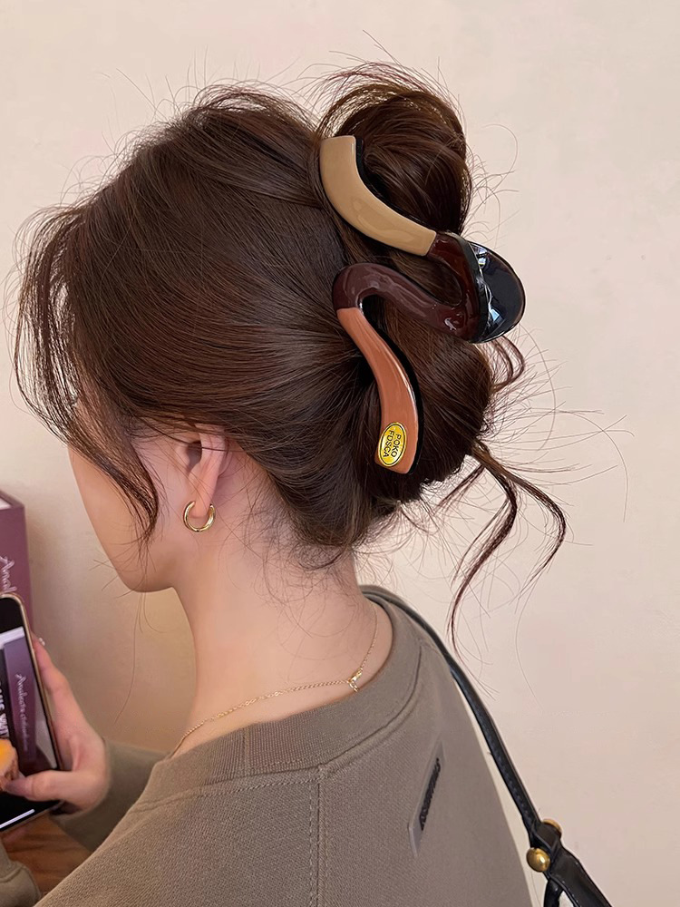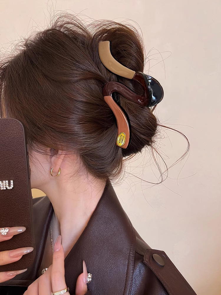 새로운 Maillard 대형 명암 컬러 웨이브 잡아 클립 여성용 머리 고급 머리 대형 헤어 상어 클립 헤어 클립