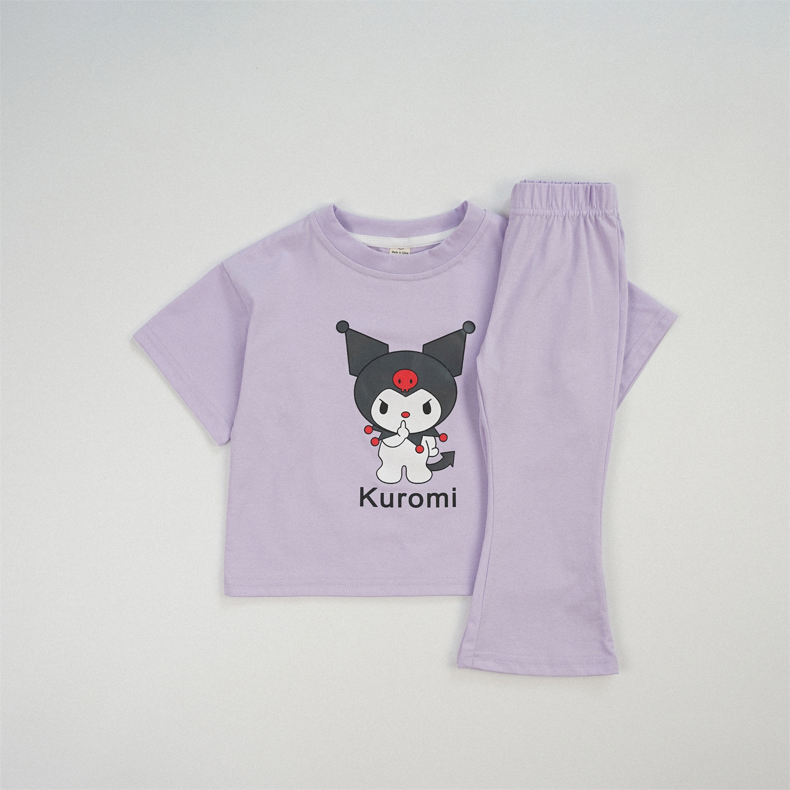 한국 스타일 여름 새로운 중소 소녀 아기 도파민 만화 귀여운 티셔츠 인 경적 바지 두 조각 세트