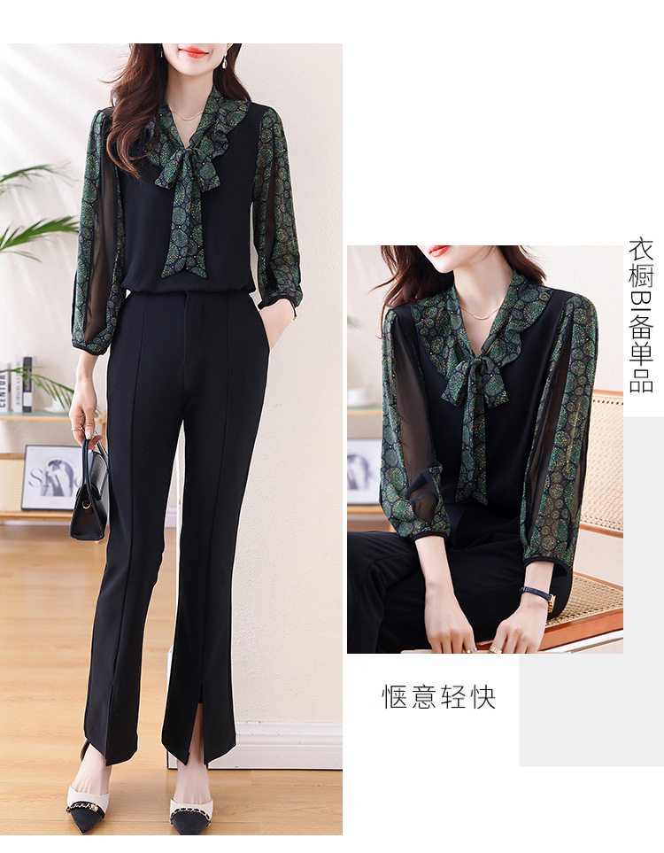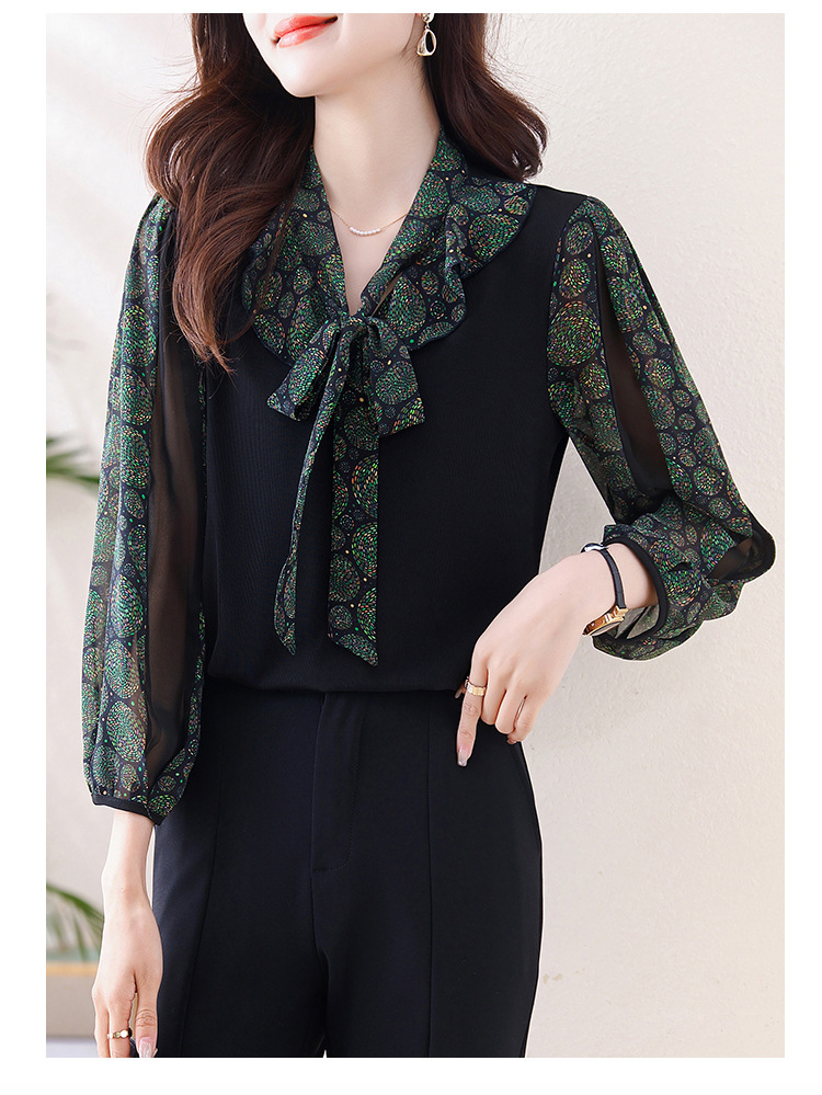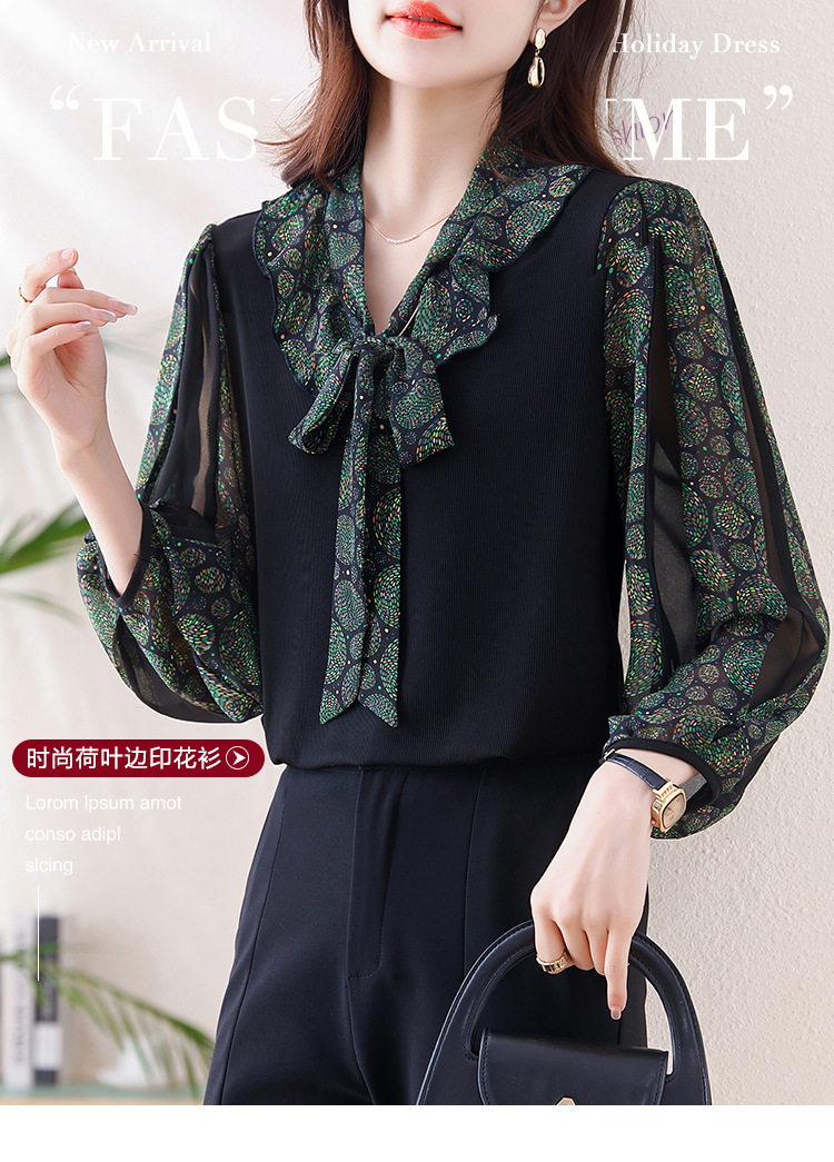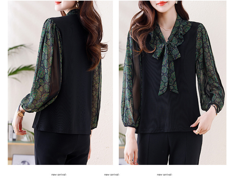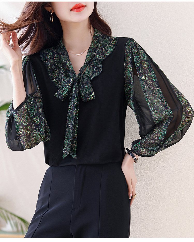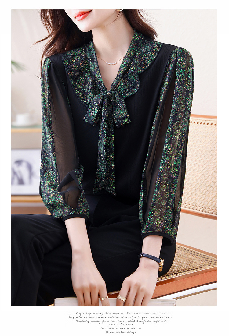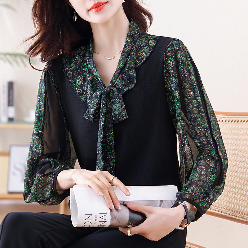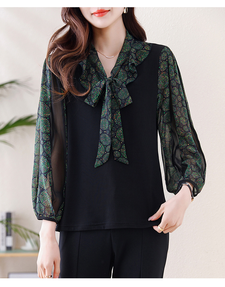 프랑스 패션 스트랩 보우 세련된 가짜 투피스 셔츠 2025 새로운 디자인 에이지 감소 탑 쉬폰 셔츠스토어 가기