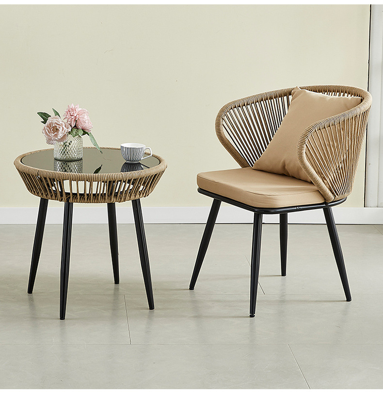 정원 레저용 등받이가 있는 등나무 의자, 레스토랑 테라스 발코니 야외용 의자, 작은 정원 카페용 테이블과 의자 세트스토어 가기