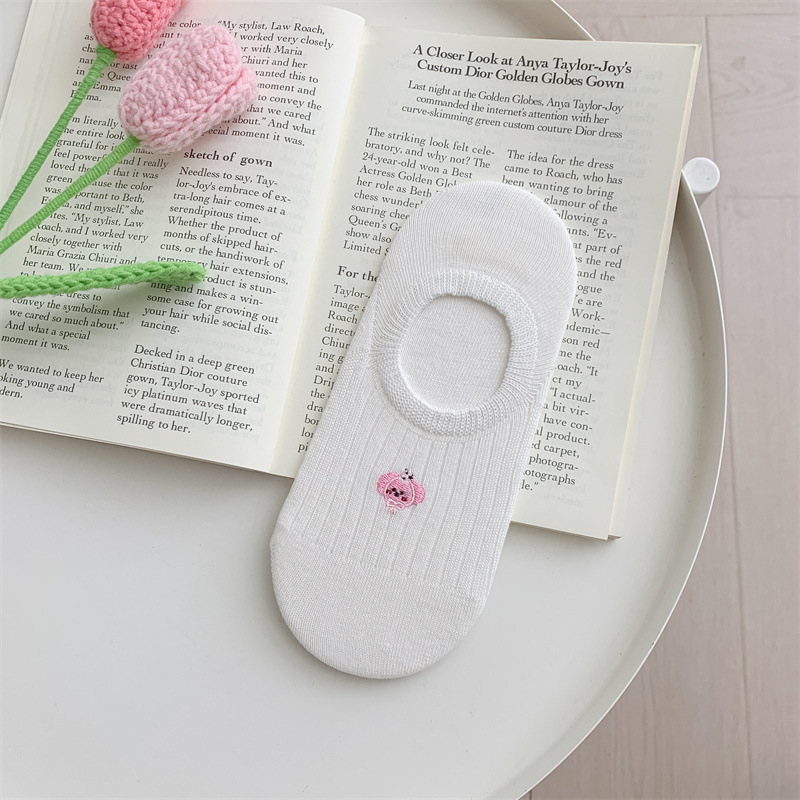 봄 얇은 보트 양말 여성의 미끄럼 방지 면화 양말 여성의 얕은 양말 달콤한 만화 자수 보이지 않는 양말스토어 가기