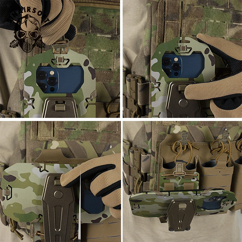 战术旋转手机支架背心molle安装胸挂折叠导航板手机载体板导航器