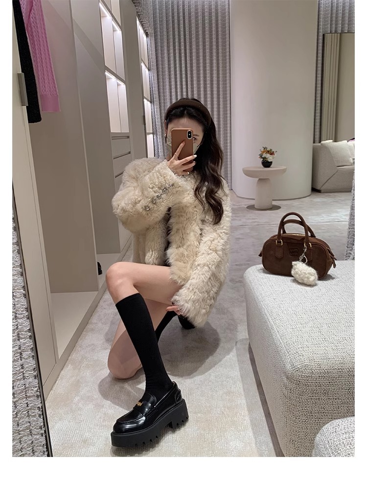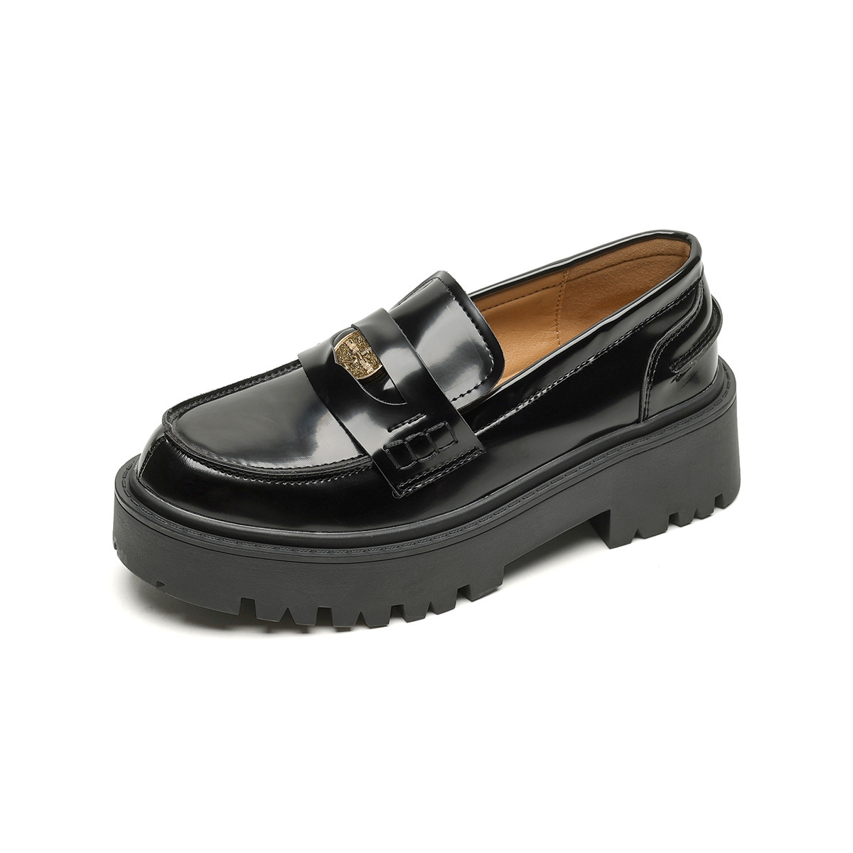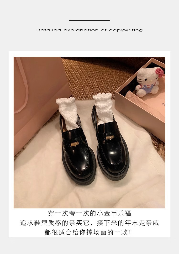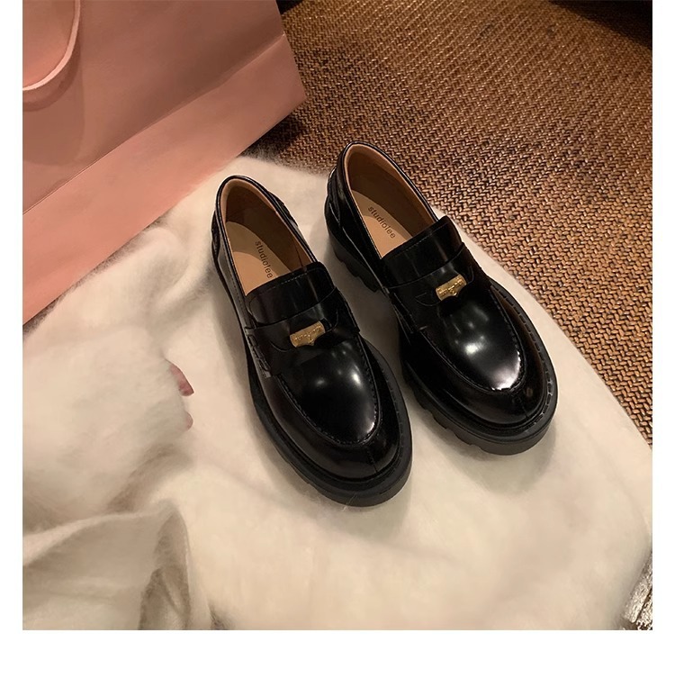 비싼 작은 금화 라운드 발가락 두꺼운 슬립 온 로퍼 여성 영국 스타일 두꺼운 바닥 레트로 작은 가죽 신발