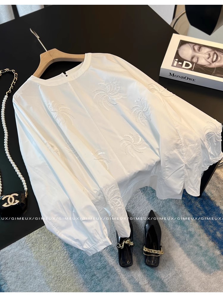 봄 하이 엔드 Guofeng Top 2025 여성용 느슨한 셔츠와 함께 슈퍼 모양의 무거운 자수 조끼