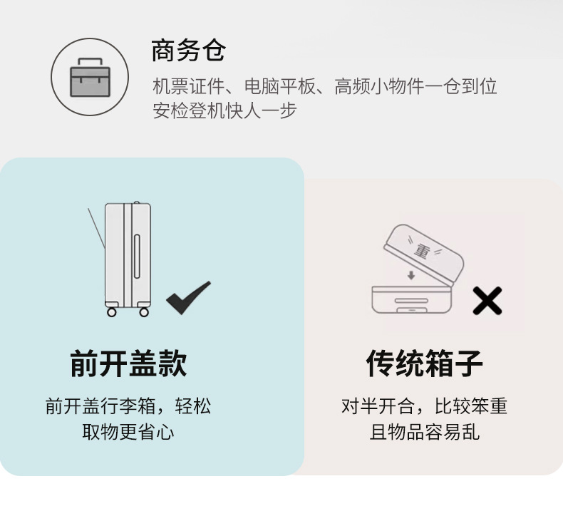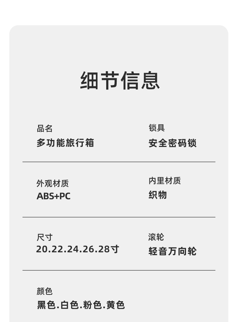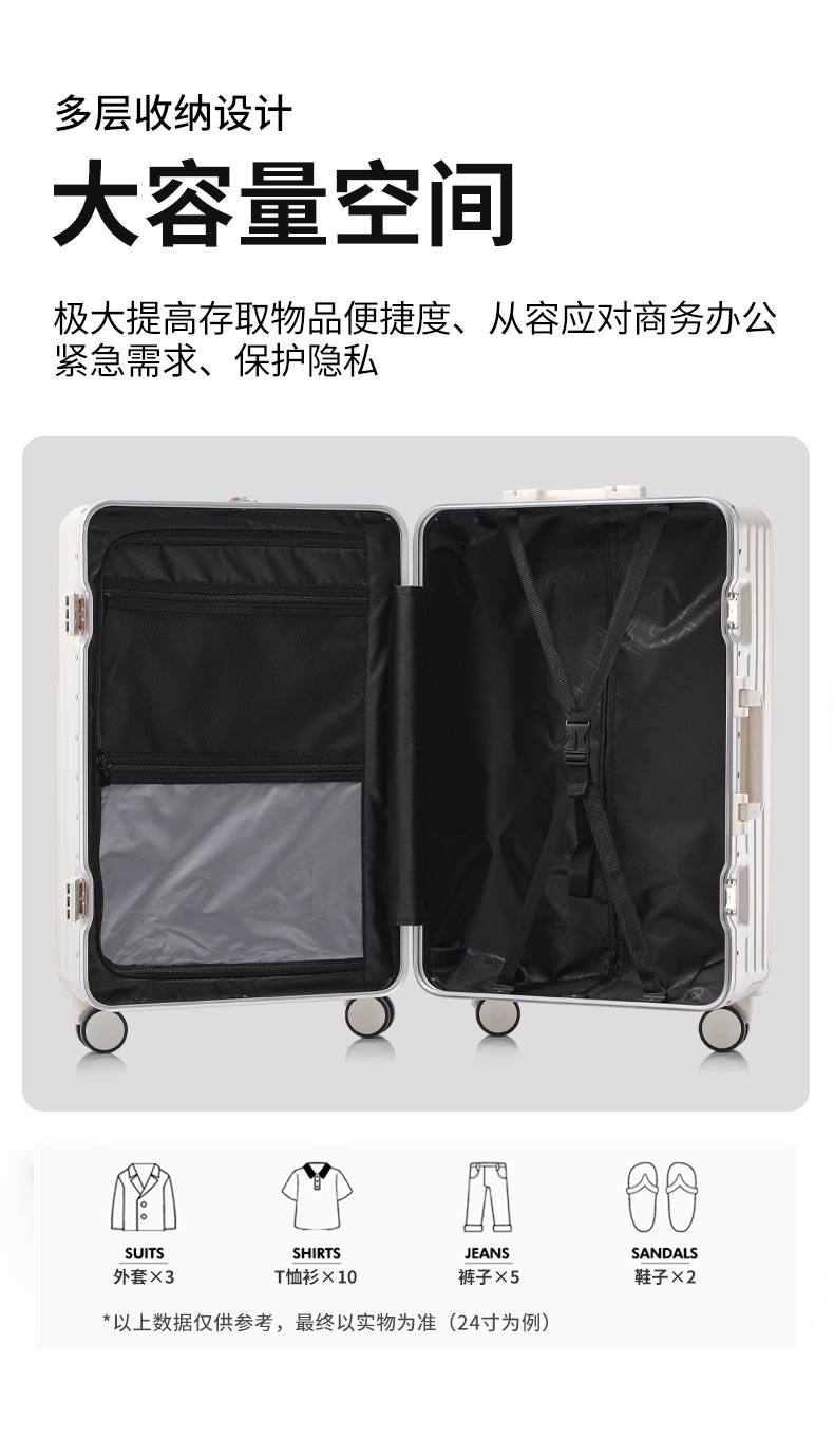 다기능 전면 개방 가방 20 인치 학생 가벼운 가방 26 인치 강한 내마모성 암호 상자 도매스토어 가기