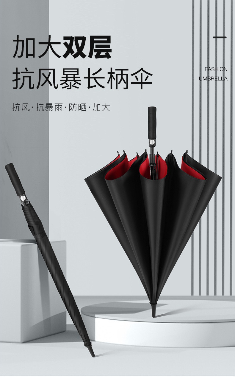 전체 섬유 스트레이트 우산 대형 긴 손잡이 우산 써니 우산 이중 사용 비즈니스 선물 광고 우산 도매 인쇄 가능한 로고