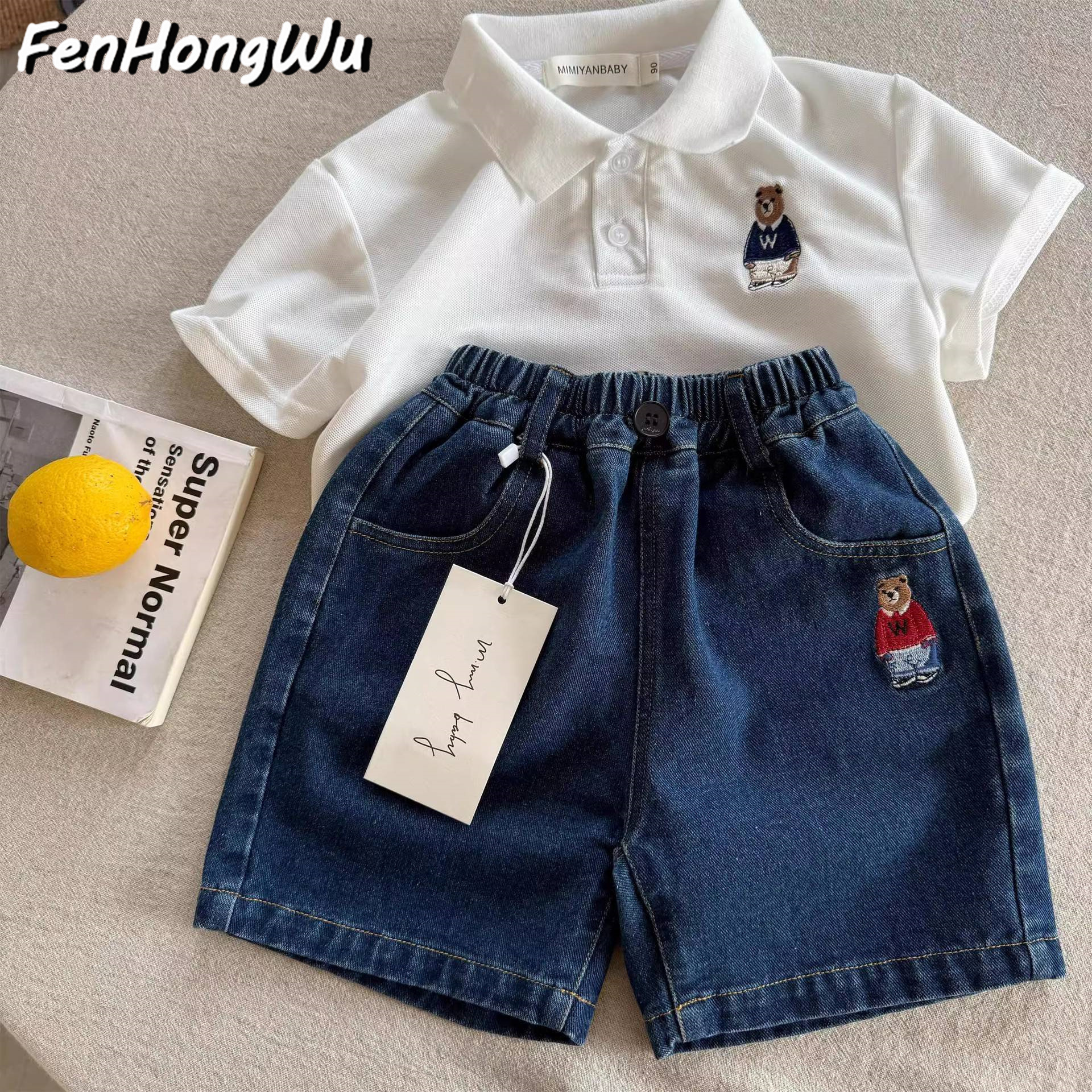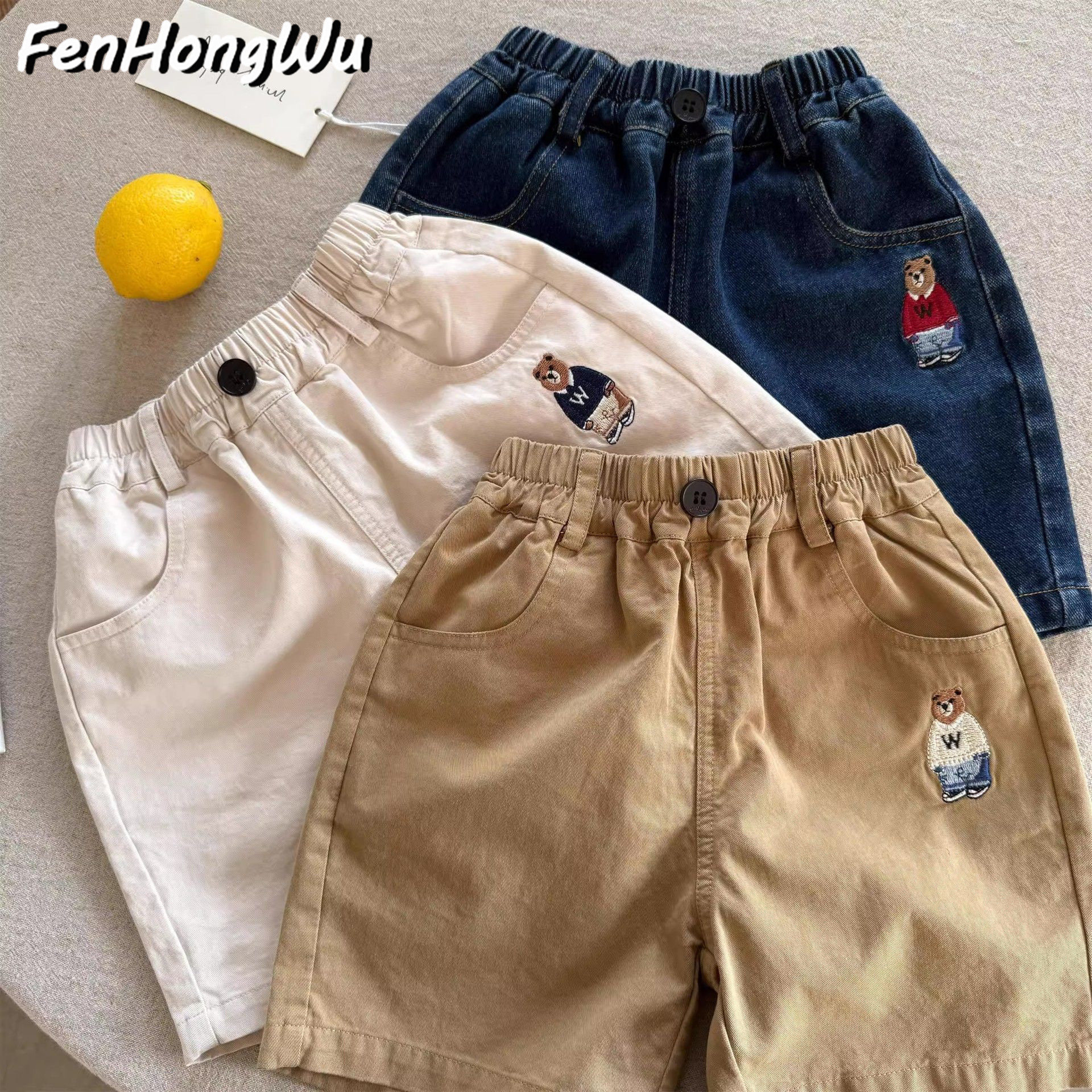 [핑크 집] 반바지 2025 년 여름 소년 일본 트렌디 브랜드 베어 청바지 서양식 5 점 캐주얼 바지스토어 가기