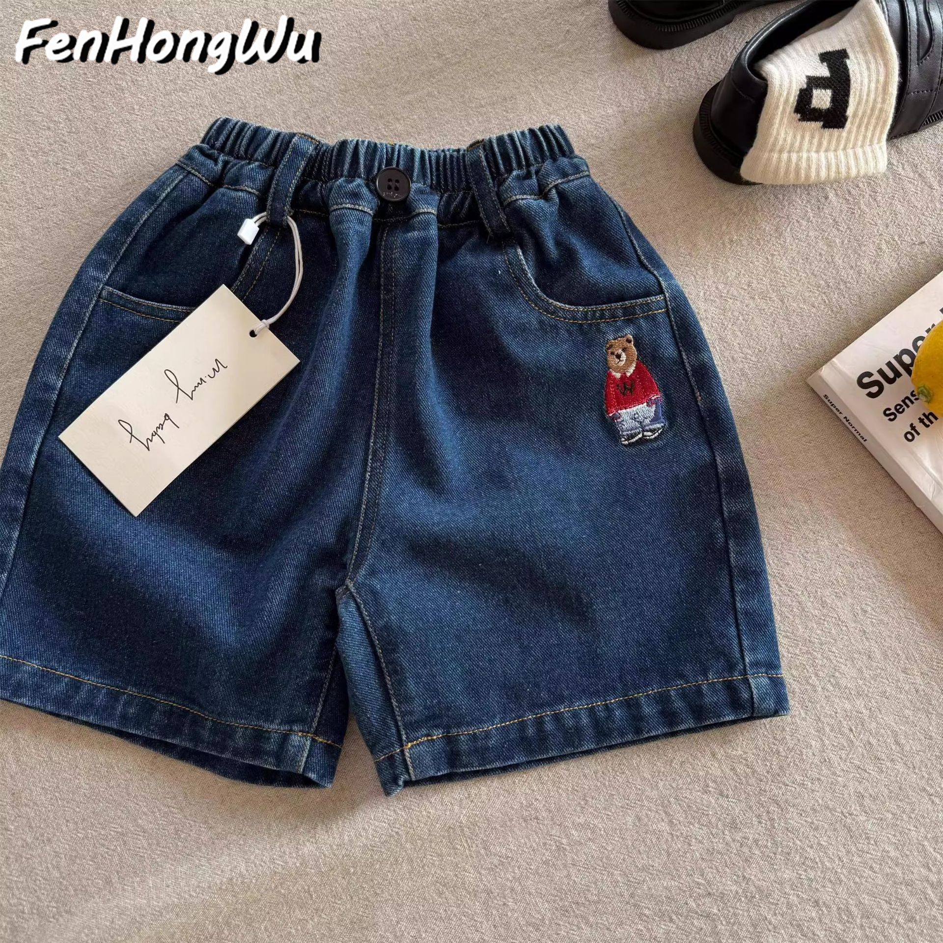 [핑크 집] 반바지 2025 년 여름 소년 일본 트렌디 브랜드 베어 청바지 서양식 5 점 캐주얼 바지