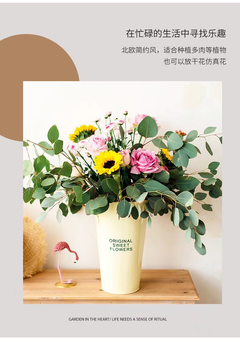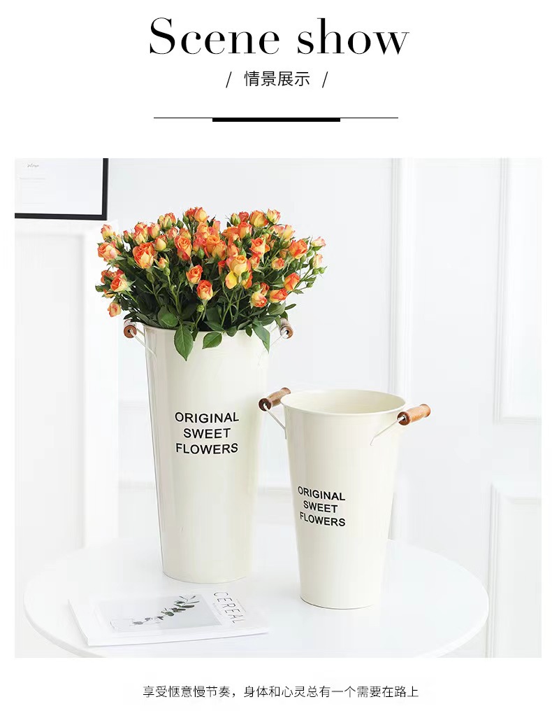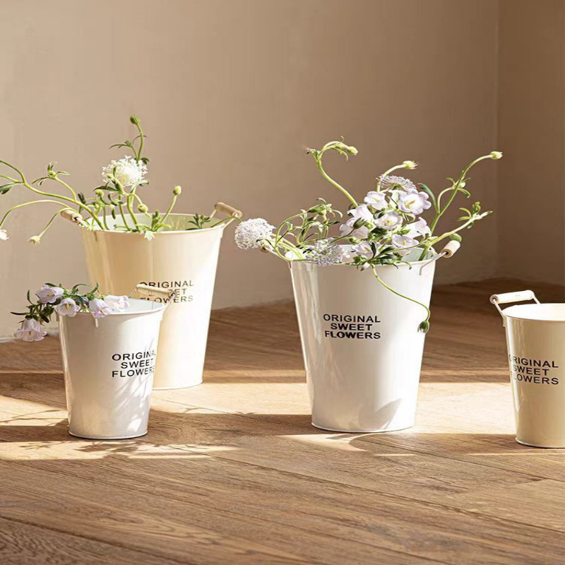 북유럽 스타일 각성 꽃 양동이 가정용 깊은 물 큰 꽃 가게 꽃 튜브 수경 꽃 주석 양동이 가정용 꽃 배열