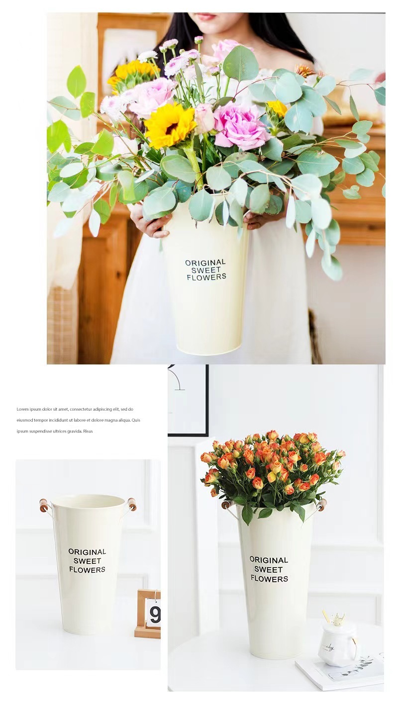 북유럽 스타일 각성 꽃 양동이 가정용 깊은 물 큰 꽃 가게 꽃 튜브 수경 꽃 주석 양동이 가정용 꽃 배열스토어 가기