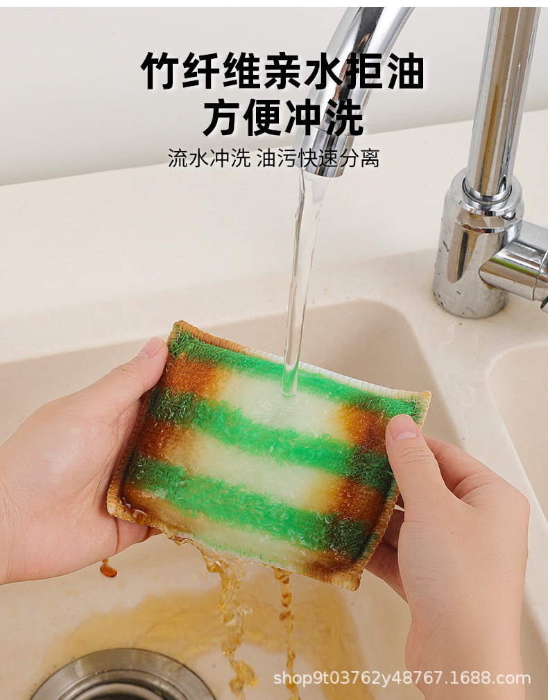 국경 간 대나무 섬유 붙지 않는 오일 스폰지 가정용 식기 세척 브러시 매직 스크럽 행주 주방 수세미 걸레스토어 가기
