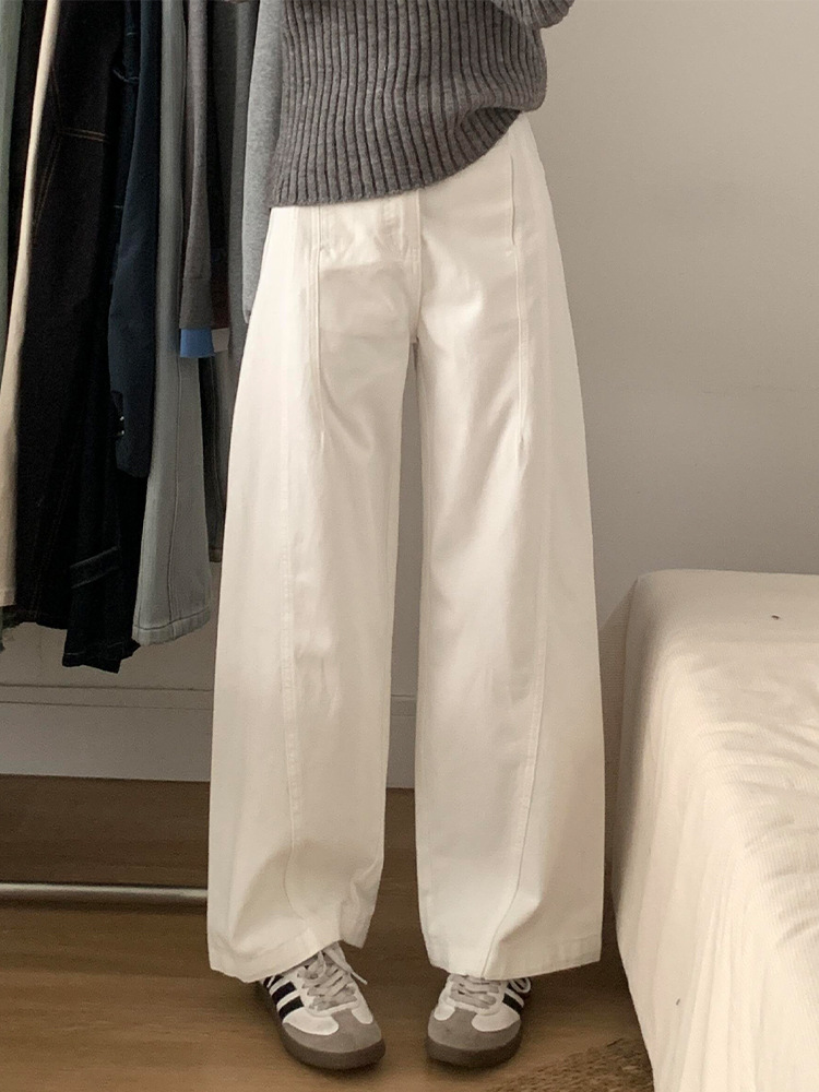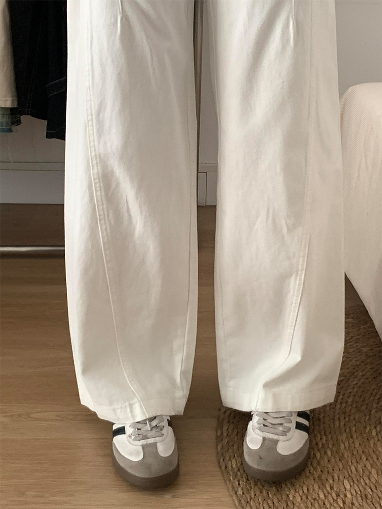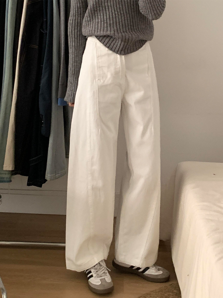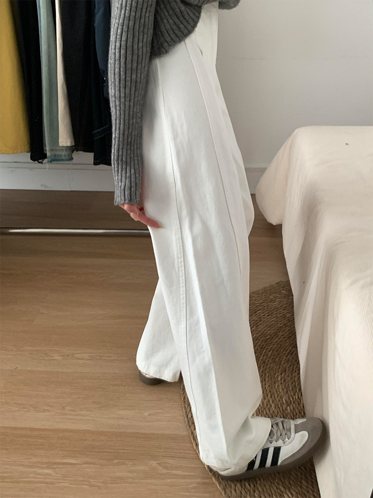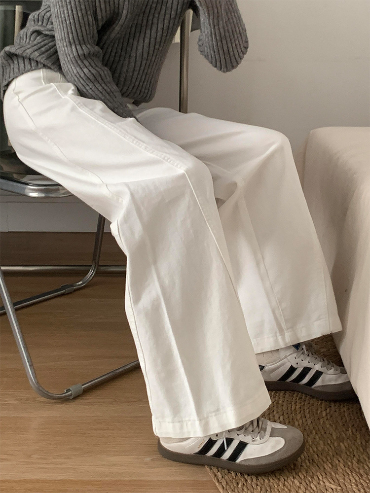 흰색 구조 Machete 넓은 다리 청바지 여성의 봄 새로운 높은 허리 느슨한 슬리밍 올매치 스트레이트 바지스토어 가기