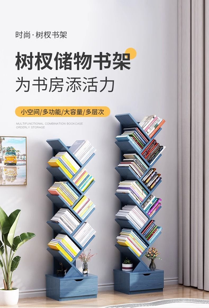 간단한 나무 모양의 책꽂이 바닥 스탠딩 스토리지 랙 홈 벽 창조적 인 작은 책장 거실 다층 저장 캐비닛