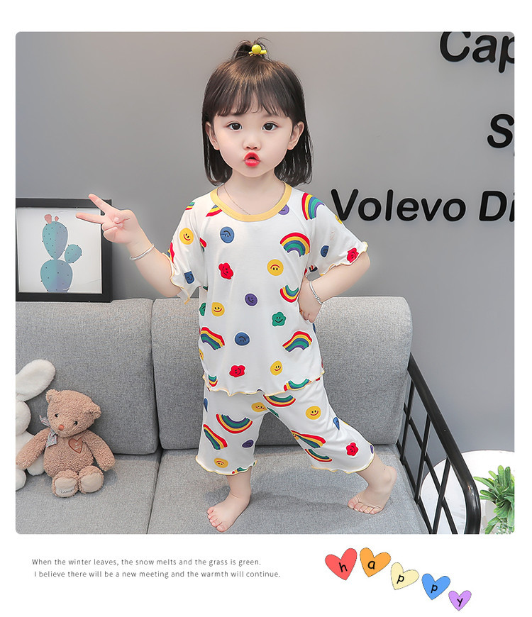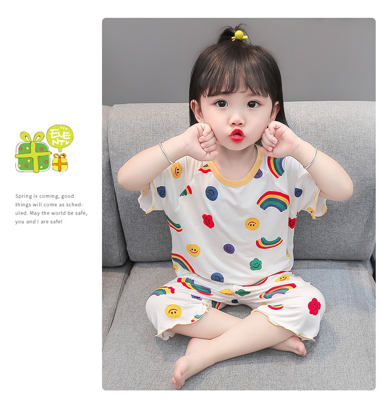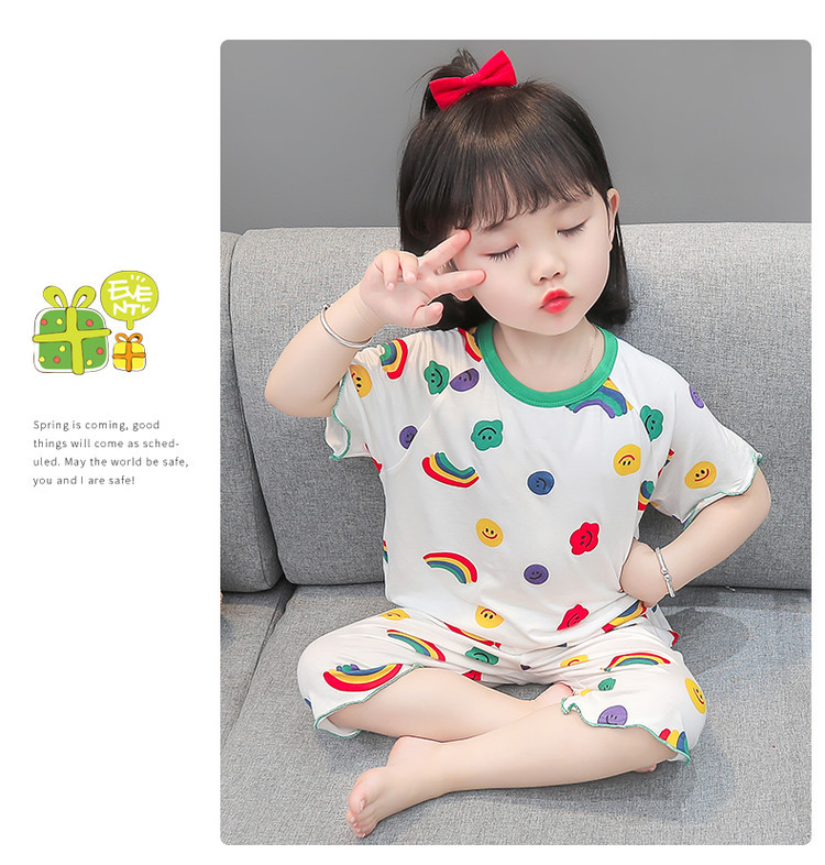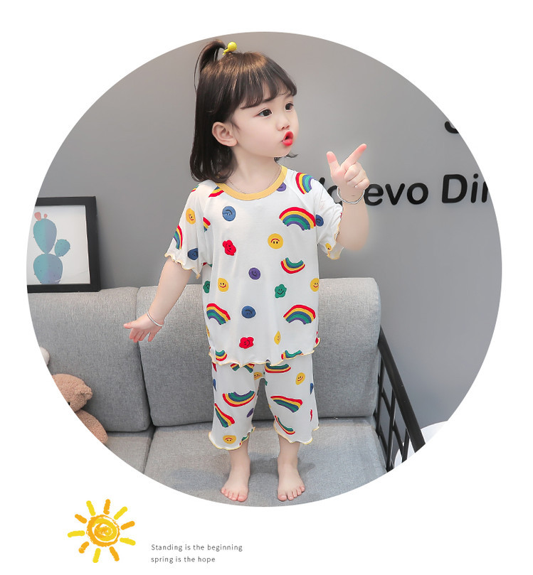 소녀 잠옷 얇은 인터넷 인기있는 모달 여름 옷 어린이 집 옷 높은 허리 아기 에어컨 옷 여름 소녀스토어 가기