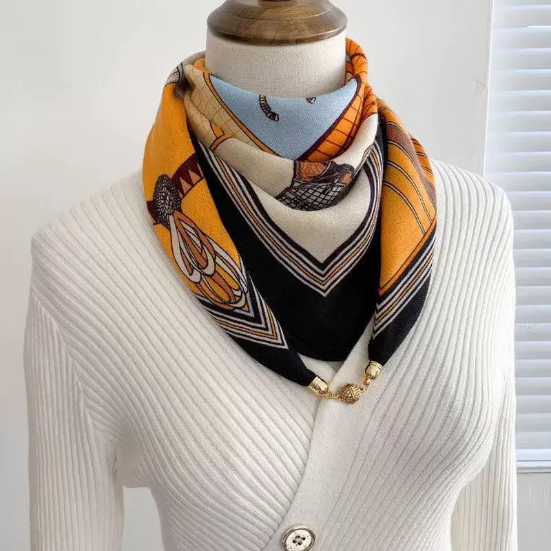 스퀘어 스카프 여성의 2025 새로운 자석 버클 목 보호 작은 스카프 여성의 가을 및 겨울 면화 린넨 목 스카프 보호스토어 가기