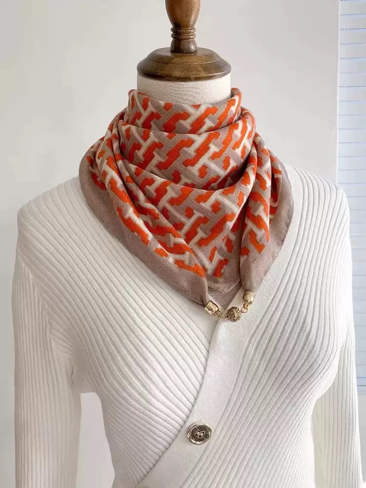 스퀘어 스카프 여성의 2025 새로운 자석 버클 목 보호 작은 스카프 여성의 가을 및 겨울 면화 린넨 목 스카프 보호