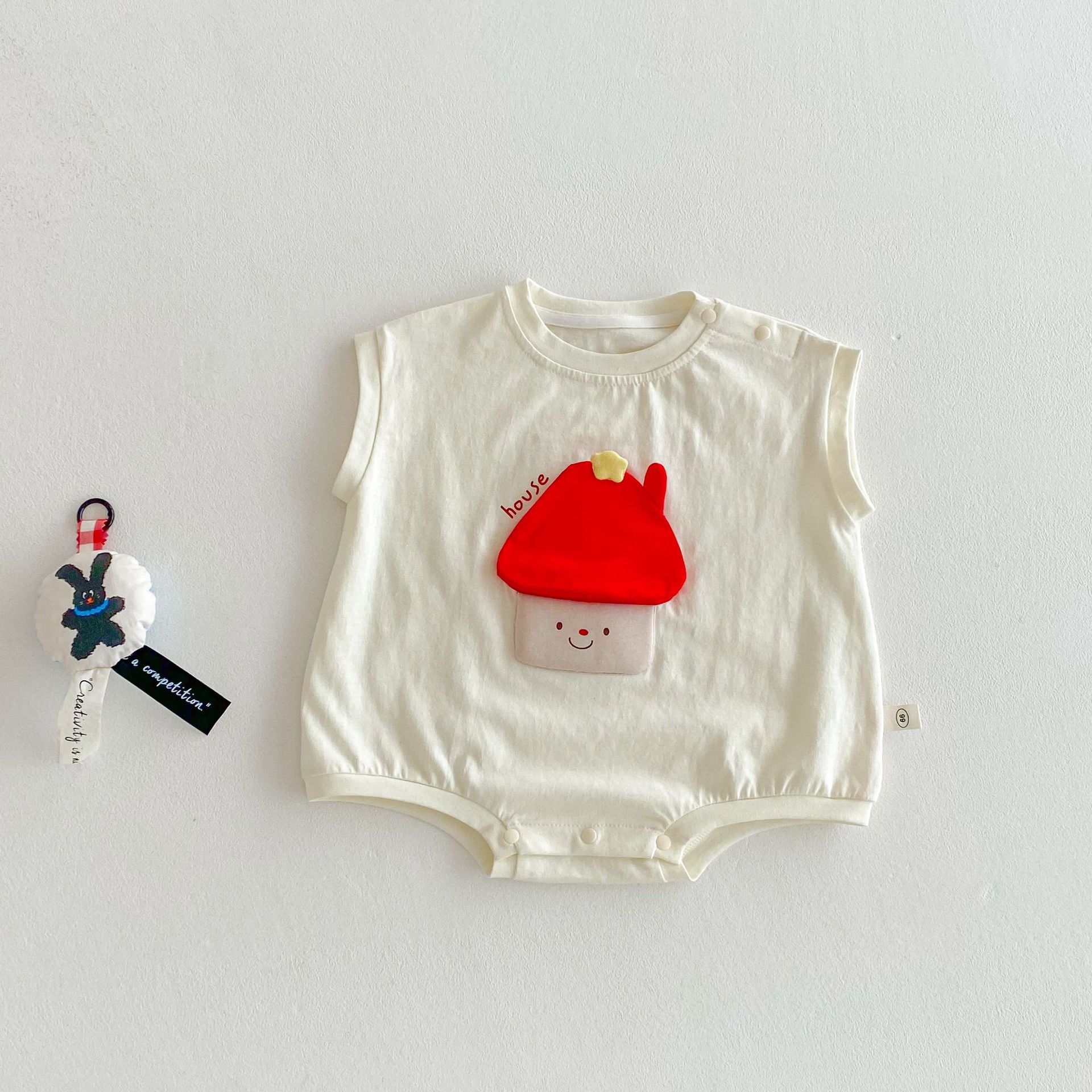 아기 만화 가방 방귀 2025 새로운 여름 소녀 서양식 입체 작은 집 점프 수트 신생아 옷