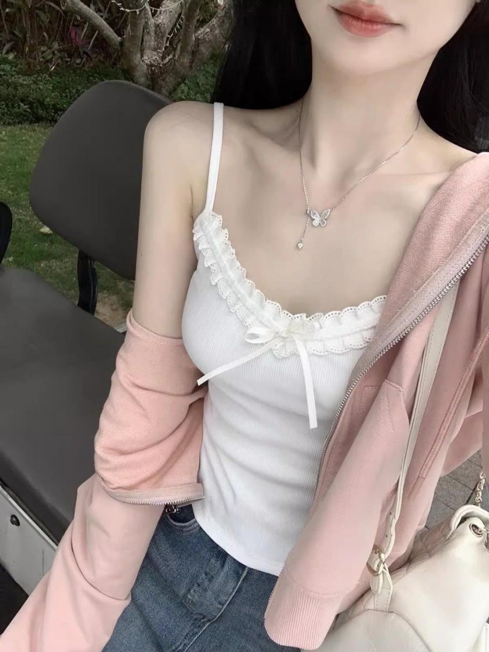 흉부 패드 스태킹 착용 All-match Dev 코튼 레이스 활 작은 슬링 순수 내부 착용 조끼 탑 여성