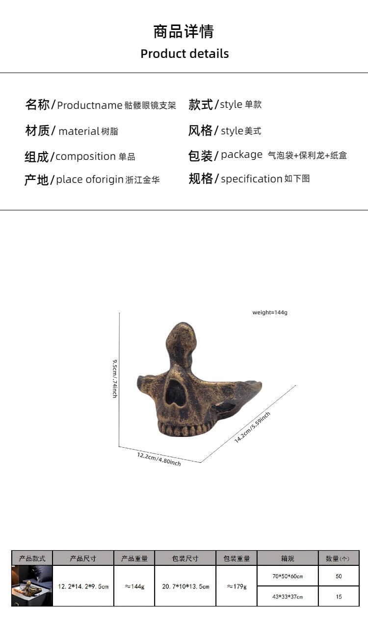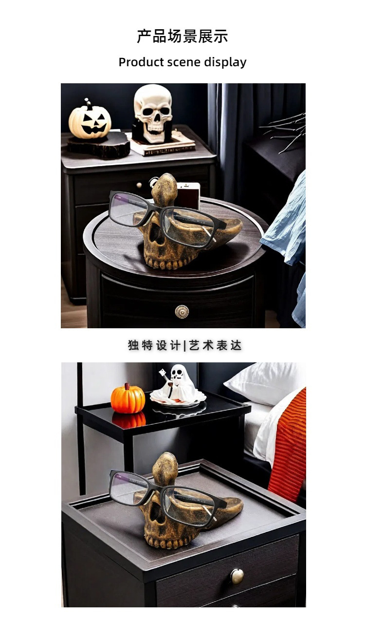 국경 간 새로운 해골 안경 브래킷 데스크탑 장식품 창조적 인 할로윈 홈 장식 수지 공예