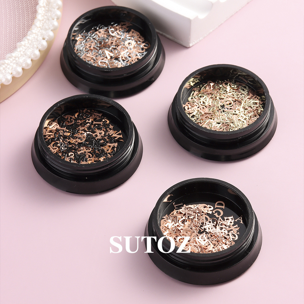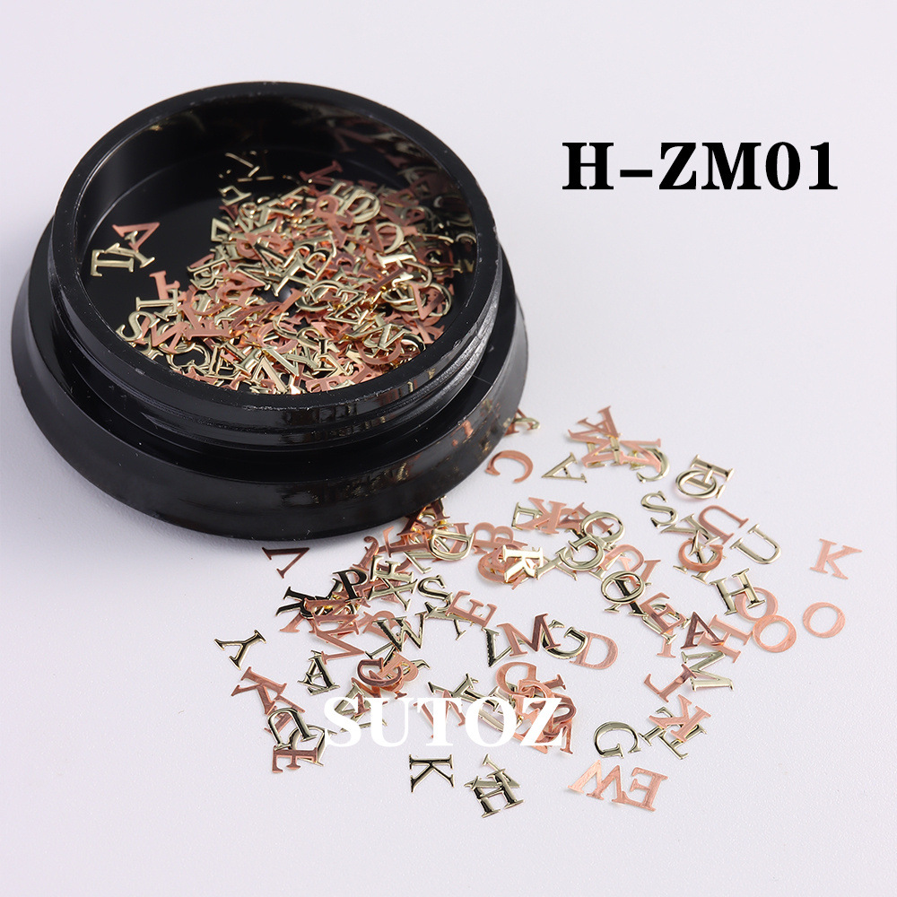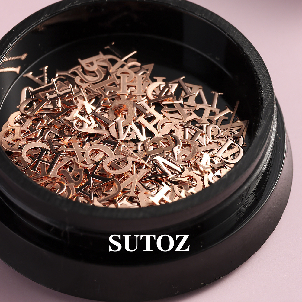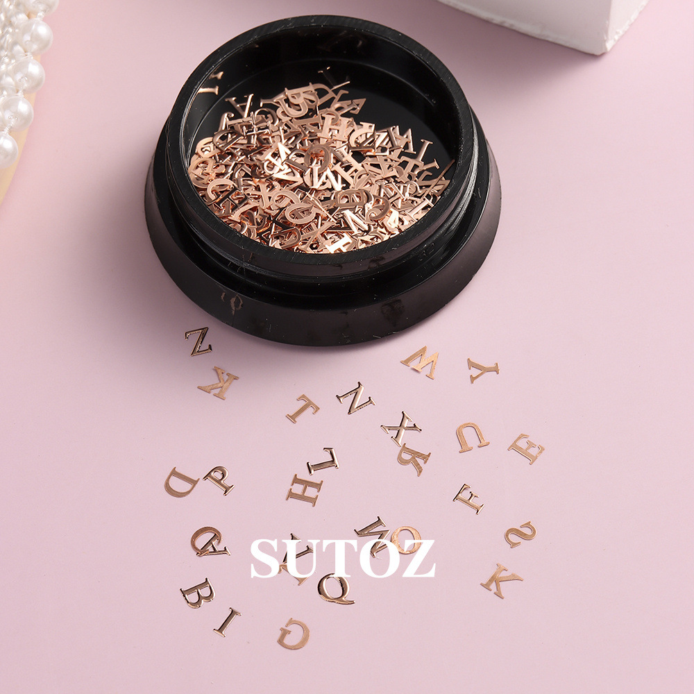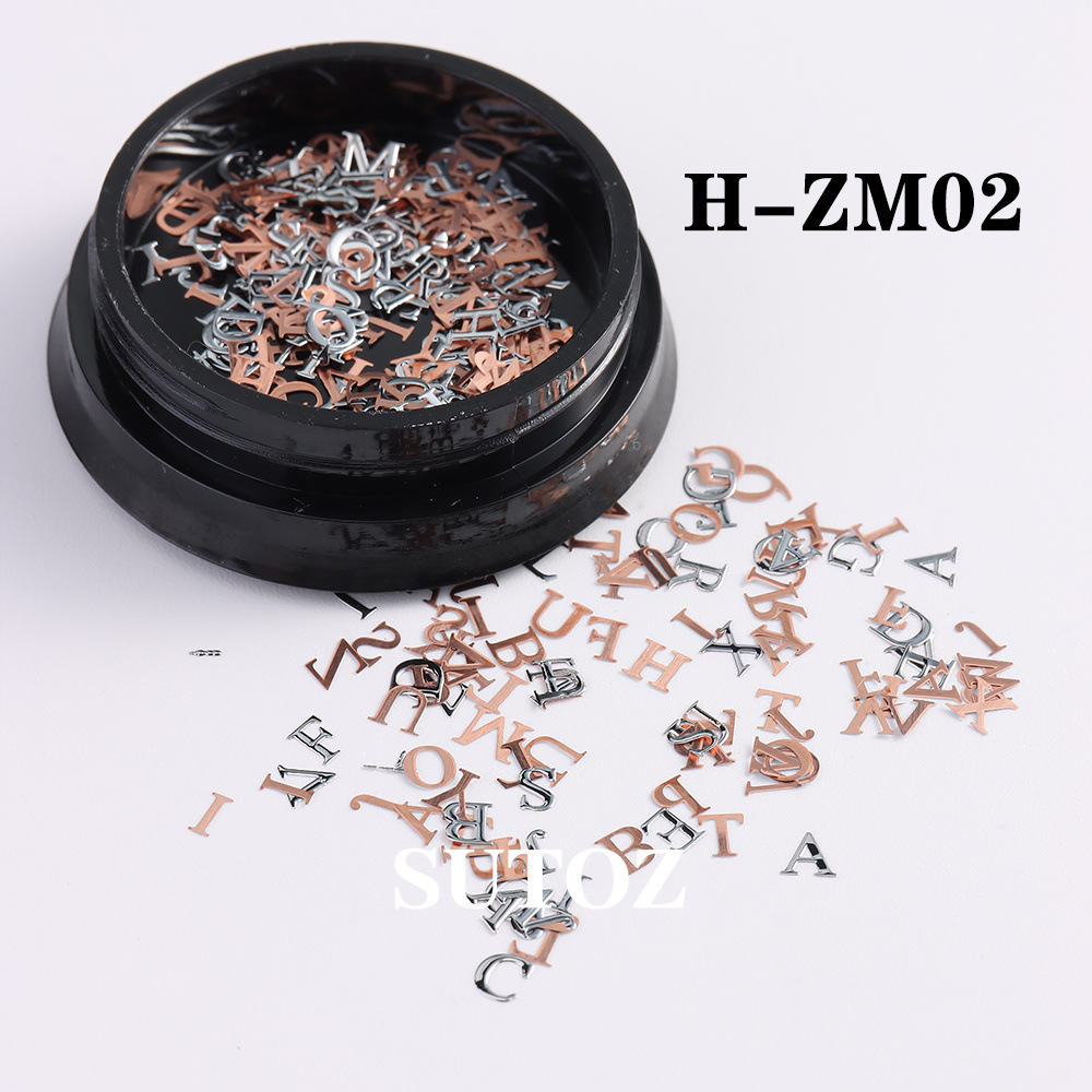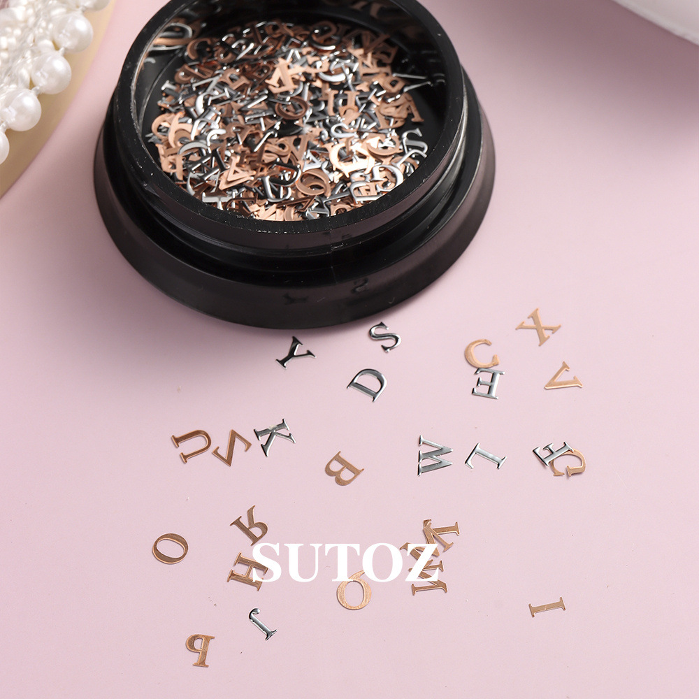 국경 간 새로운 네일 아트 쥬얼리 인터넷 축하 새로운 금속 시트 영어 알파벳 혼합 병 네일 액세서리스토어 가기