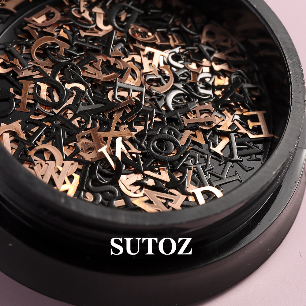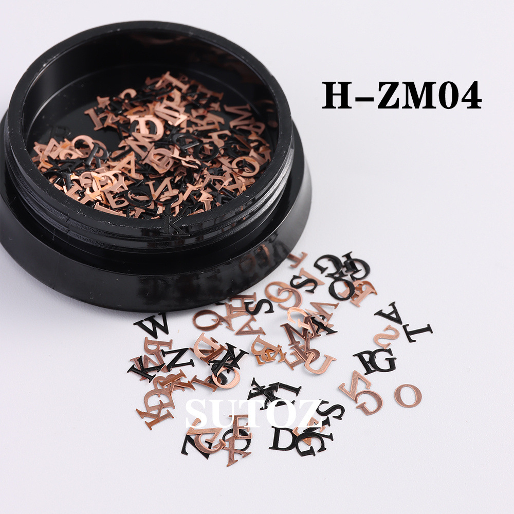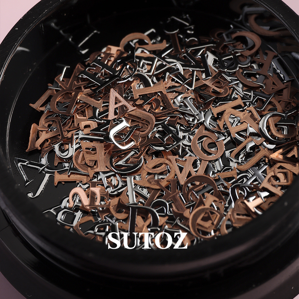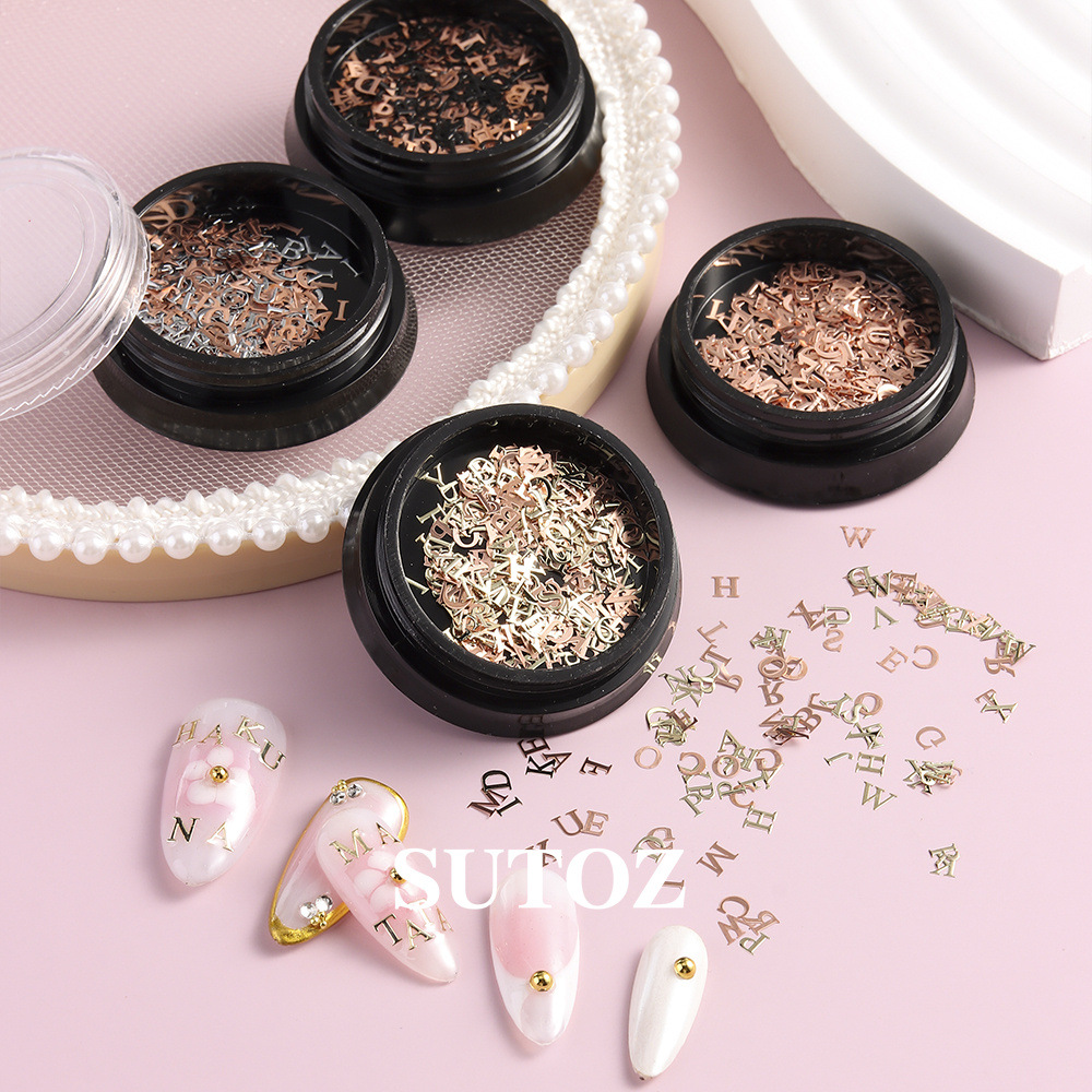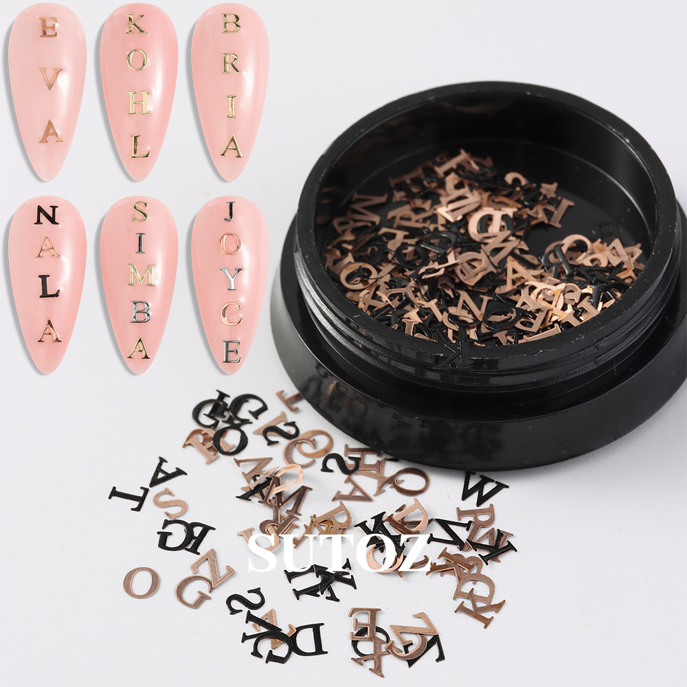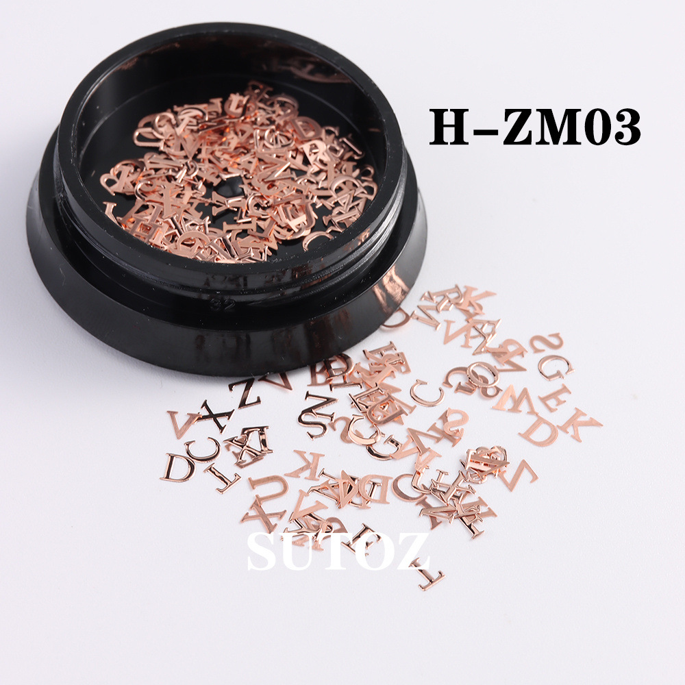 국경 간 새로운 네일 아트 쥬얼리 인터넷 축하 새로운 금속 시트 영어 알파벳 혼합 병 네일 액세서리스토어 가기