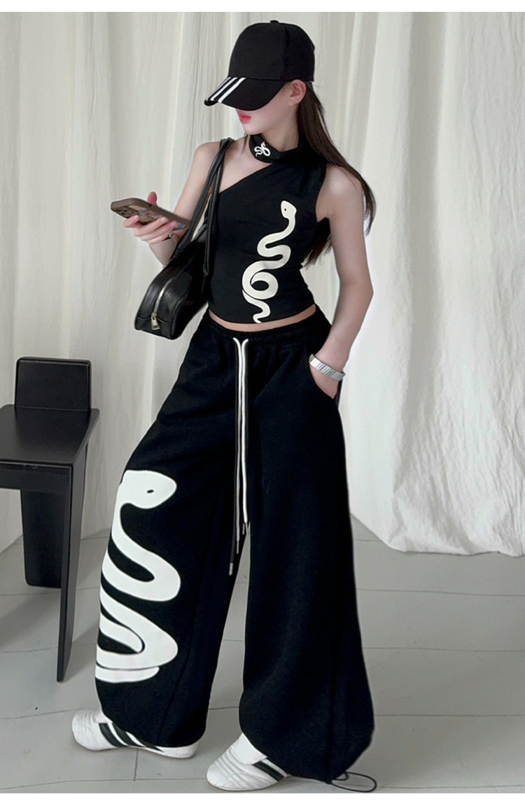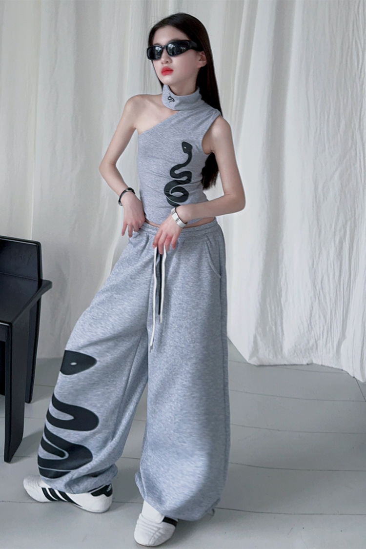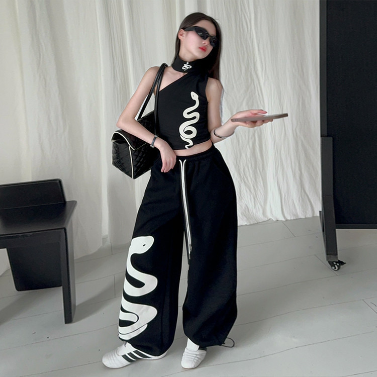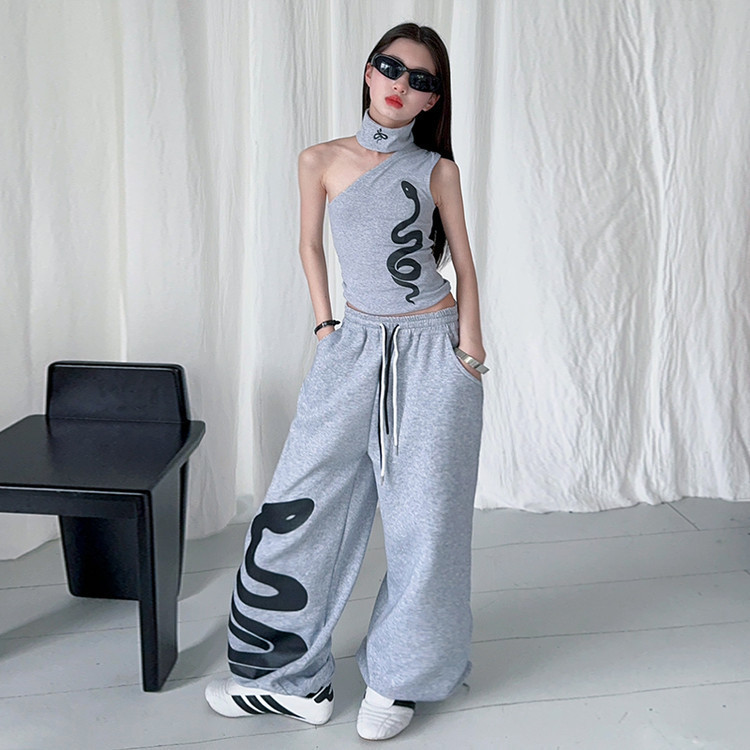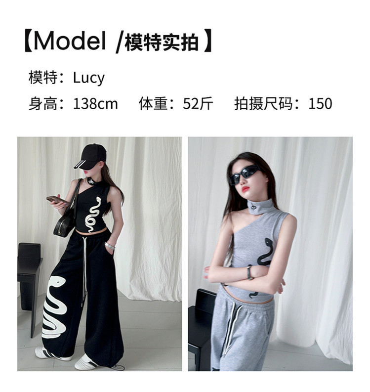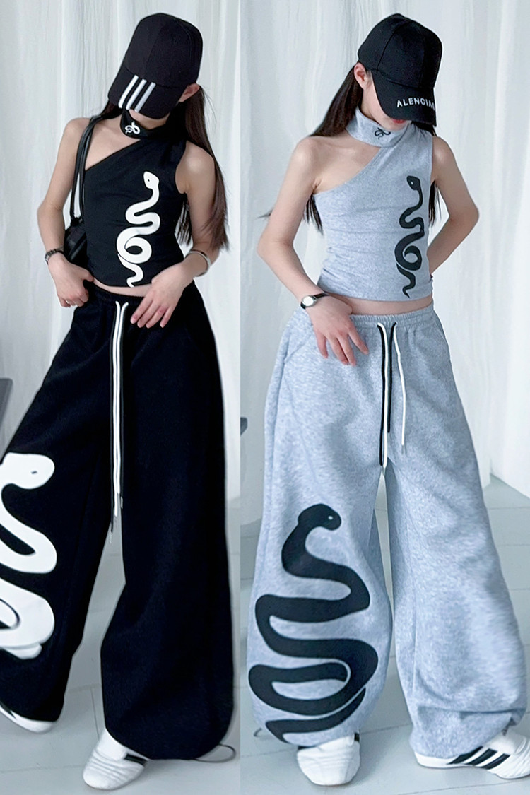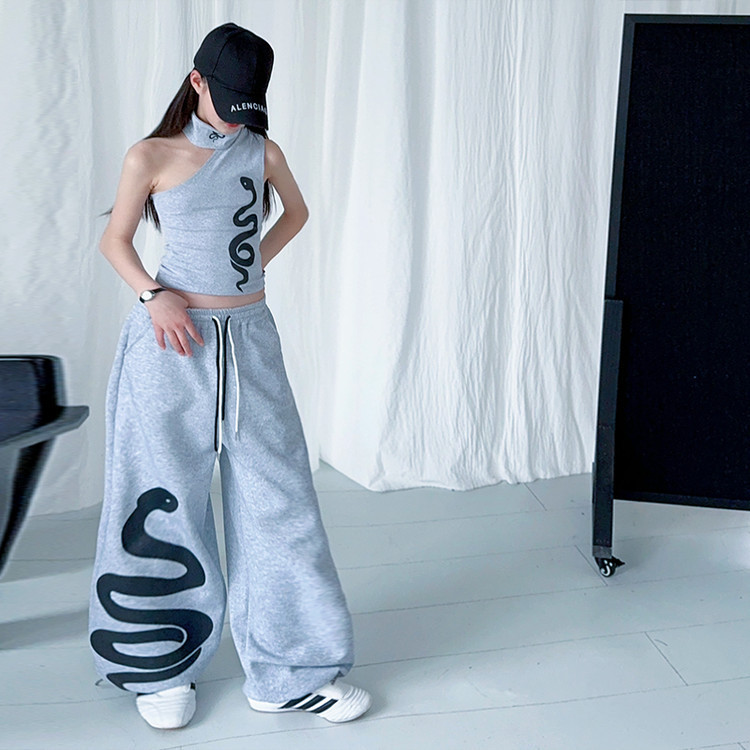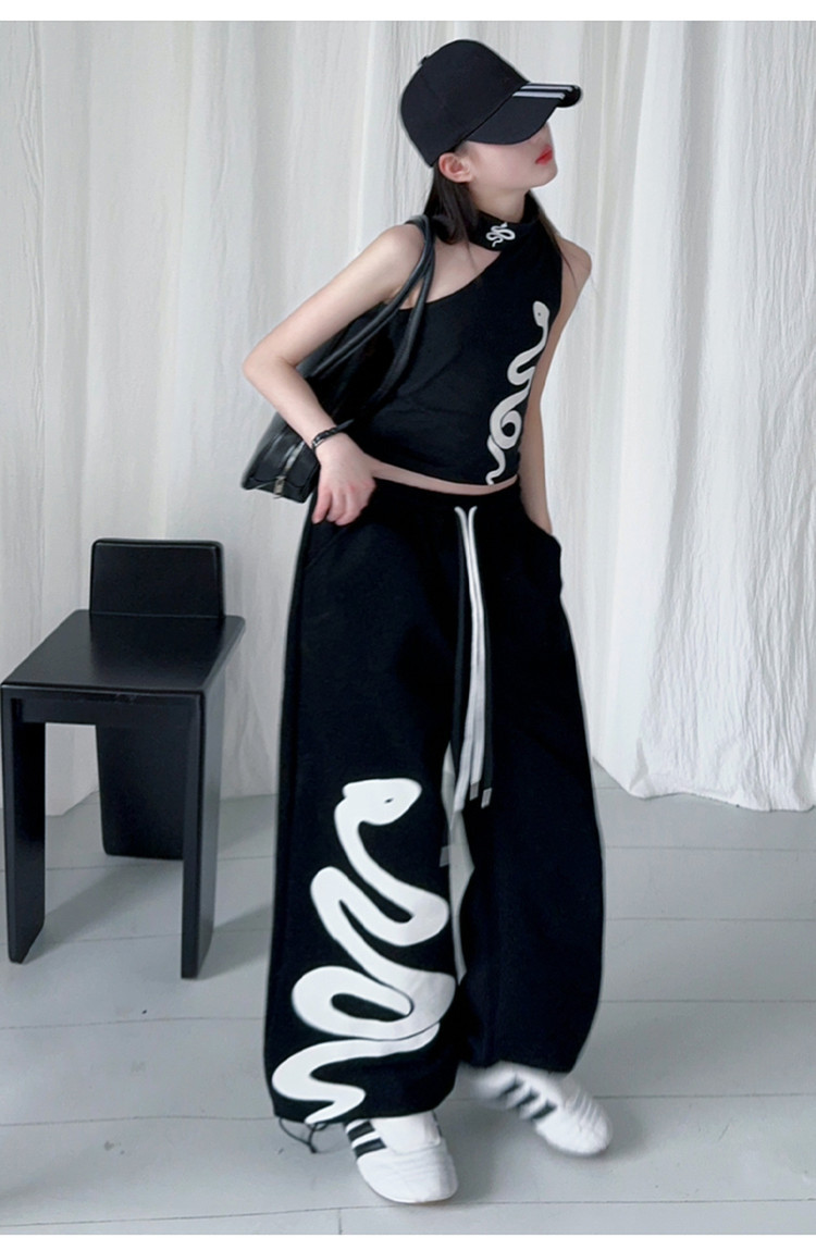 소녀 스파이스 걸스 세트 중 · 대형 어린이 봄 · 가을 한국식 트렌디 쿨 슬랜트 어깨 조끼 와이드 레그 팬츠 소녀 패션 투피스 세트
