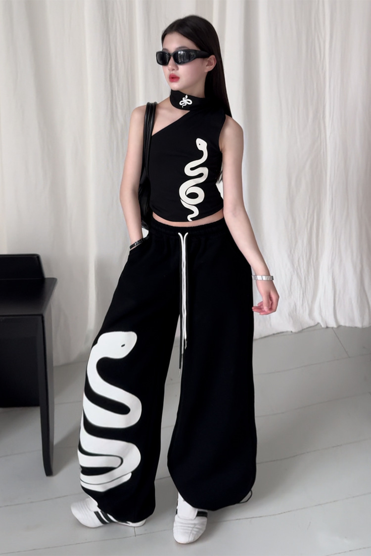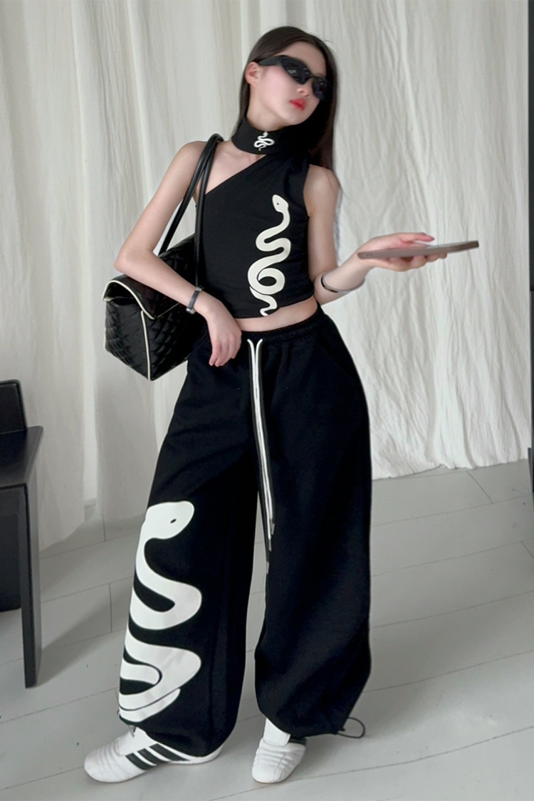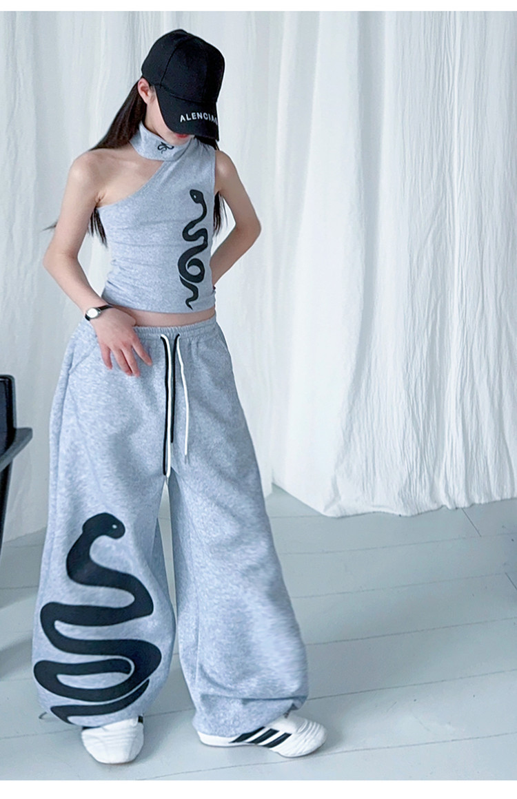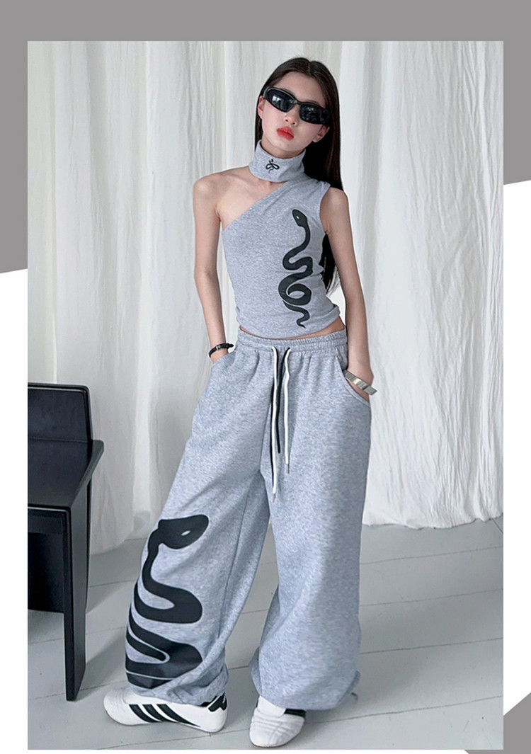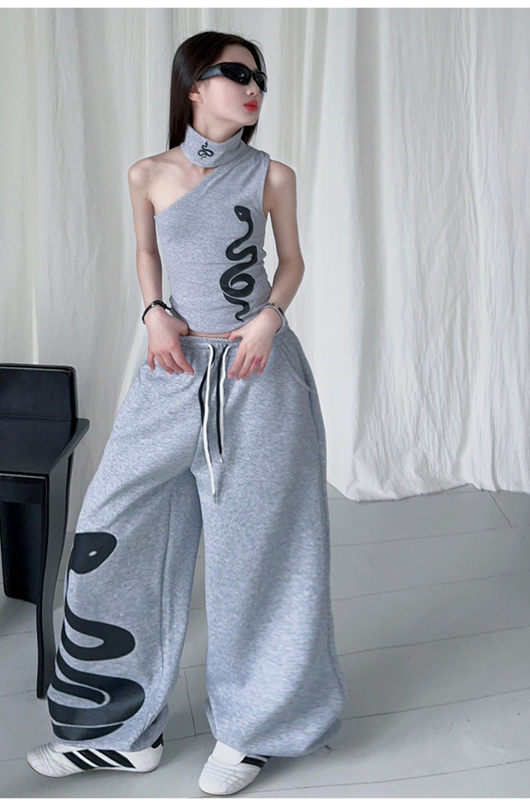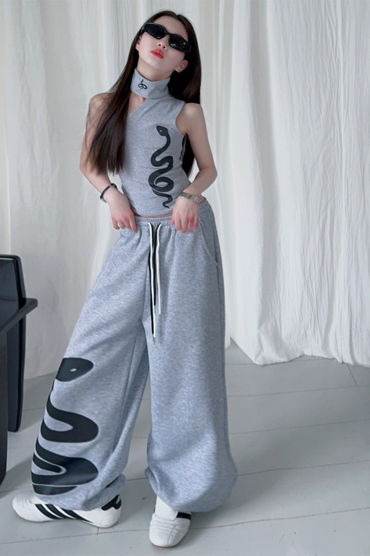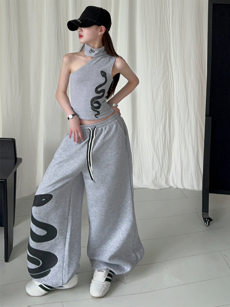 소녀 스파이스 걸스 세트 중 · 대형 어린이 봄 · 가을 한국식 트렌디 쿨 슬랜트 어깨 조끼 와이드 레그 팬츠 소녀 패션 투피스 세트