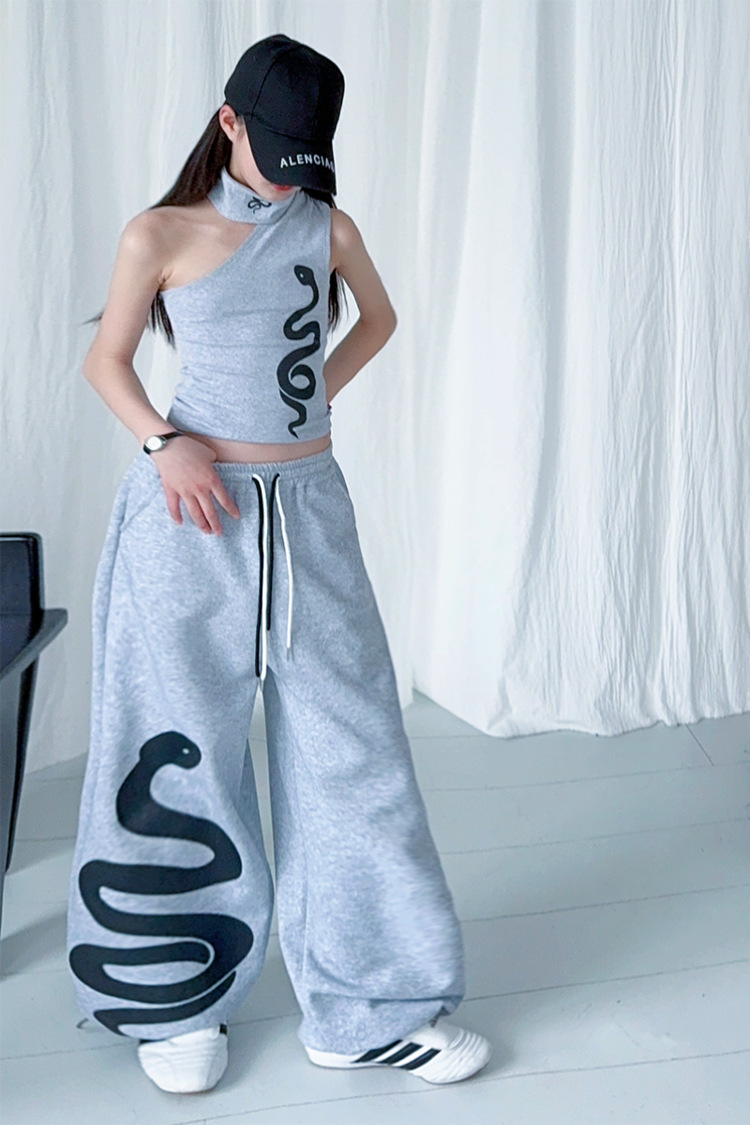소녀 스파이스 걸스 세트 중 · 대형 어린이 봄 · 가을 한국식 트렌디 쿨 슬랜트 어깨 조끼 와이드 레그 팬츠 소녀 패션 투피스 세트스토어 가기