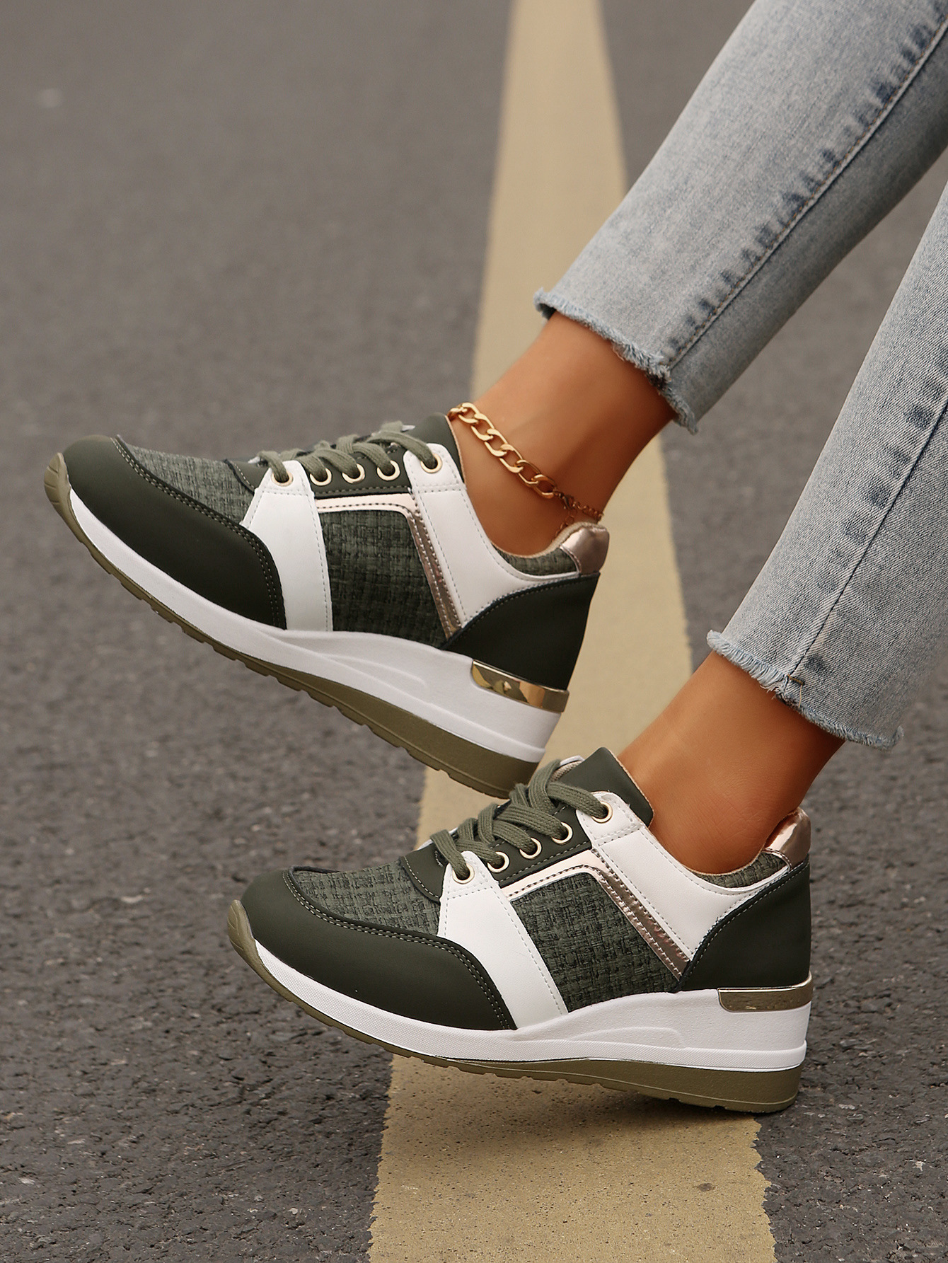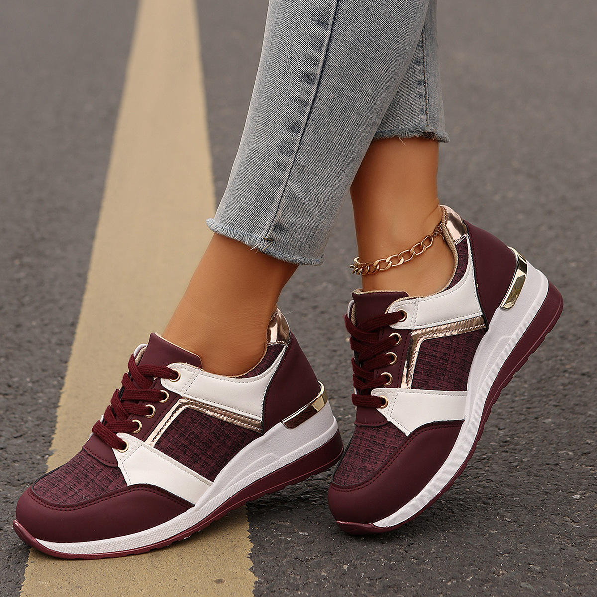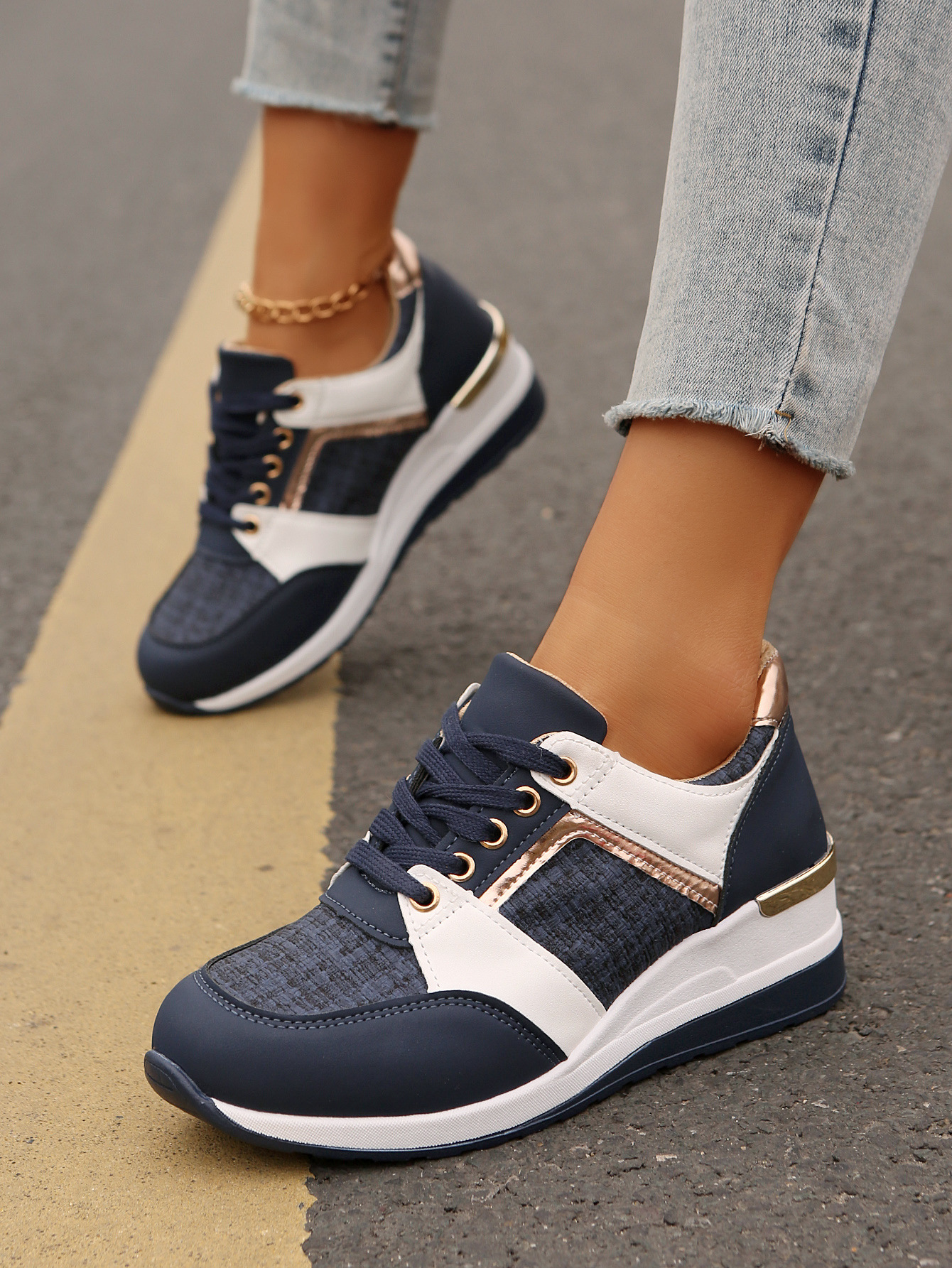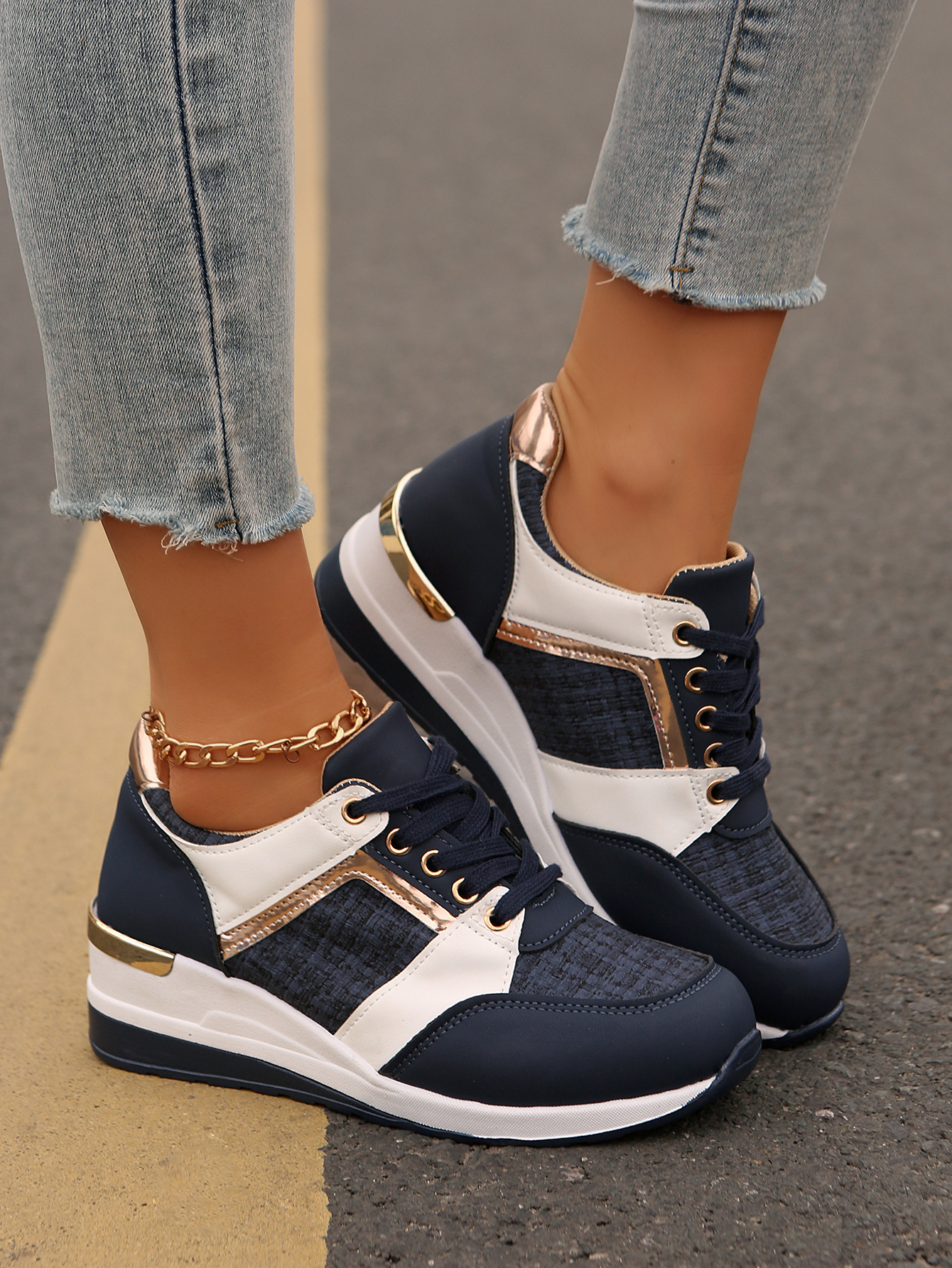 국경 2025 새로운 스포츠 캐주얼 신발 유럽과 미국의 패션 웨지 플랫폼 캐주얼 스포츠 여성 싱글 신발 여성 재고스토어 가기