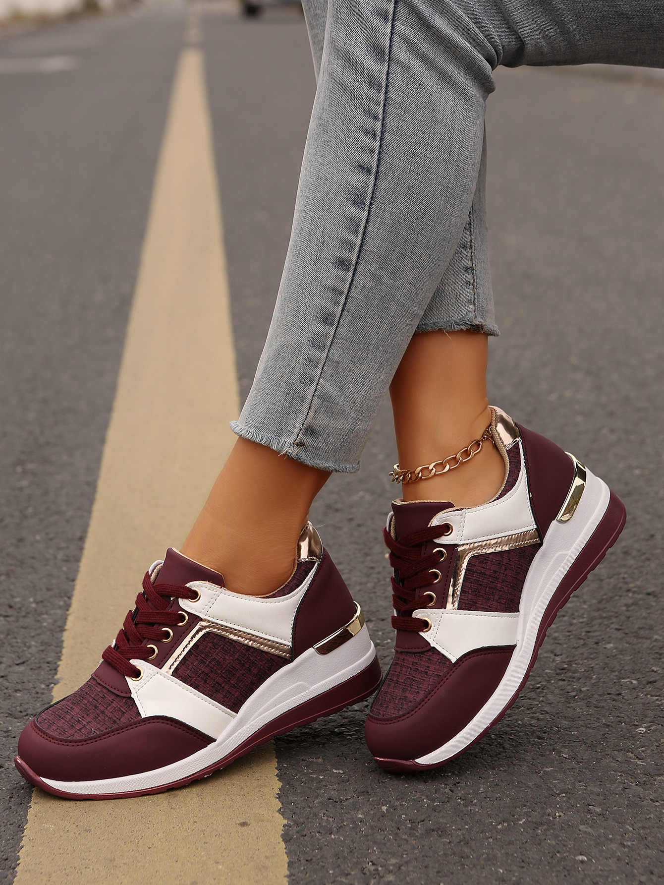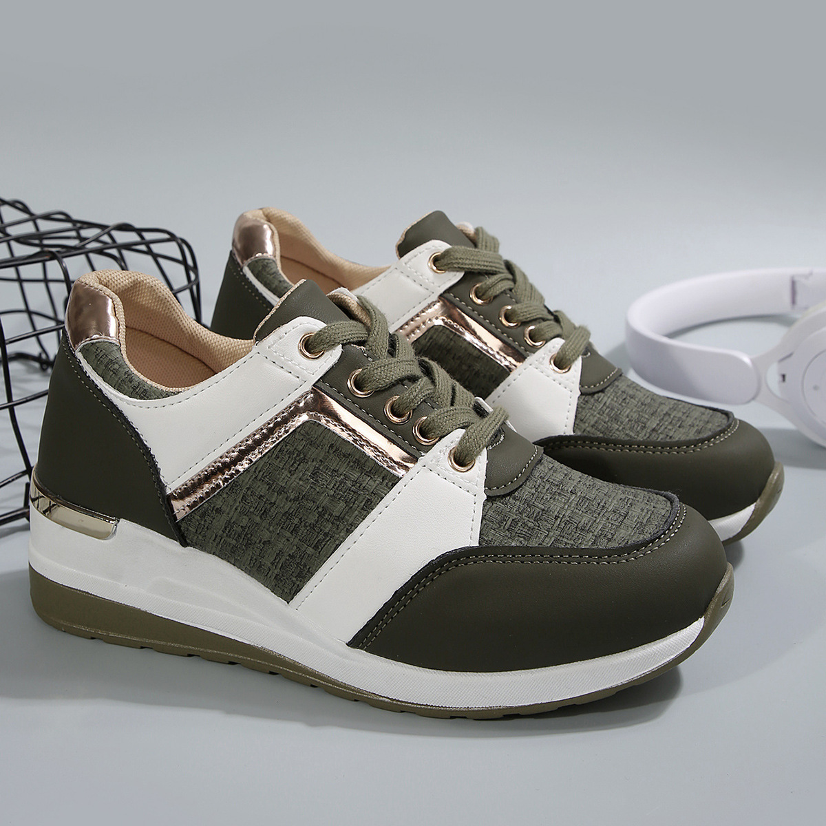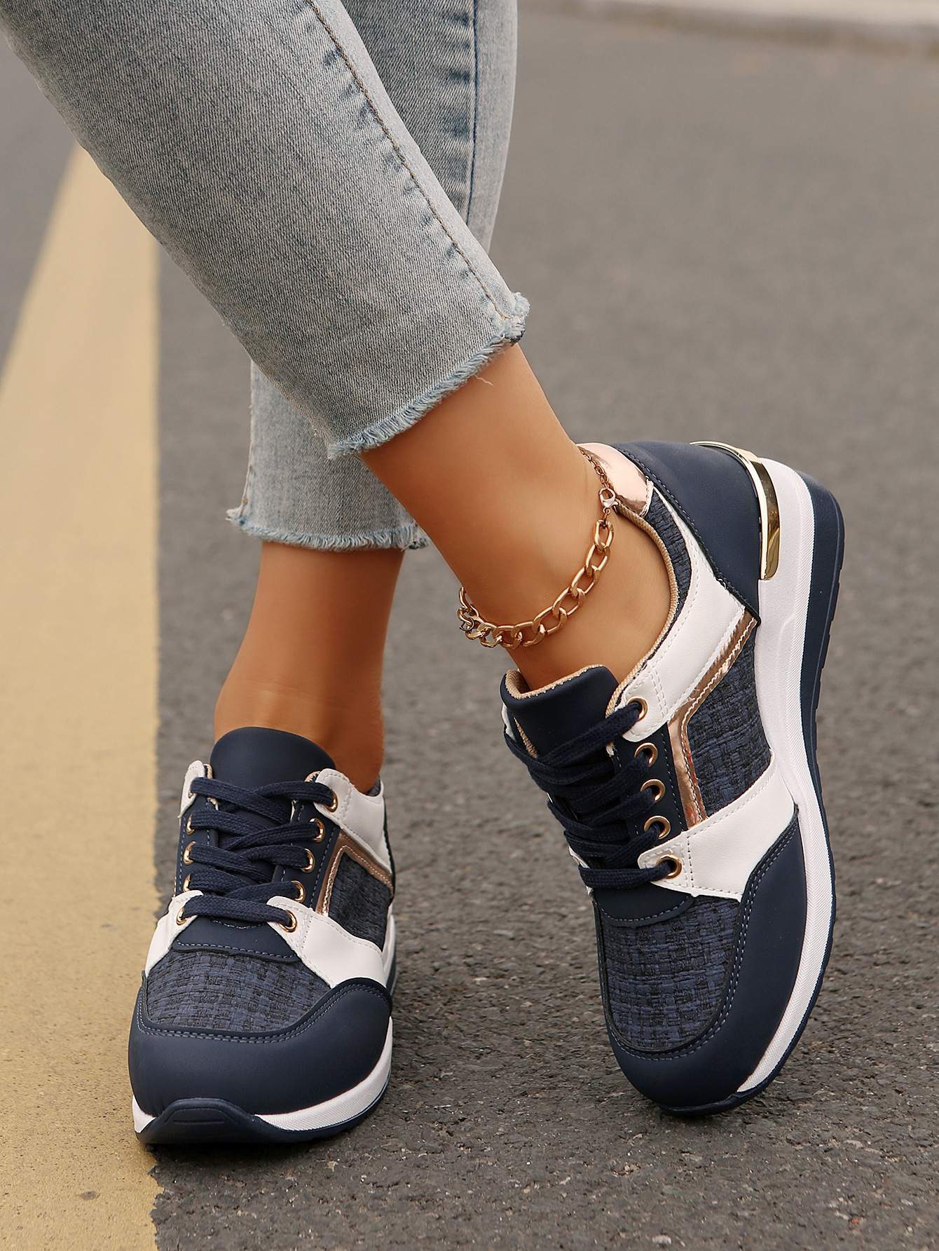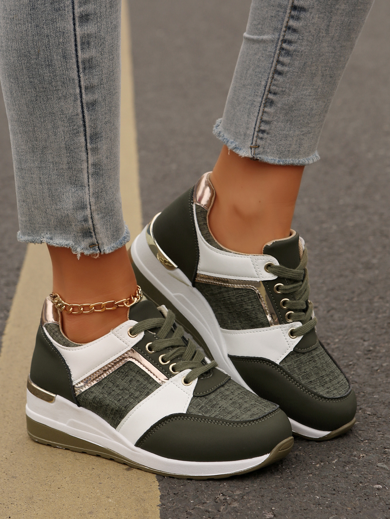 국경 2025 새로운 스포츠 캐주얼 신발 유럽과 미국의 패션 웨지 플랫폼 캐주얼 스포츠 여성 싱글 신발 여성 재고스토어 가기