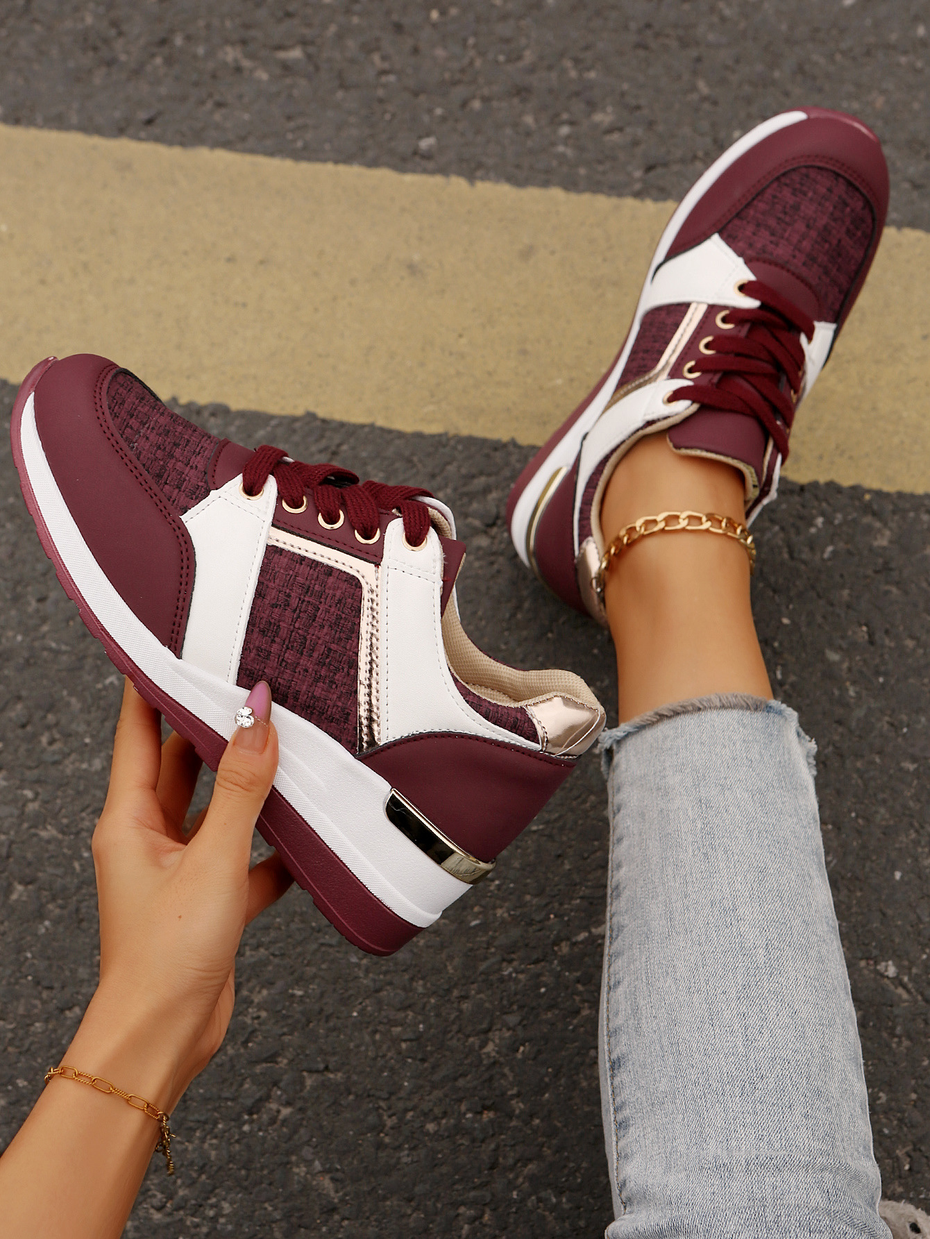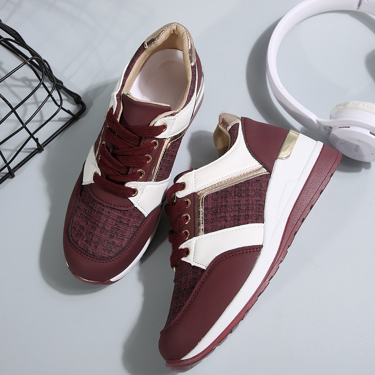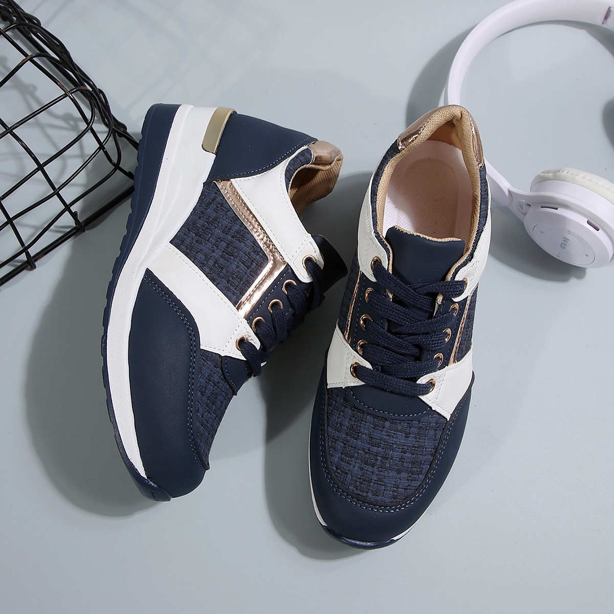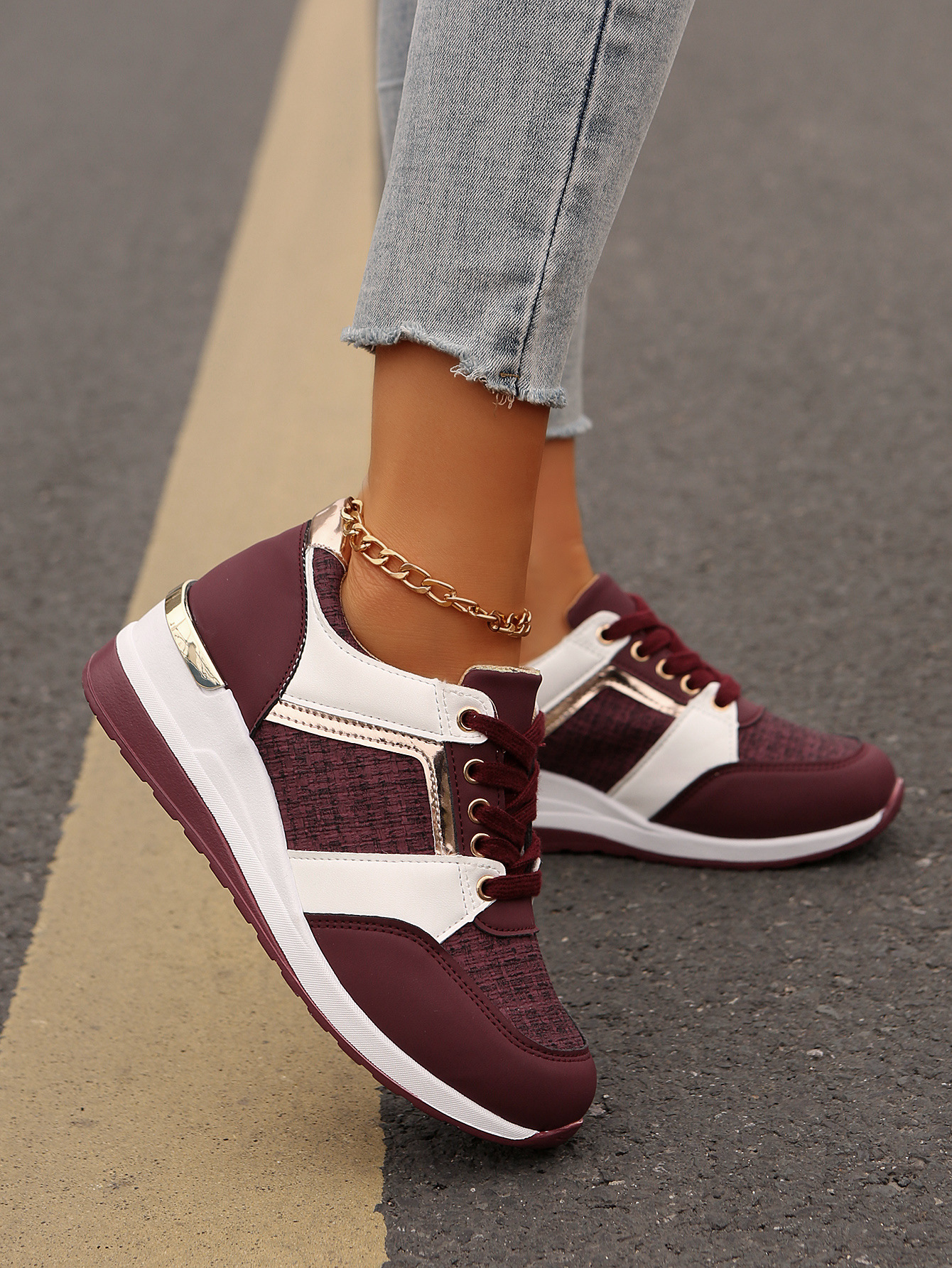 국경 2025 새로운 스포츠 캐주얼 신발 유럽과 미국의 패션 웨지 플랫폼 캐주얼 스포츠 여성 싱글 신발 여성 재고스토어 가기