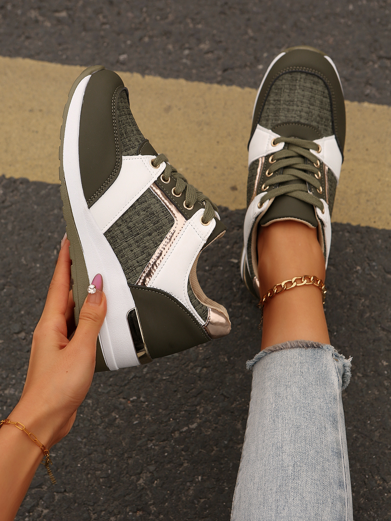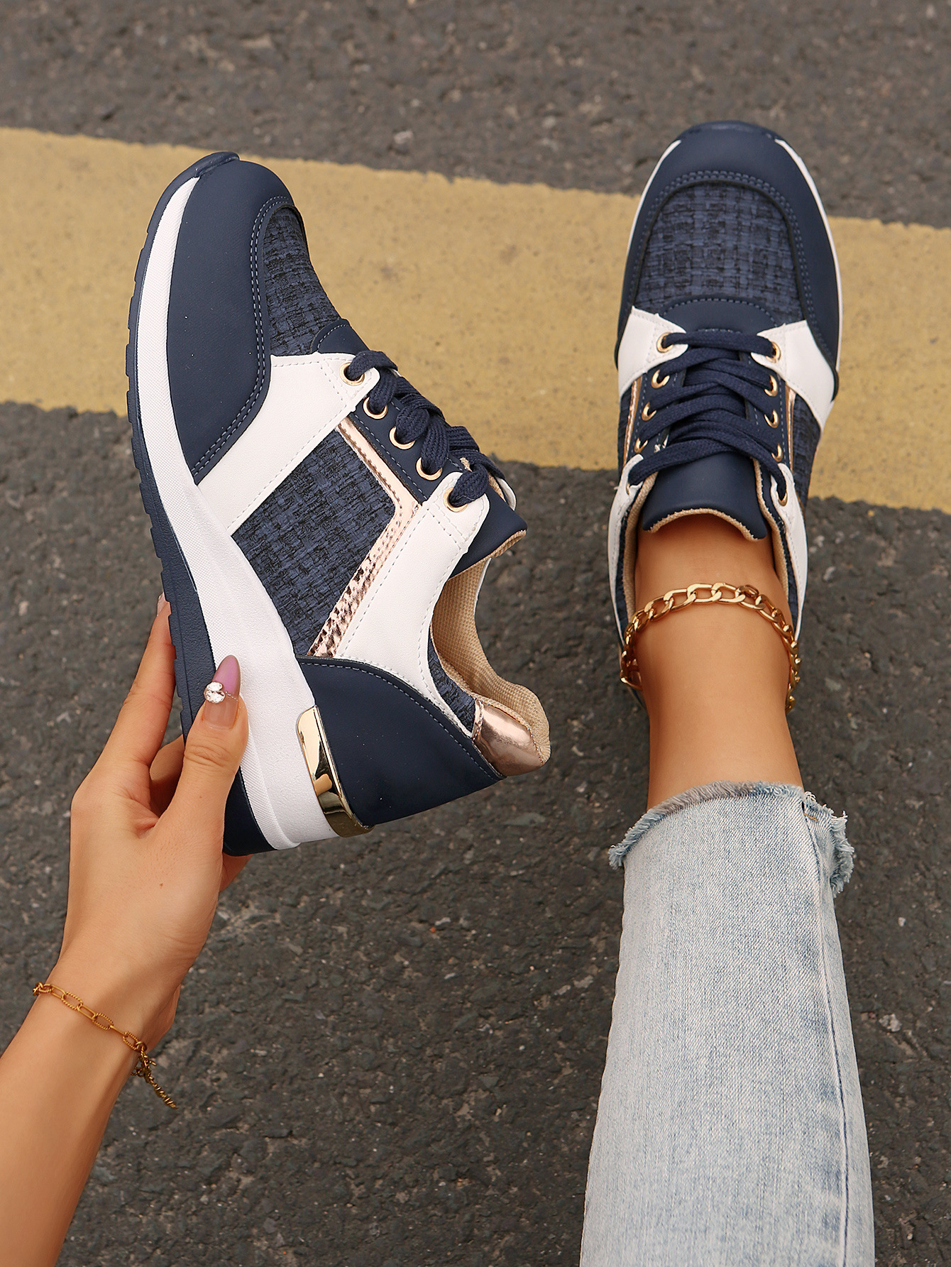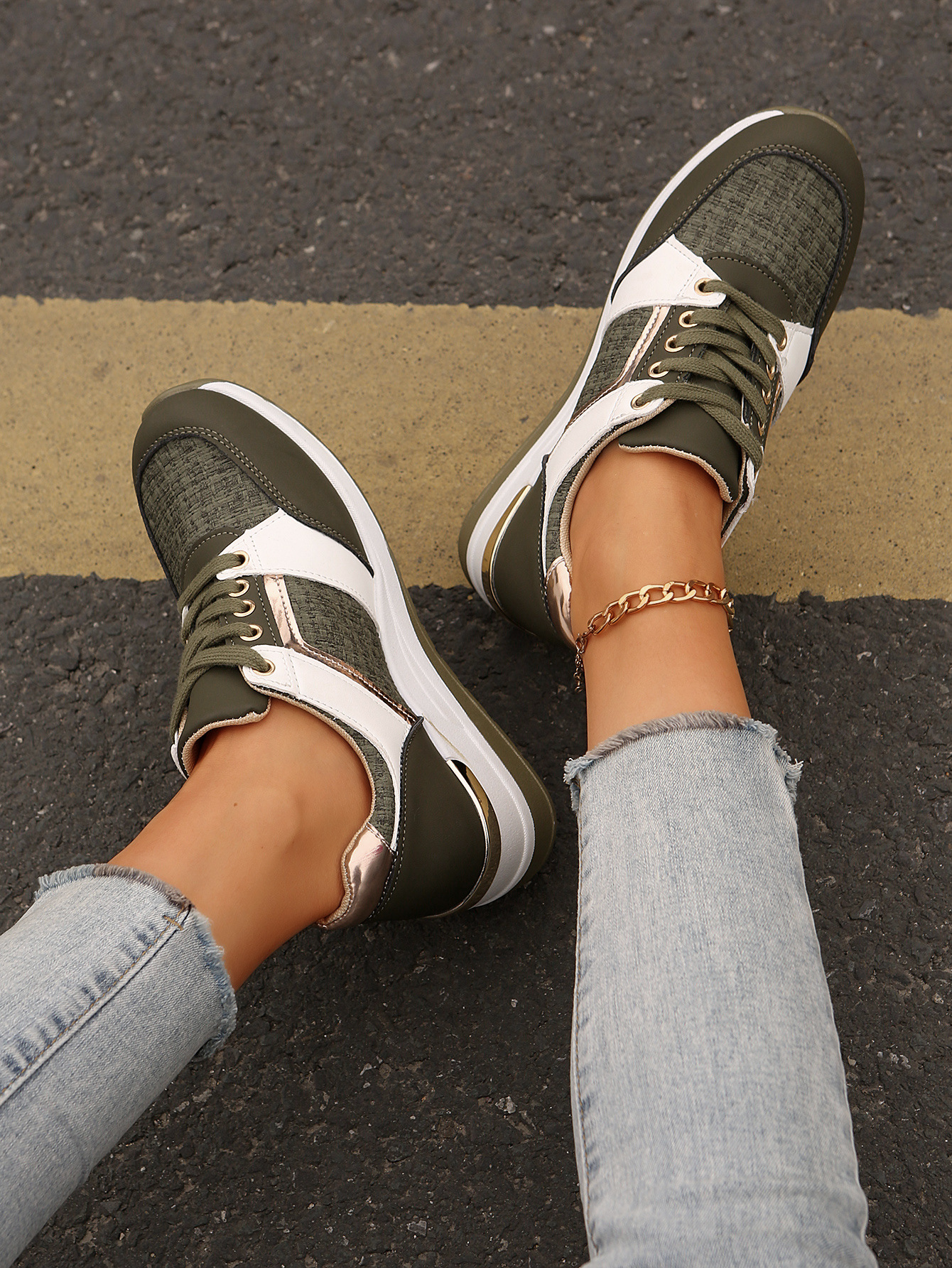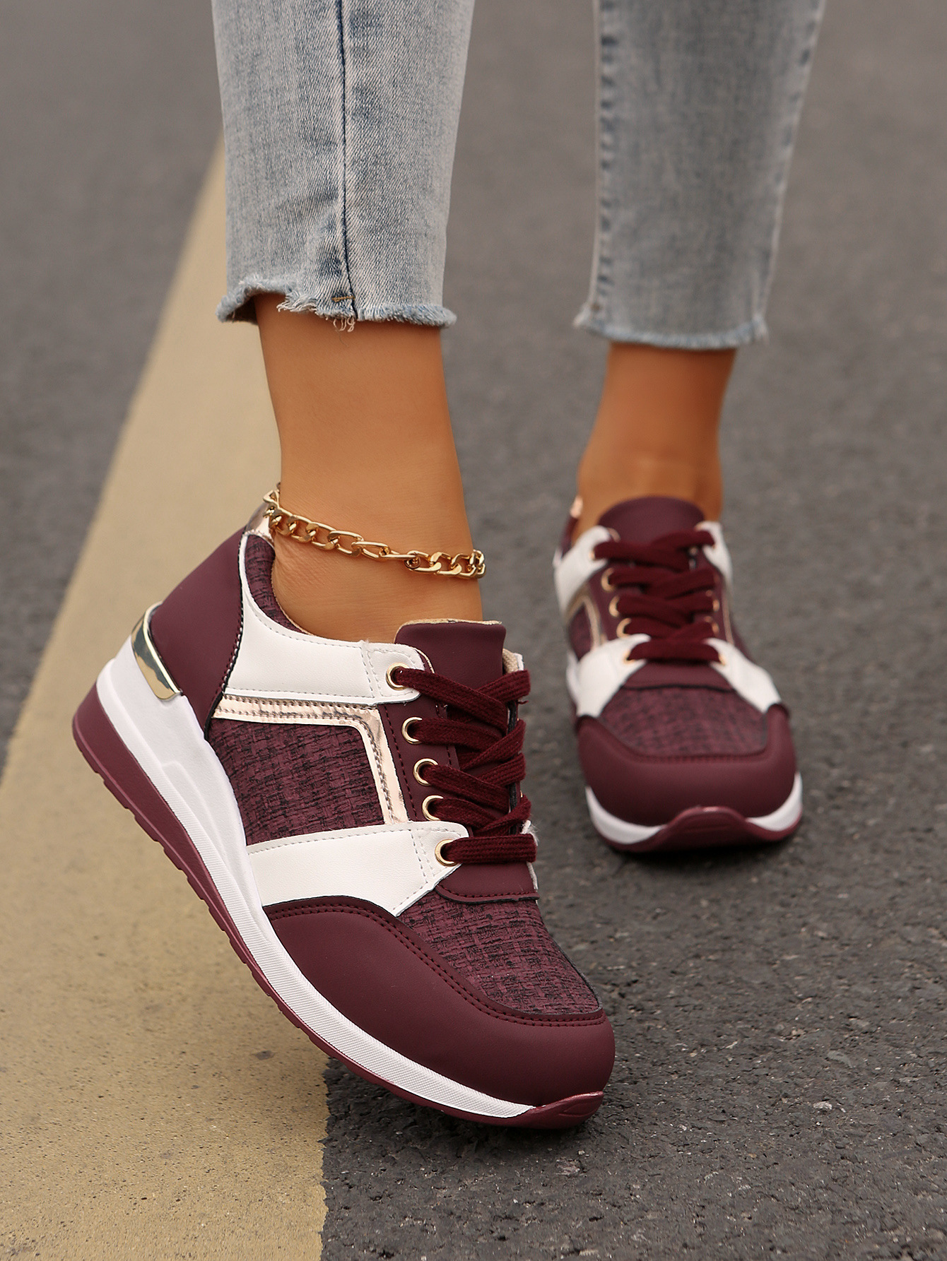 국경 2025 새로운 스포츠 캐주얼 신발 유럽과 미국의 패션 웨지 플랫폼 캐주얼 스포츠 여성 싱글 신발 여성 재고스토어 가기