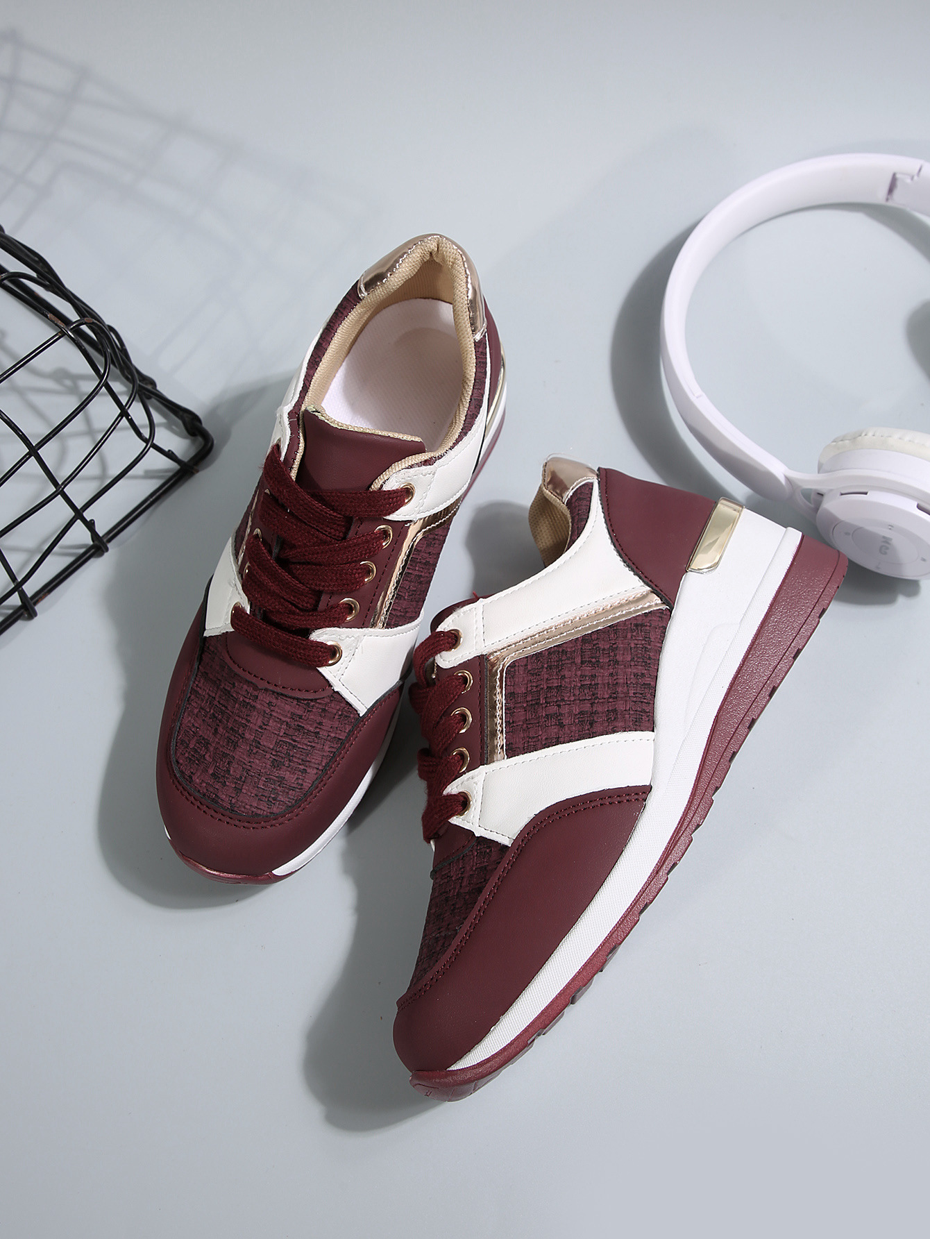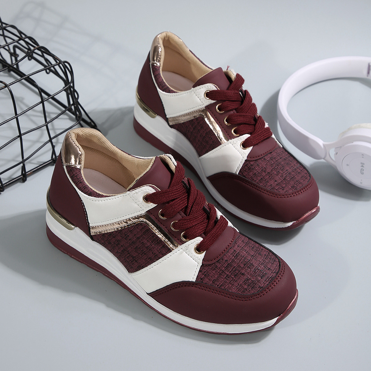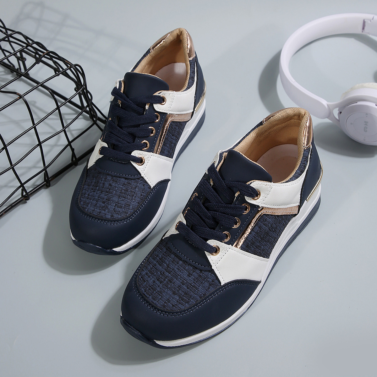 국경 2025 새로운 스포츠 캐주얼 신발 유럽과 미국의 패션 웨지 플랫폼 캐주얼 스포츠 여성 싱글 신발 여성 재고