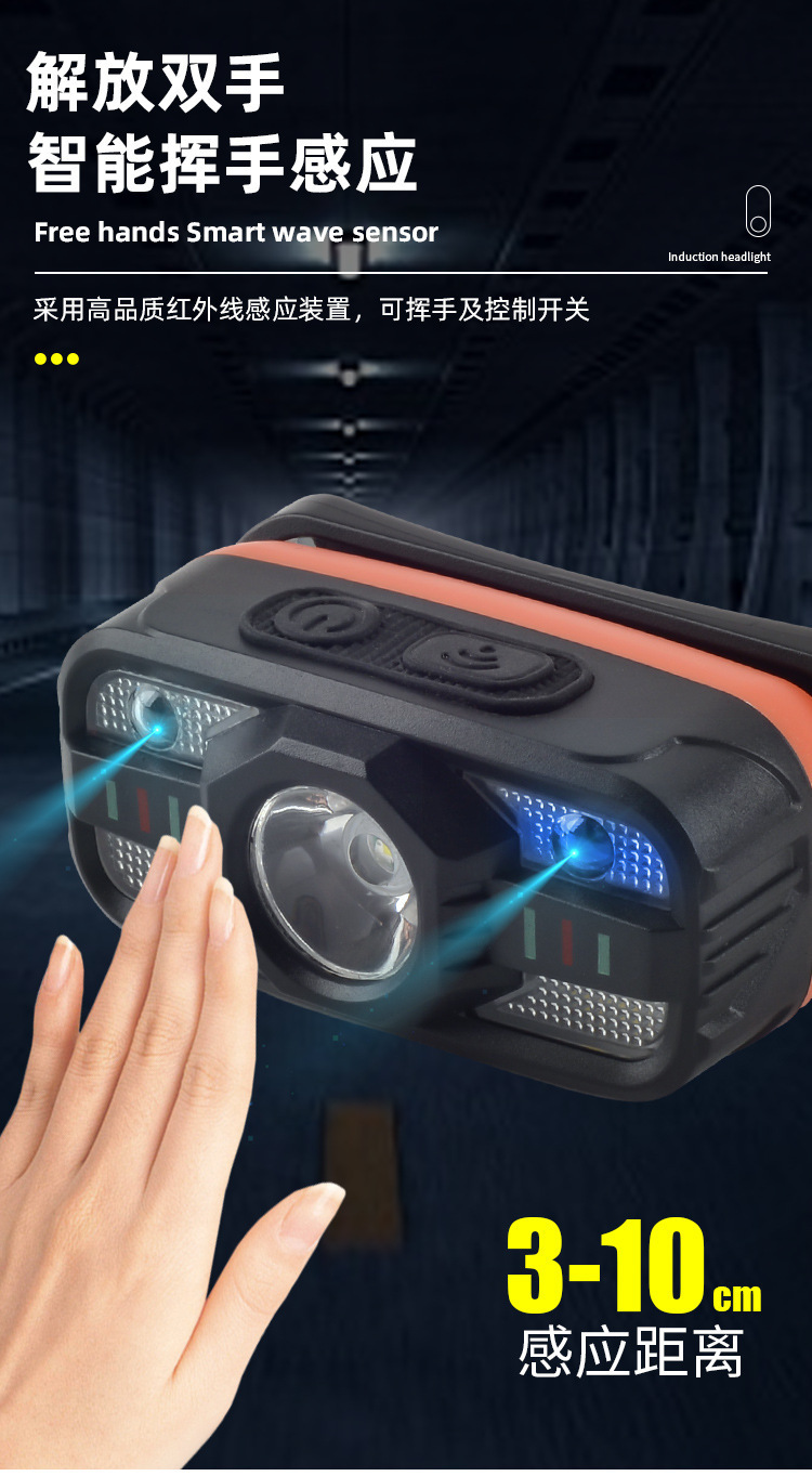 크로스보더 센서 헤드라이트 다기능 충전식 야간 러닝 미니 헤드라이트 야외 야간 낚시 강력 조명 헤드 마운트형 LED스토어 가기