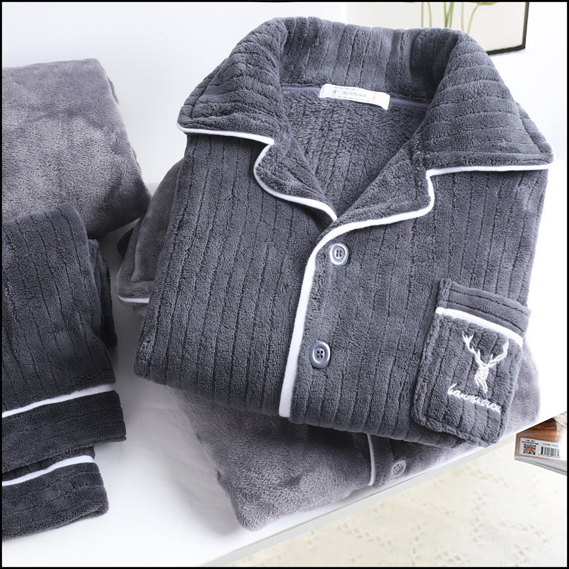가을과 겨울 남자 산호 양털 파자마는 따뜻한 긴 소매 플란넬 홈 옷을 입고 기모 세트.스토어 가기