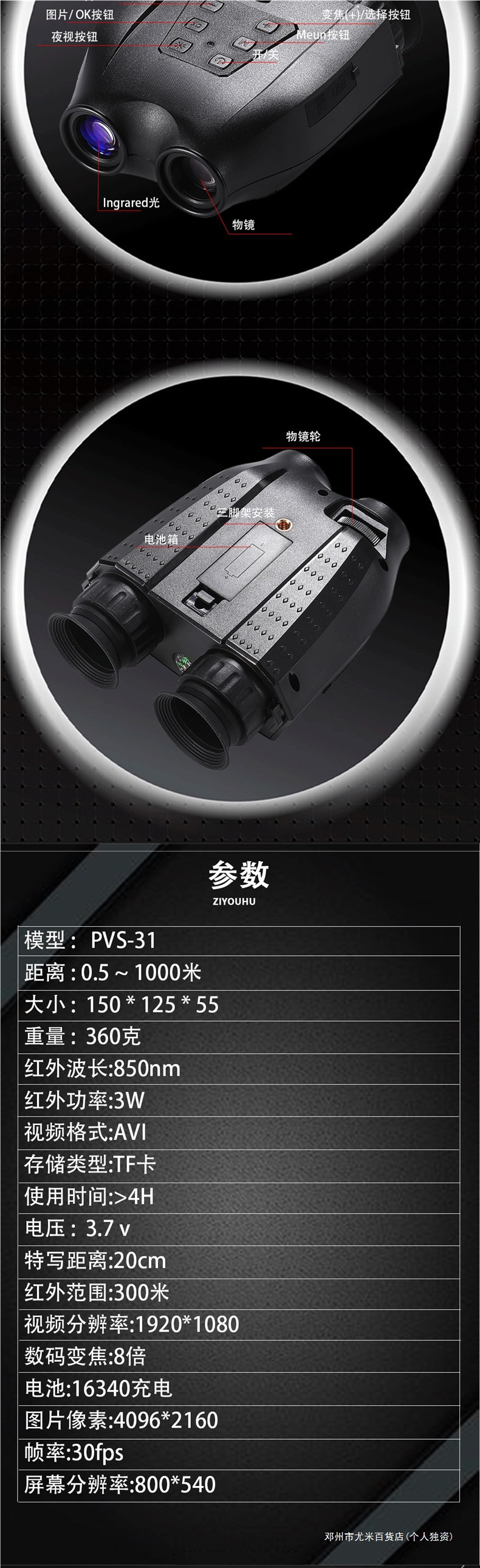 유미 적외선 야간 투시 장치 헬멧 장착 PVS-31 야외 헤드, 올 블랙 카메라 비디오 디지털 망원경 착용