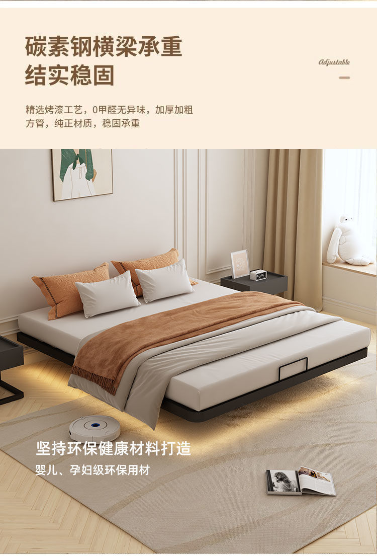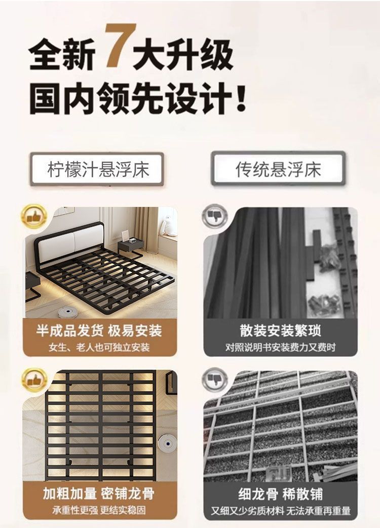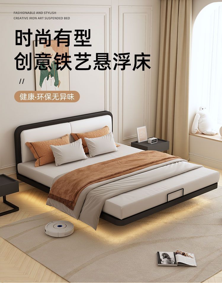 인터넷 연예인 간단한 서스펜션 침대 1.2 m 1.8 m 가벼운 럭셔리 침대 없음 침대 옆 단단한 나무 침대 프레임 더블 아이언 침대 아파트스토어 가기