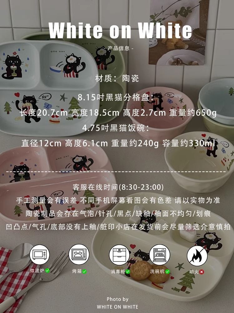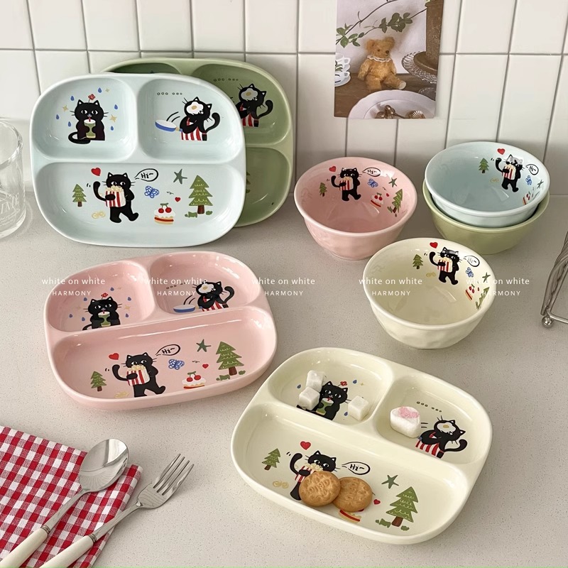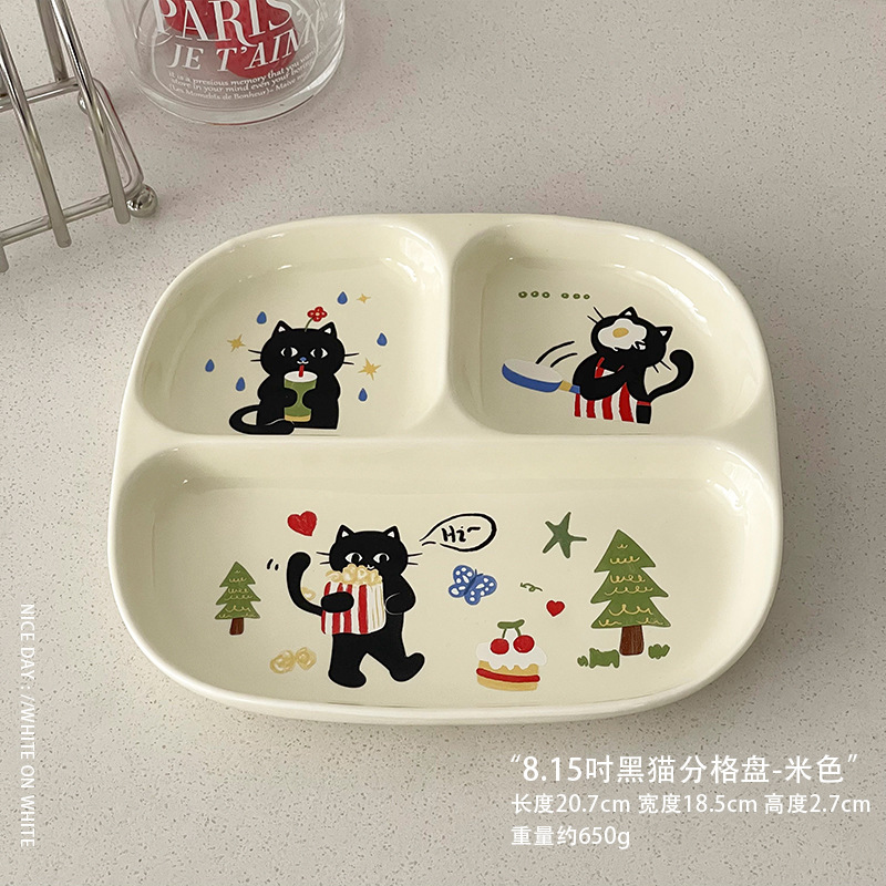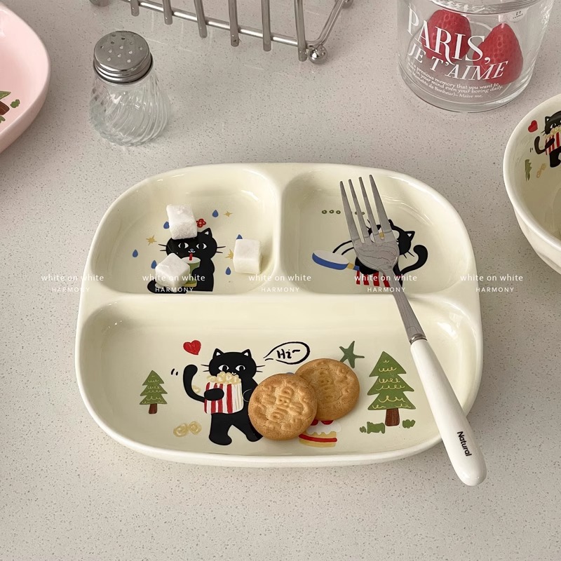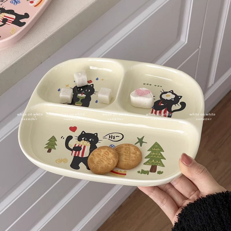 • 8.15inch 검은고양이 분할접시-베이지