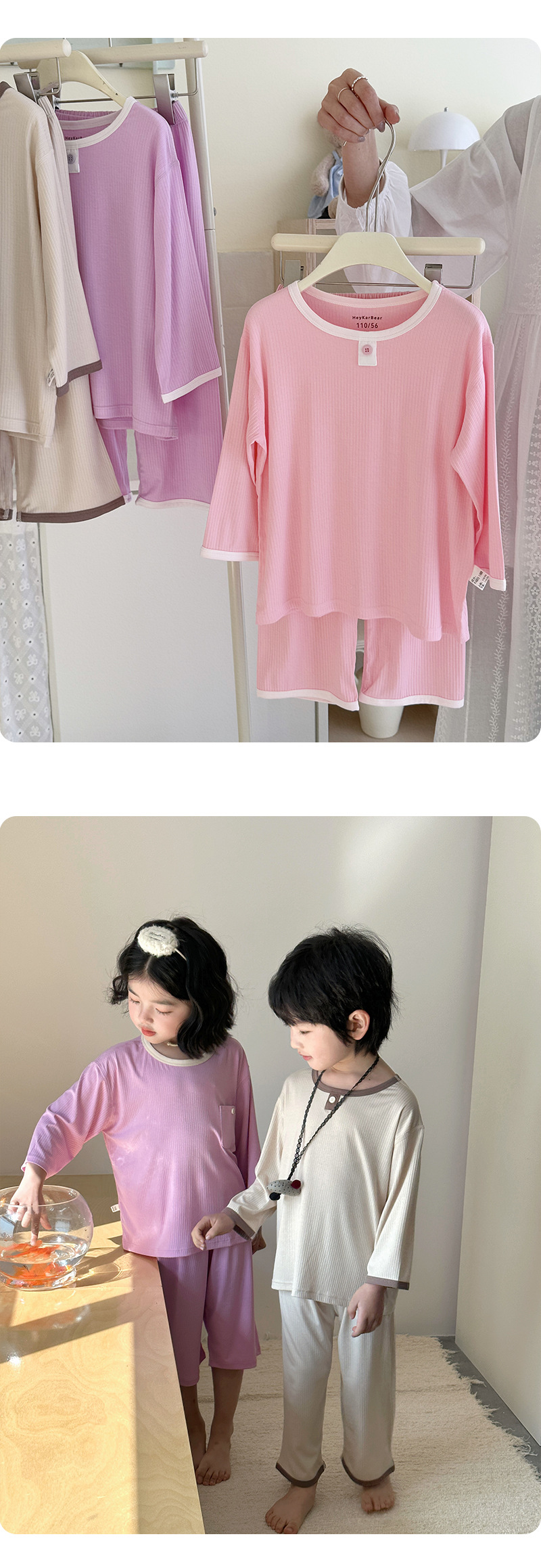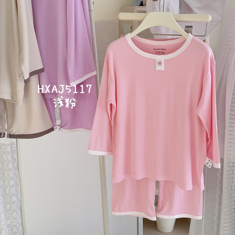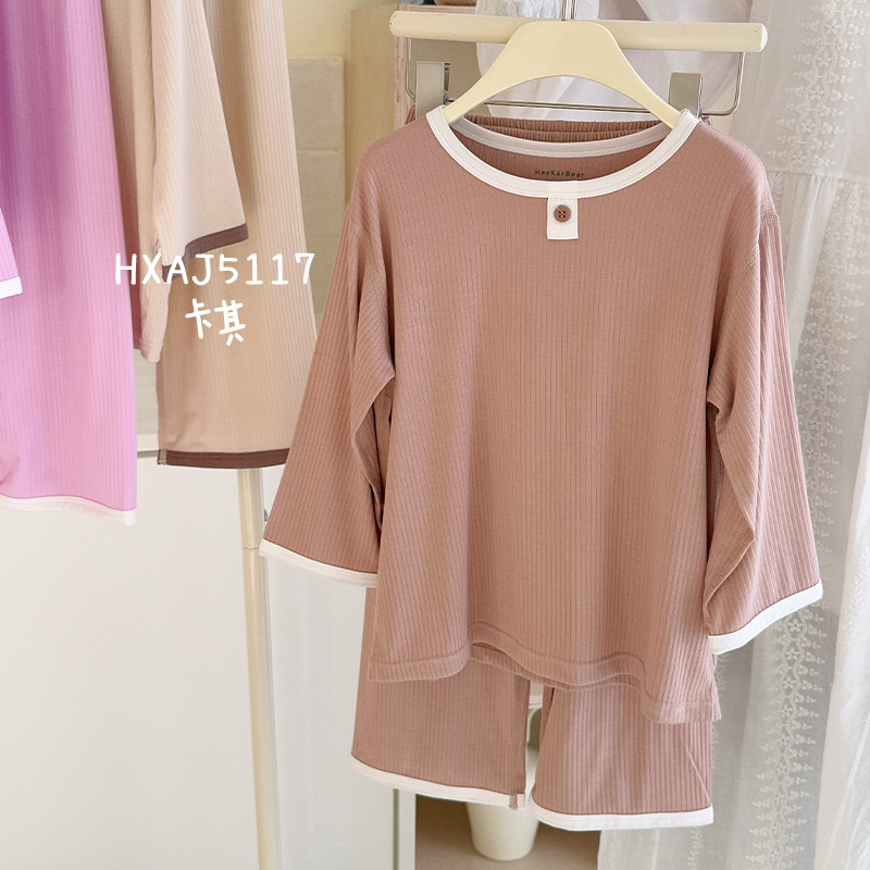 블랙 커피 베어 어린이 잠옷 모달 클래스 어린이 집 옷 2025 년 봄과 여름 새로운 느슨한 간단한 긴 소매 바지