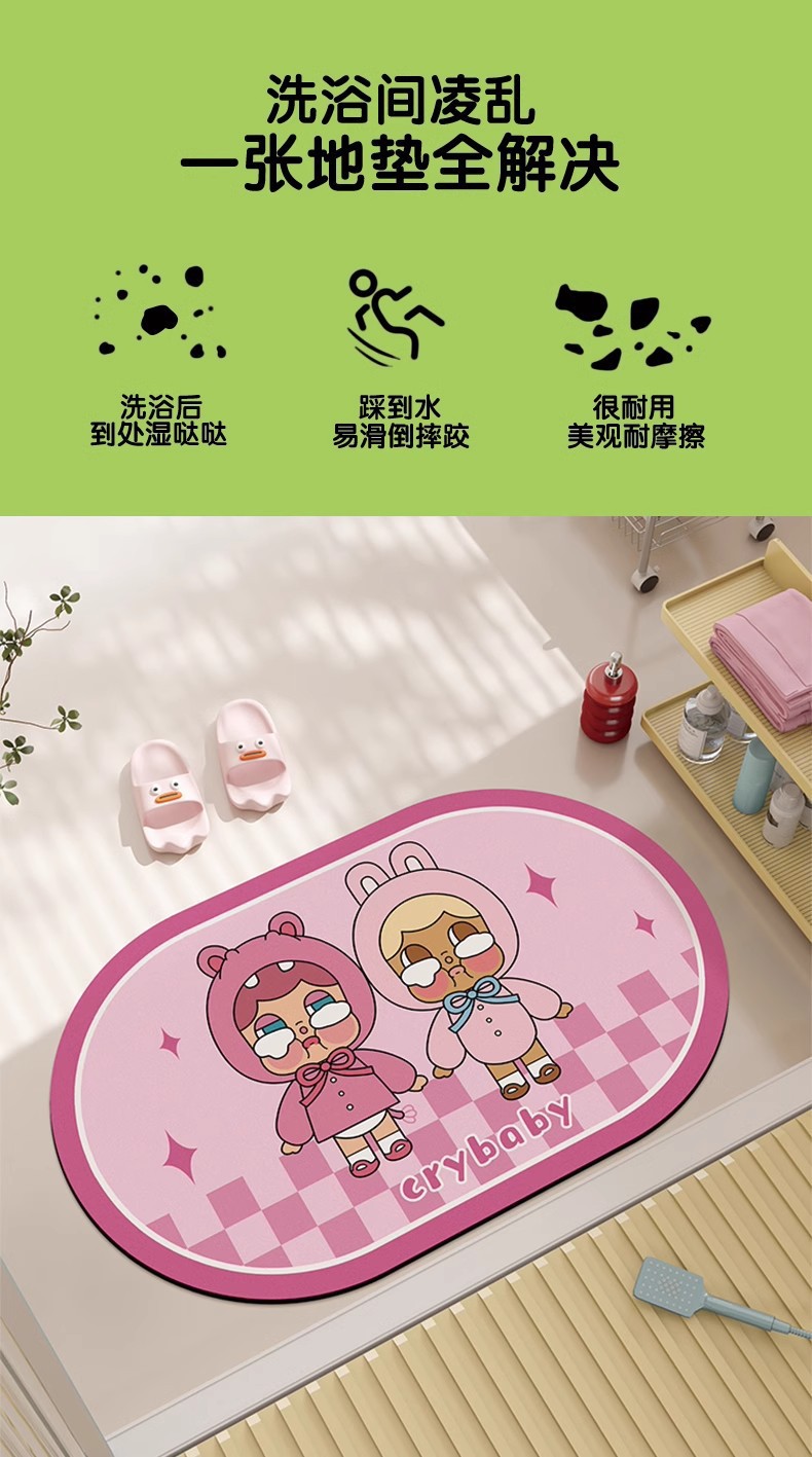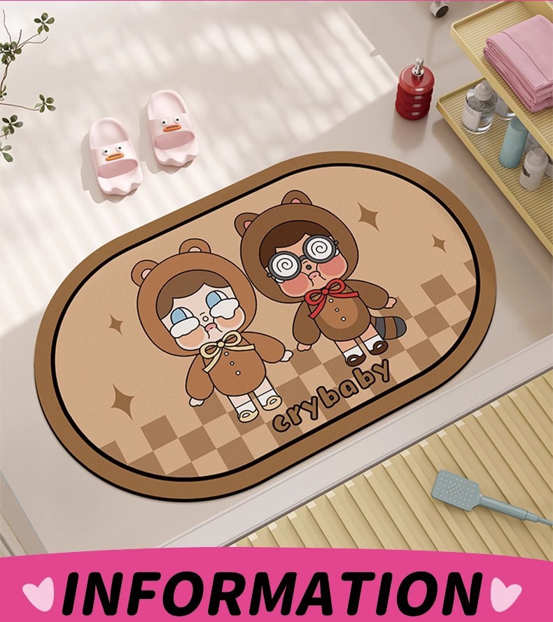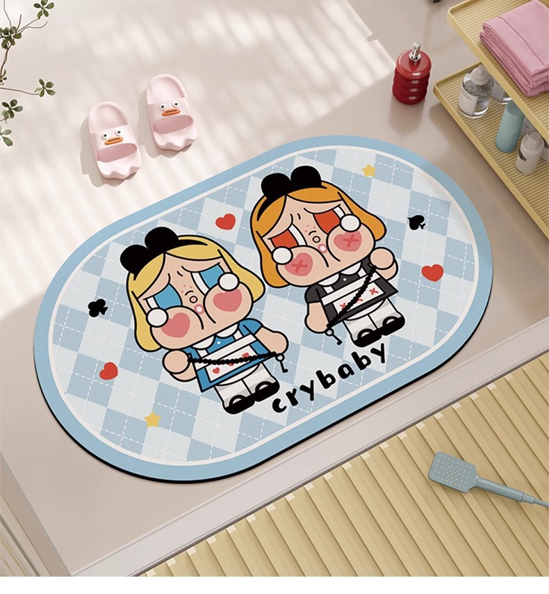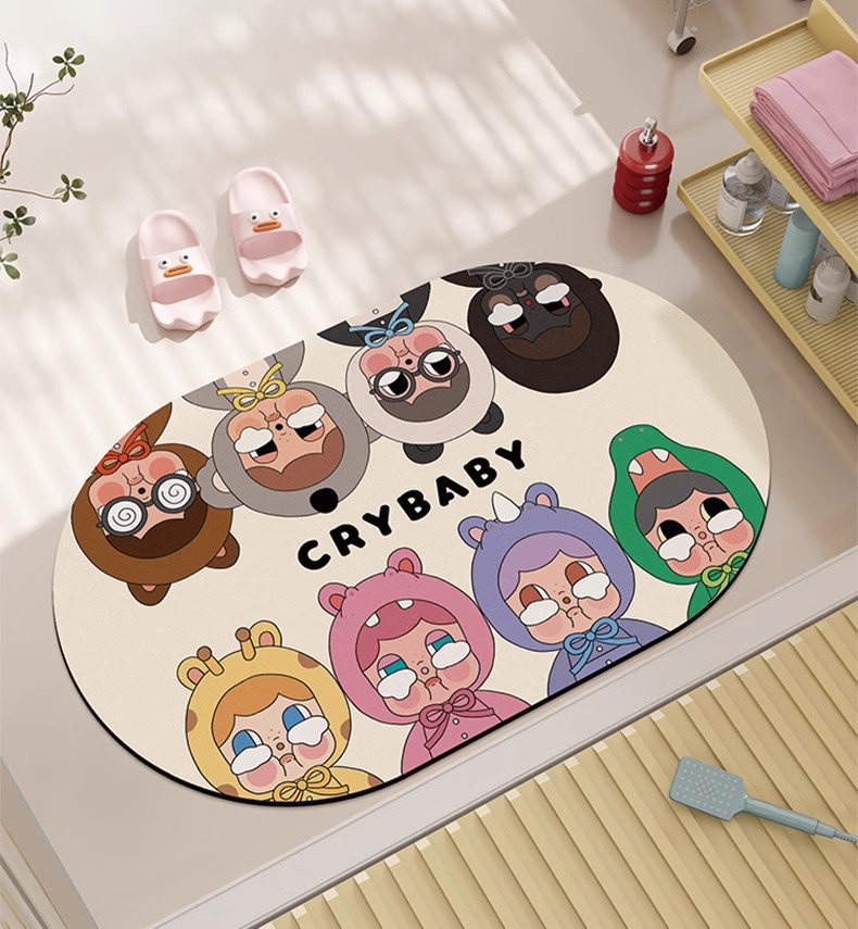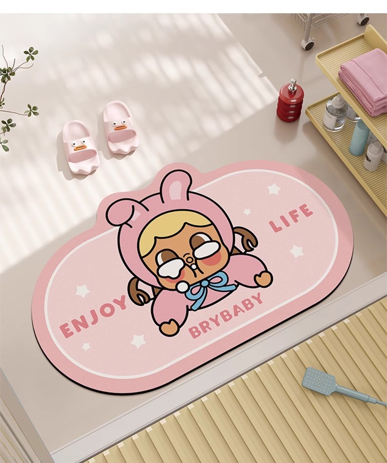 Crybaby 만화 욕실 매트 Diatom 진흙 매트 물 흡수성 더러운 저항 미끄럼 방지 매트 화장실 문 매트