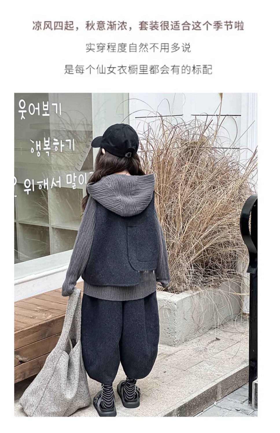 한국식 봄 · 가을 어린이 세트 뉴 2025 2 피스 여자 모직 조끼 세련된 한국식 유행 모직 유행스토어 가기