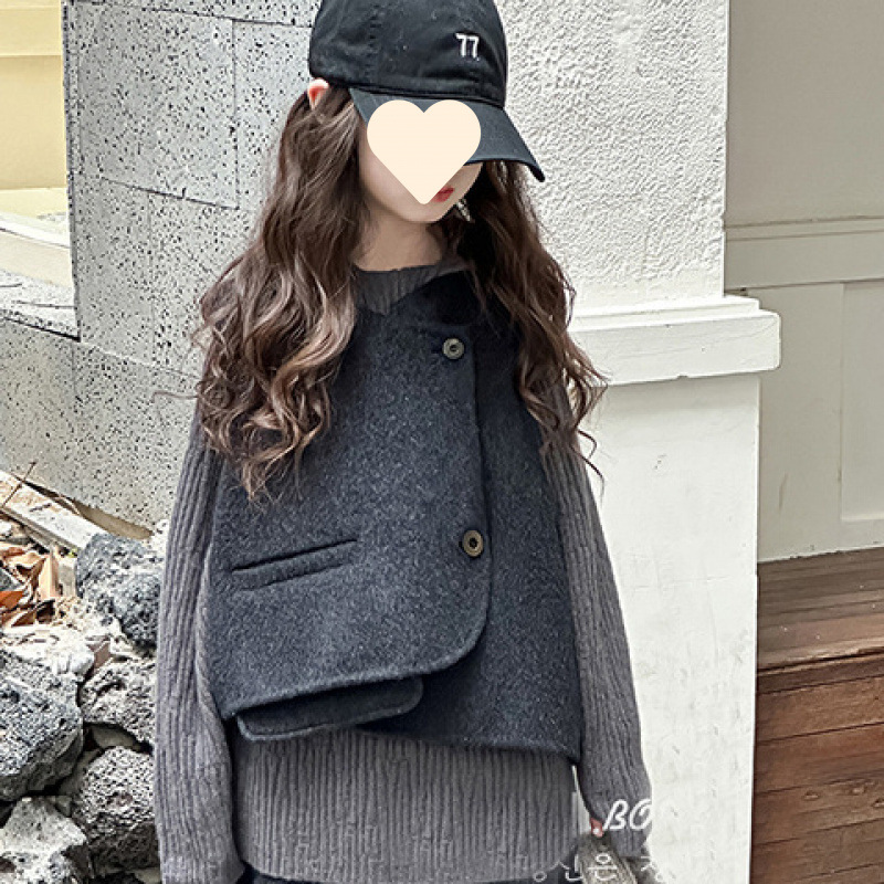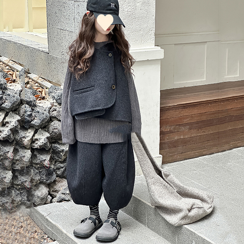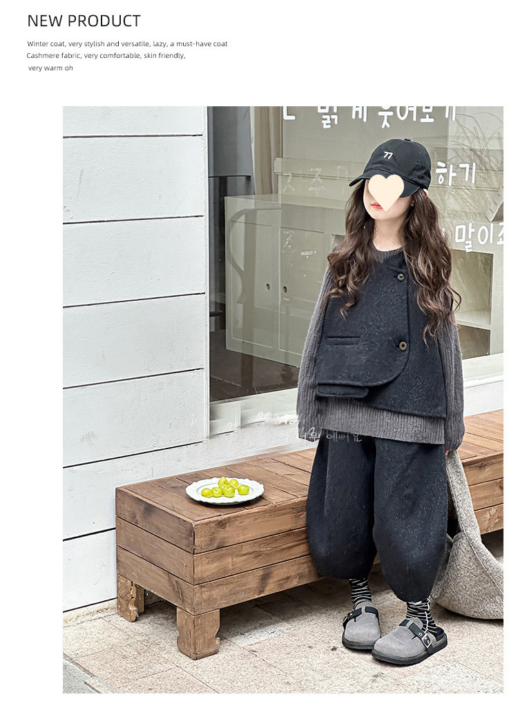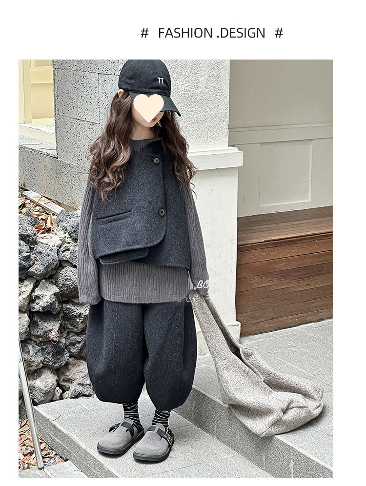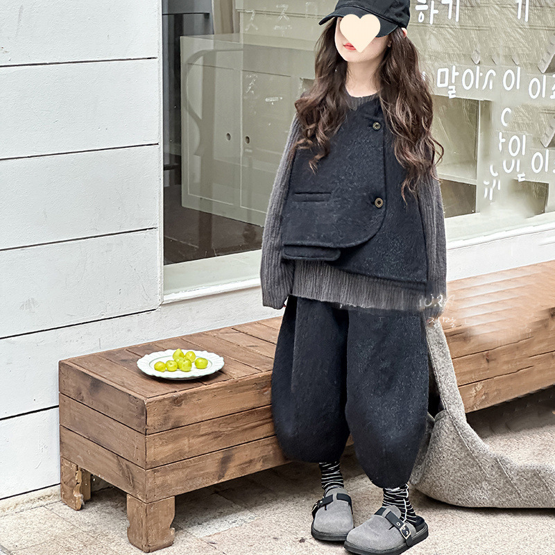 한국식 봄 · 가을 어린이 세트 뉴 2025 2 피스 여자 모직 조끼 세련된 한국식 유행 모직 유행