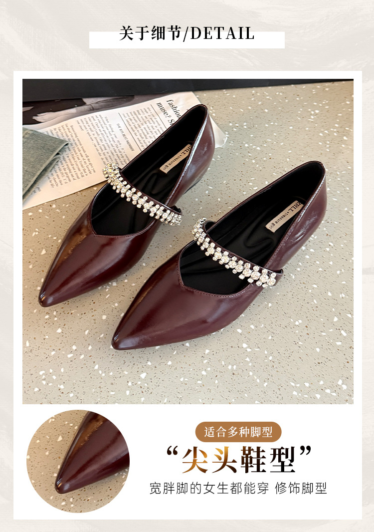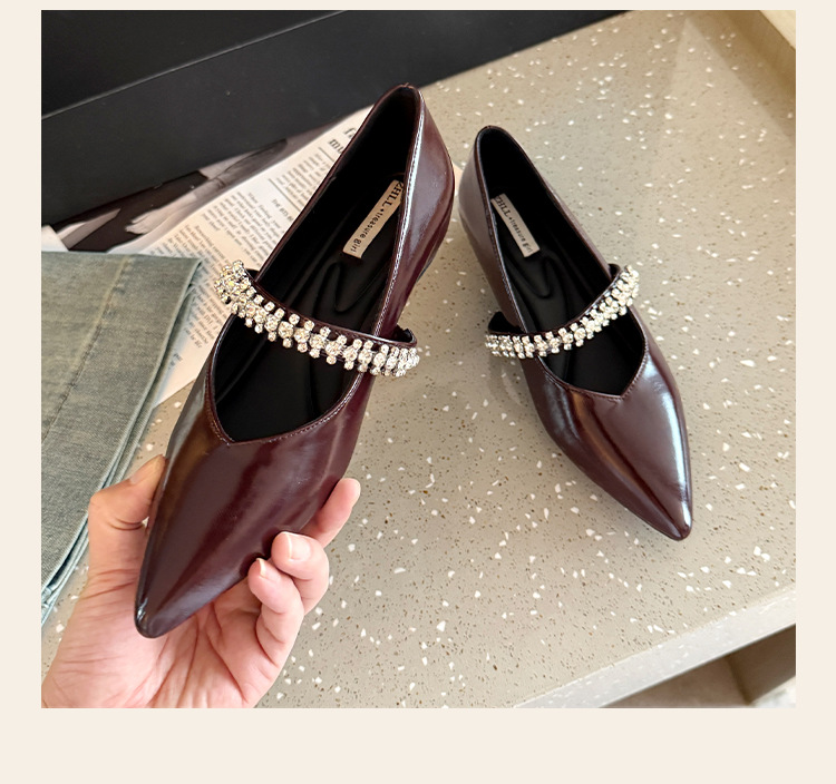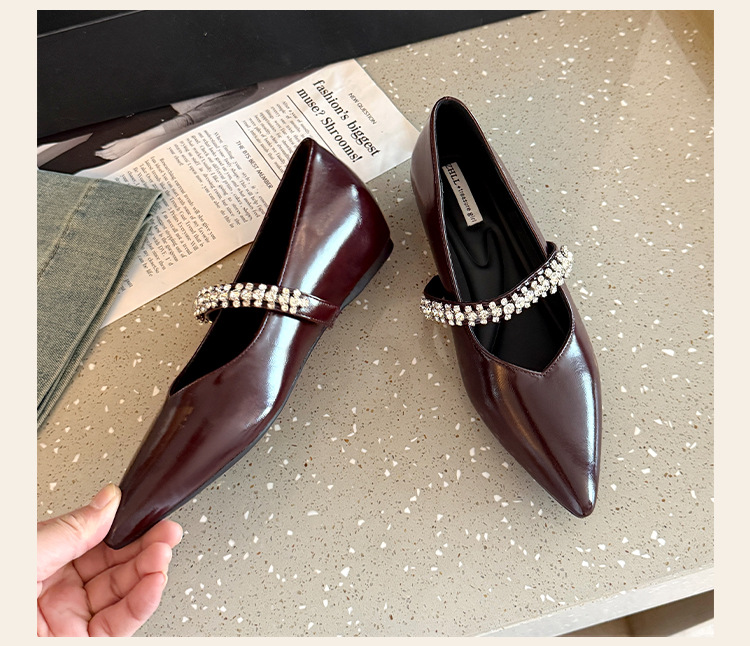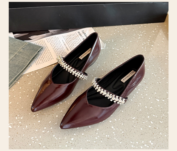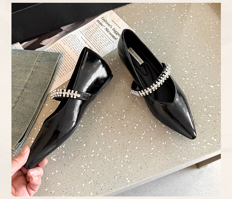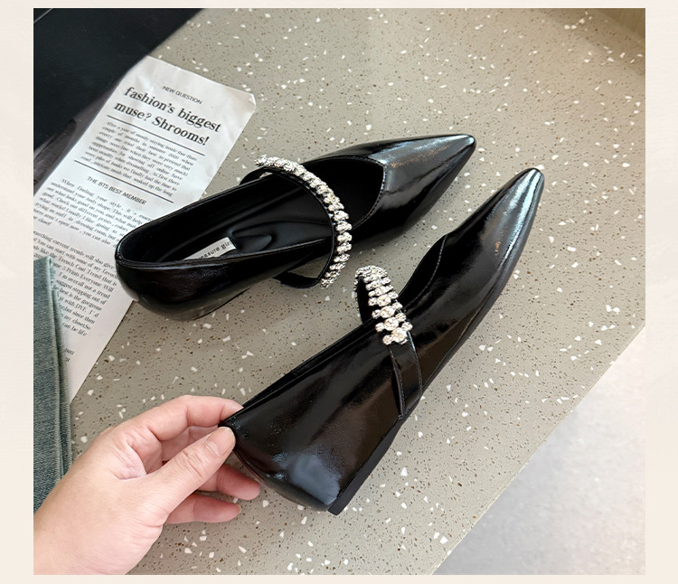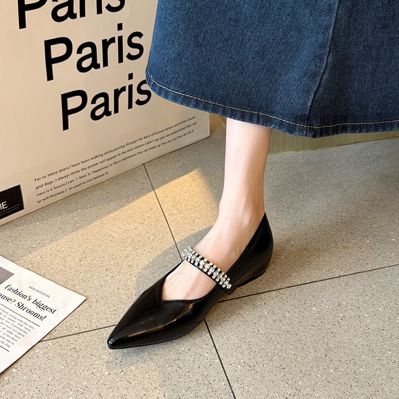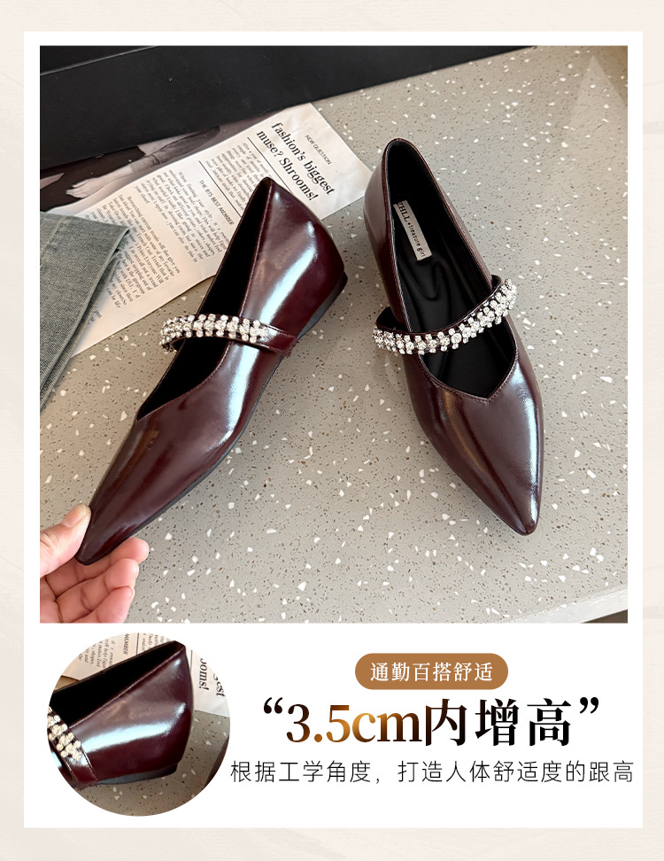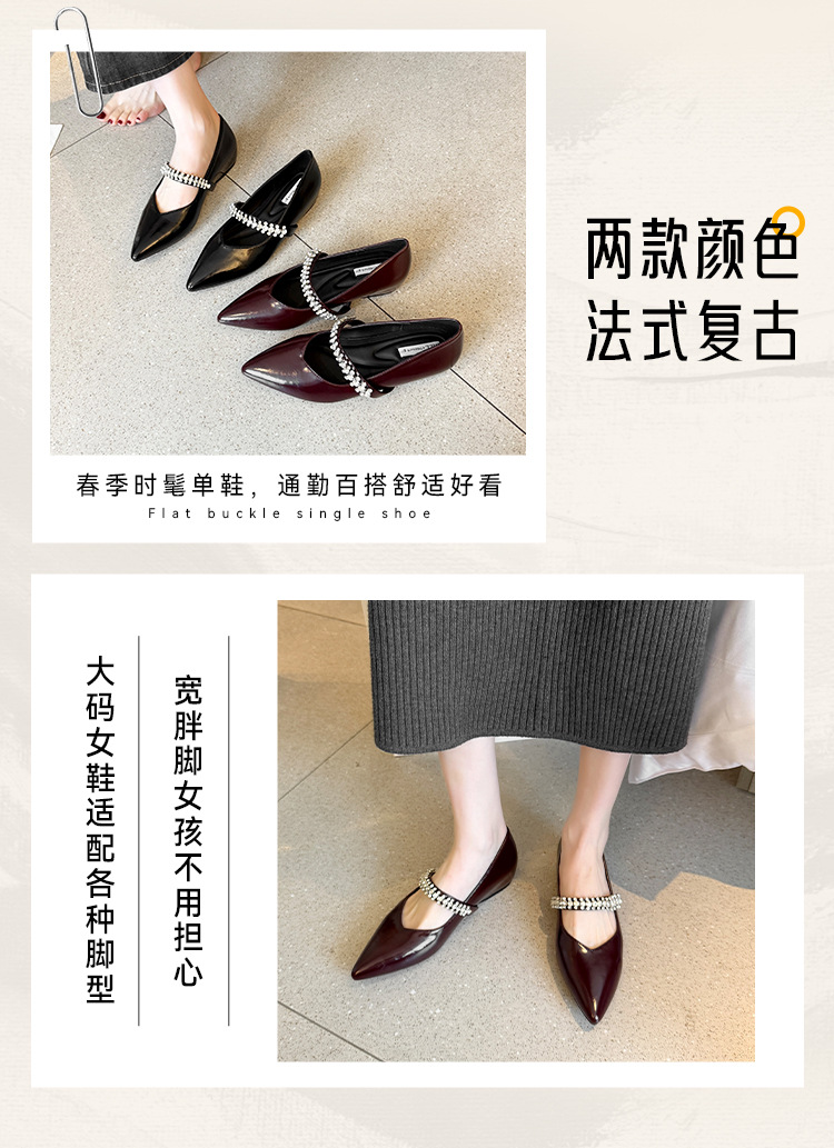 077-1 복고풍 높이 3.5CM 틈새 모조 다이아몬드 뾰족한 플랫 신발 여성용 플러스 사이즈 신발스토어 가기
