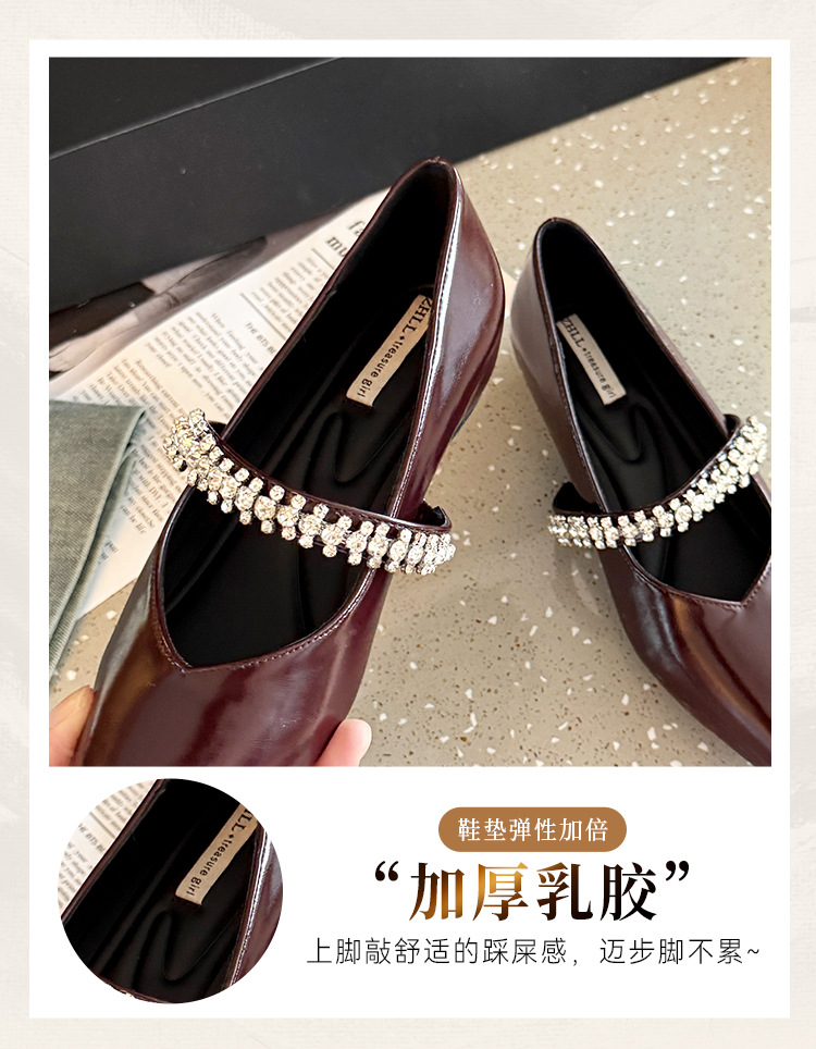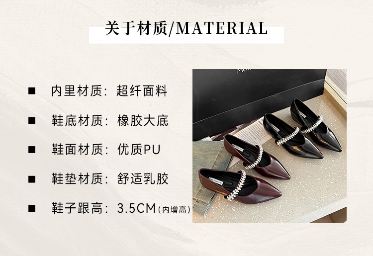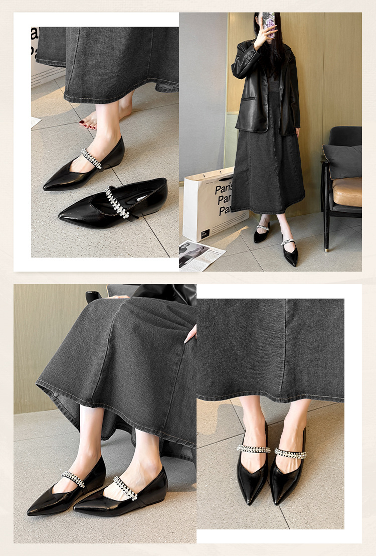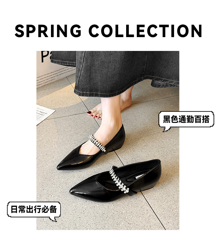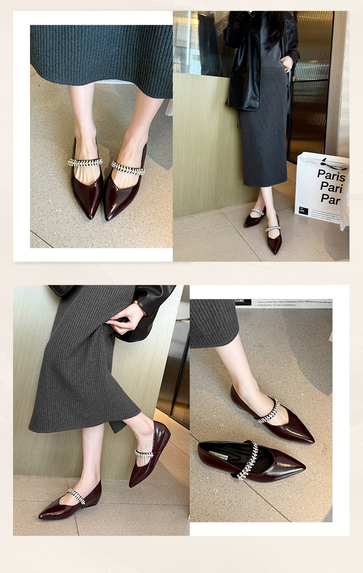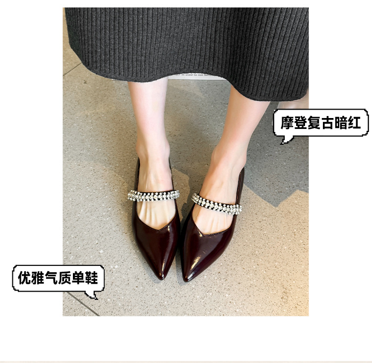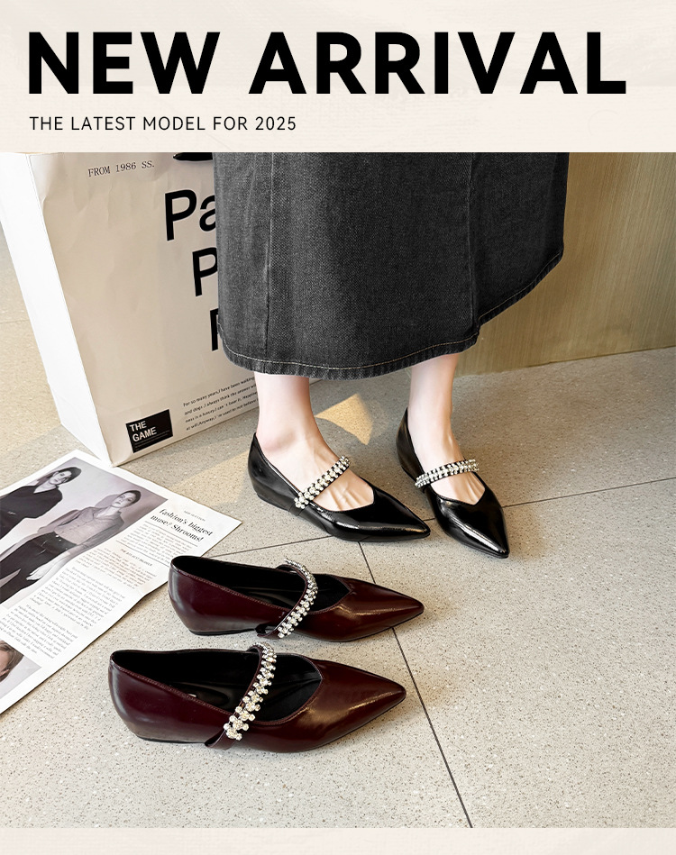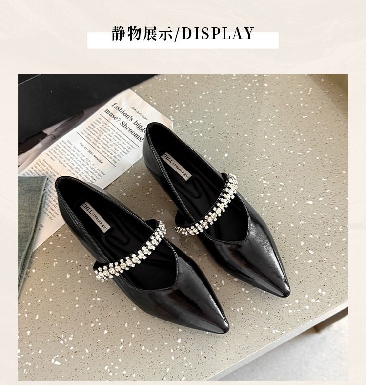 077-1 복고풍 높이 3.5CM 틈새 모조 다이아몬드 뾰족한 플랫 신발 여성용 플러스 사이즈 신발스토어 가기