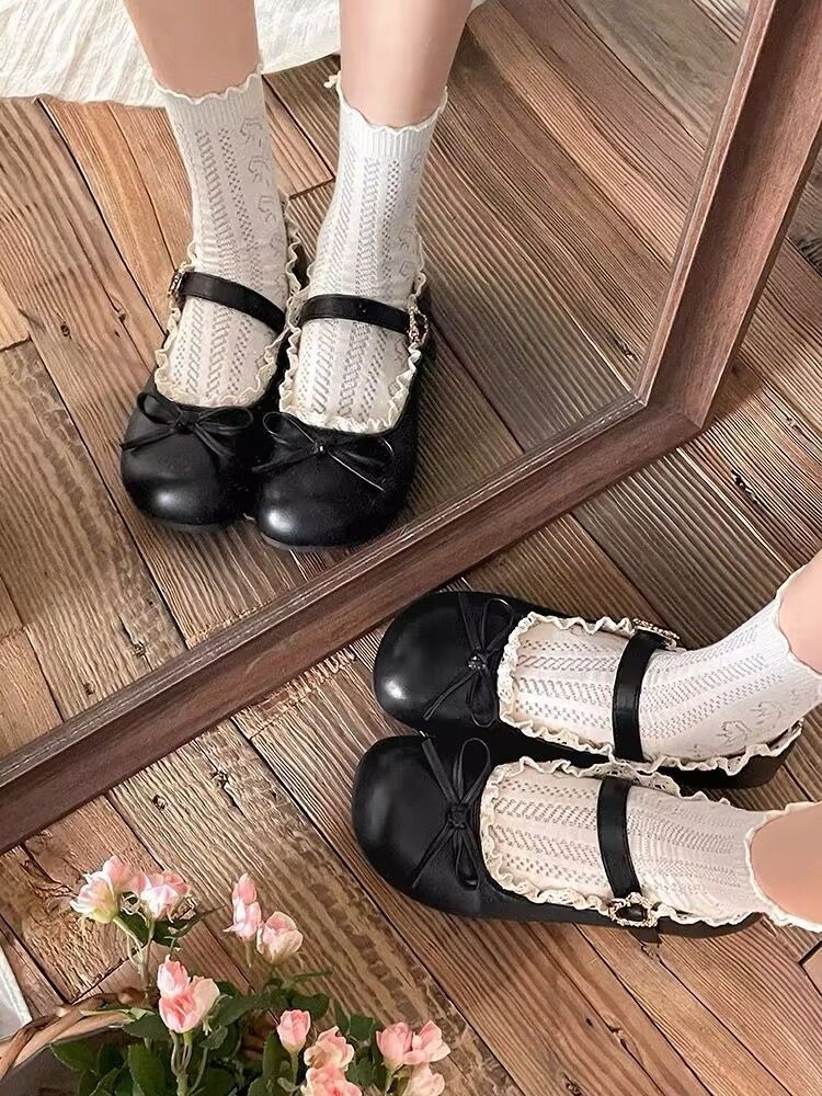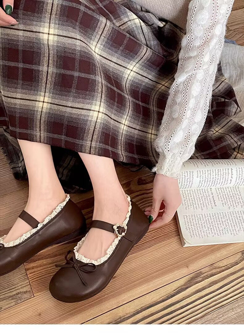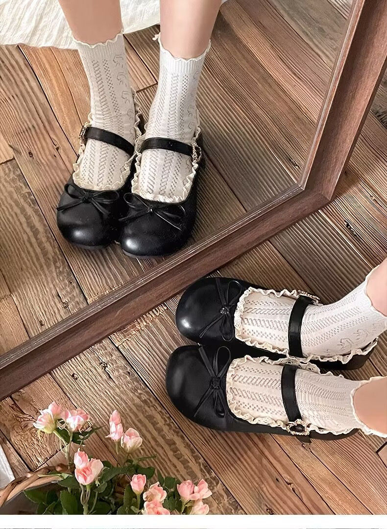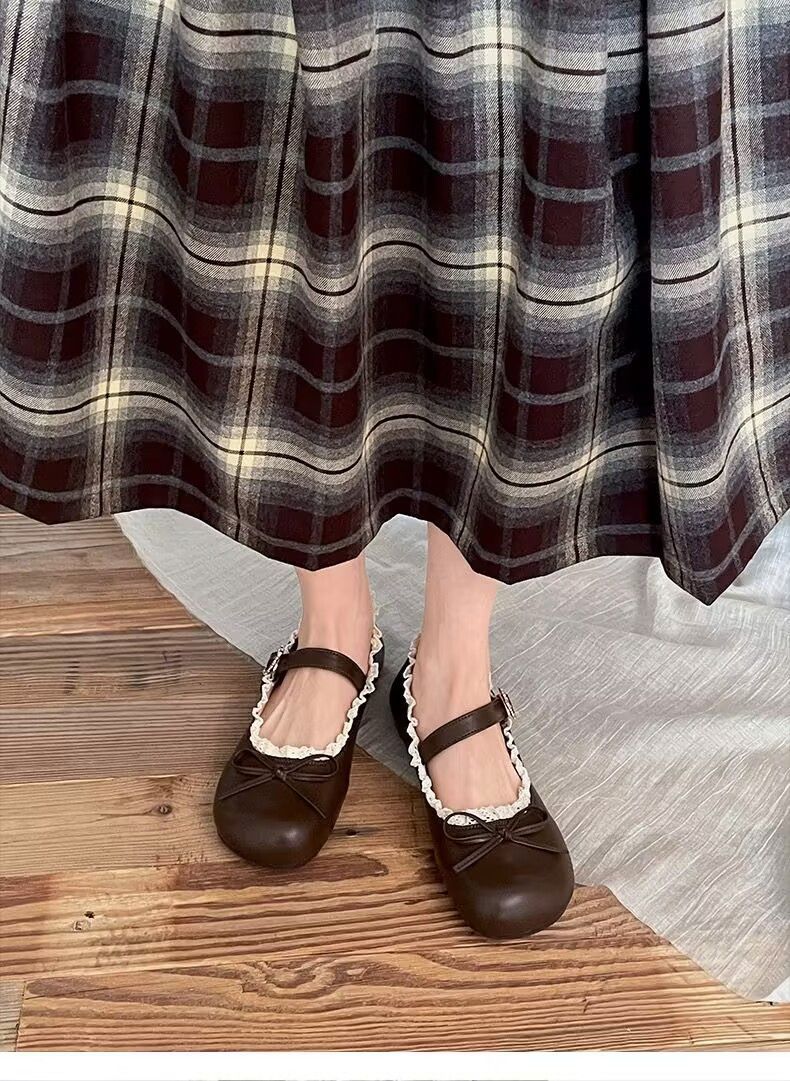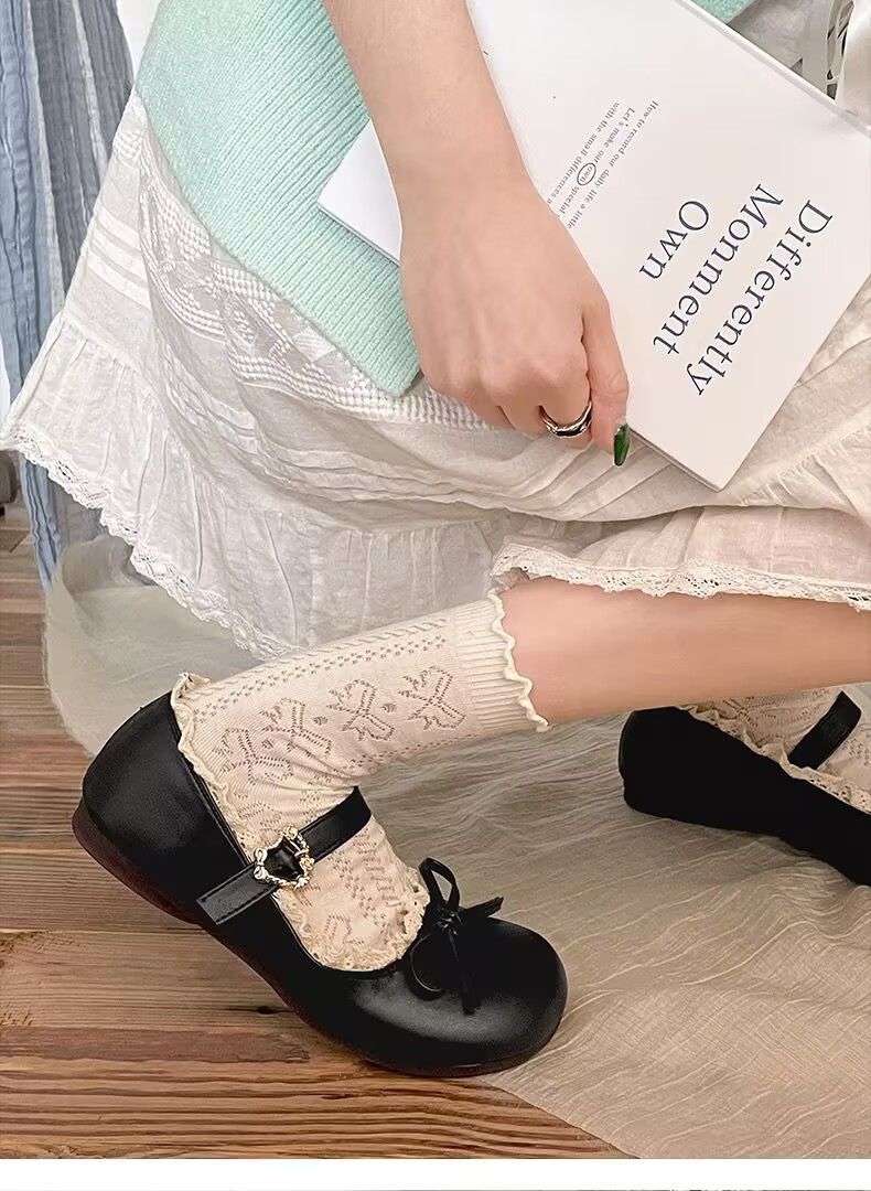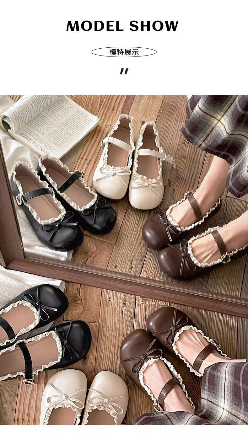 둥근 발가락 레트로 활 플랫 작은 가죽 신발 여성의 2025 새로운 봄과 가을 원피스 프랑스 부드러운 바닥 메리 제인 신발