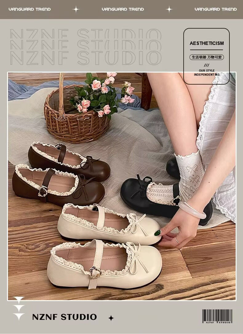 둥근 발가락 레트로 활 플랫 작은 가죽 신발 여성의 2025 새로운 봄과 가을 원피스 프랑스 부드러운 바닥 메리 제인 신발스토어 가기