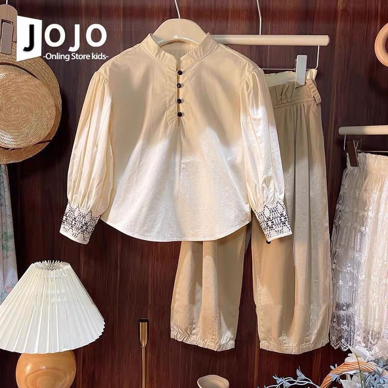 소녀 세트 2024 새로운 긴팔 모리 셔츠 레트로 아티스틱 탑 루즈 캐주얼 바지 투피스 세트스토어 가기