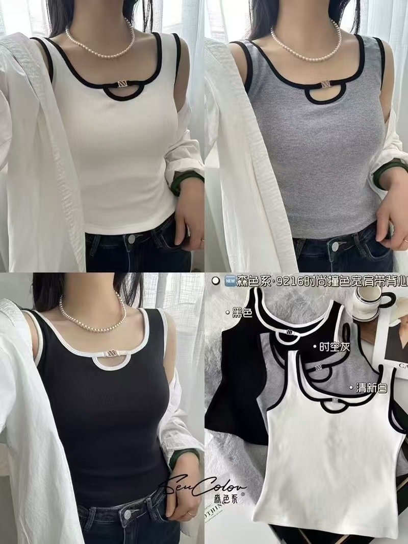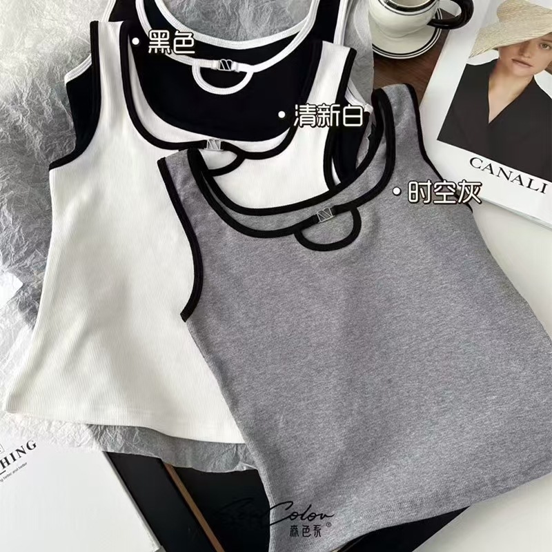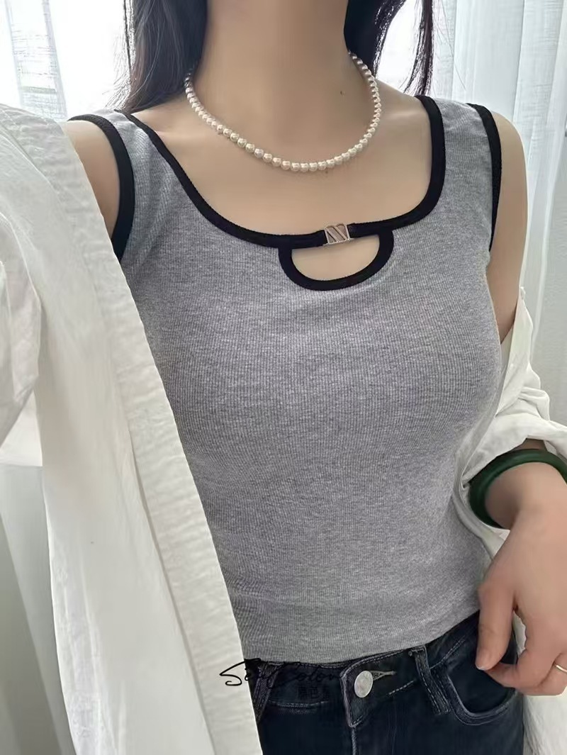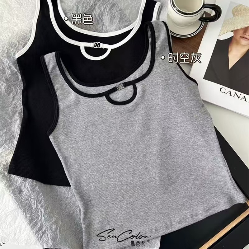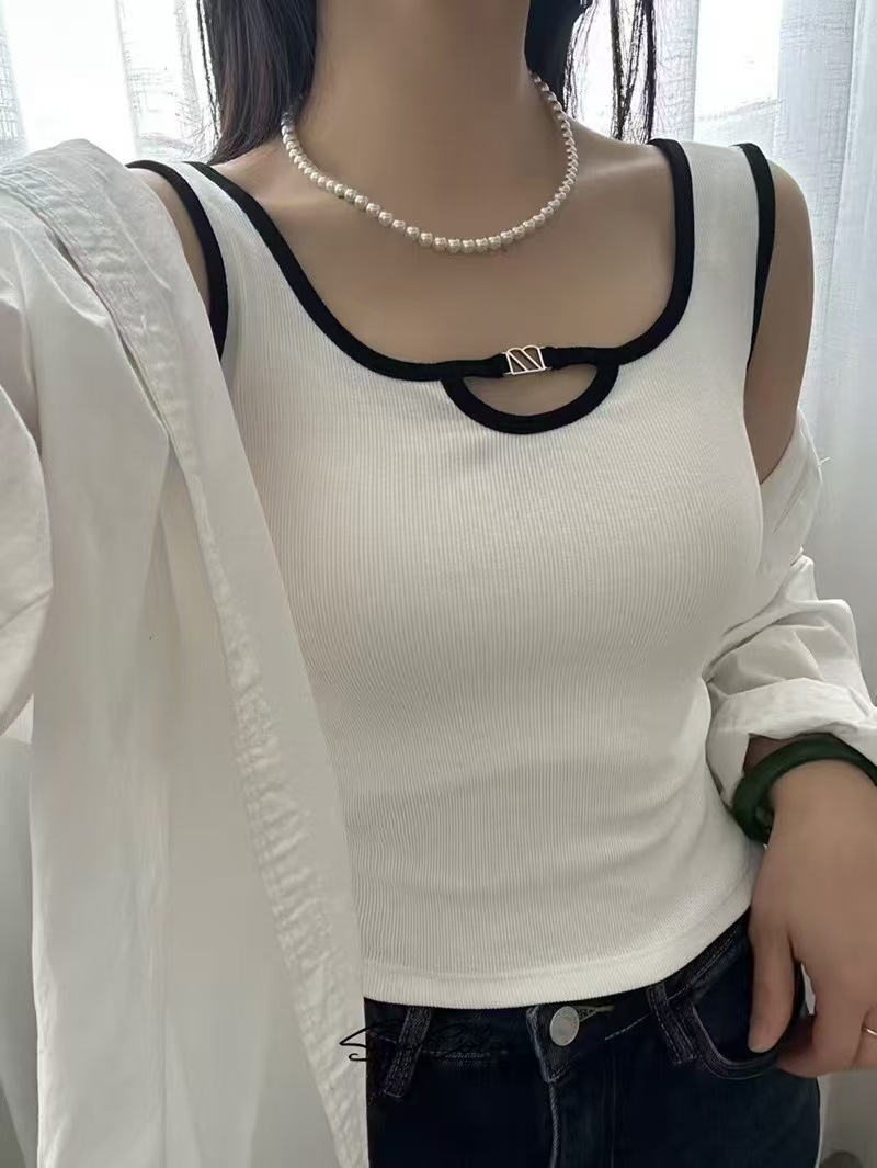 올 매치 대비 컬러 비 가슴 패드 카미 솔 여성 내부 조끼 여름 외부 착용 민소매 기본 셔츠 금속 장식 최고 여성스토어 가기